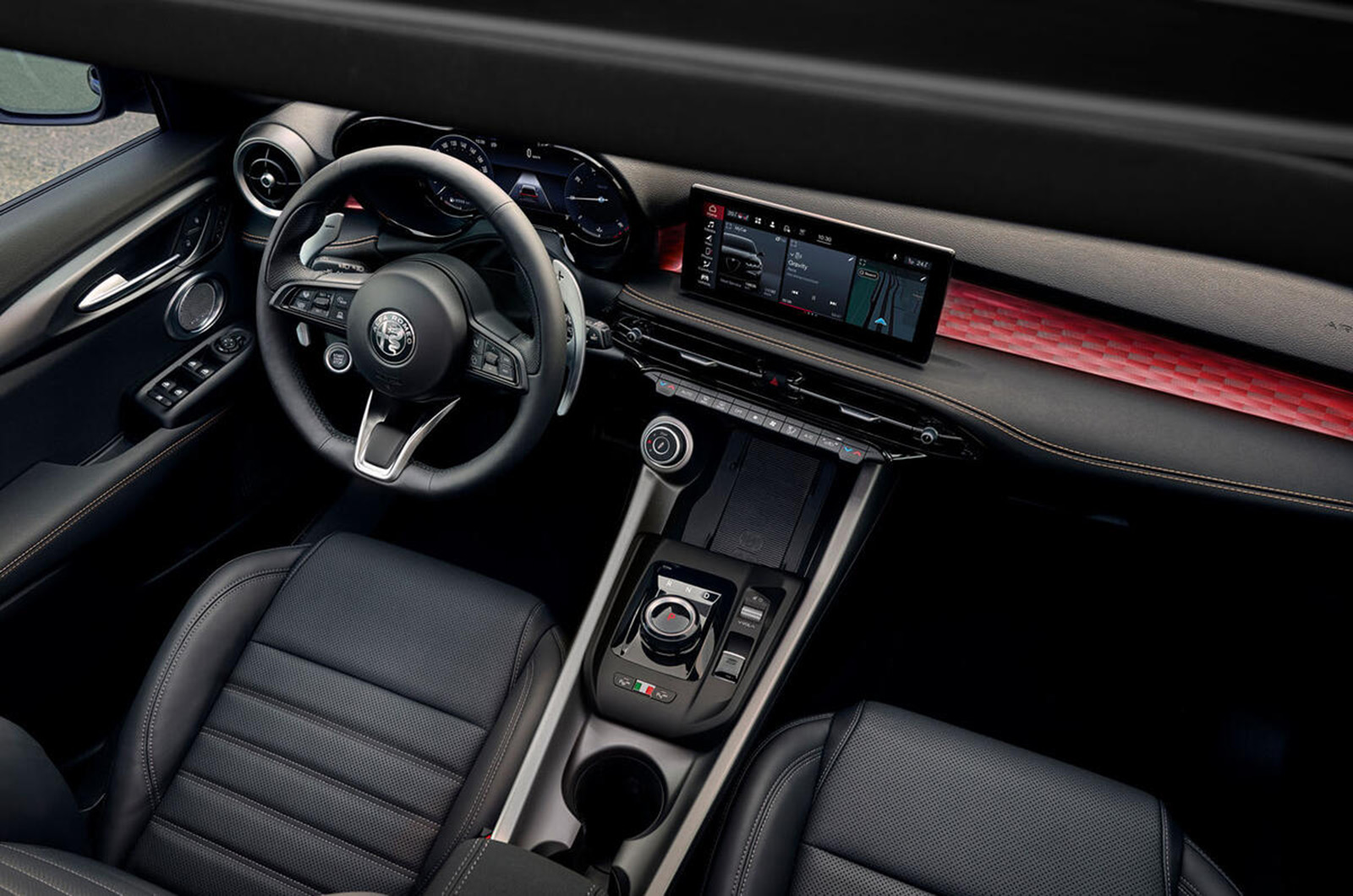 Alfa Romeo Tonale за 2025 година има подобрен кокпит. Тука се појавија три клучни новитети. Прво, класичната рачка на автоматскиот менувач отстапи место на копче. Променет е и обликот на централната обвивка на тунелот – тој е поедноставен. Италијанскиот бренд се фокусираше и на подобра пластика на вратите – тука се додадени повеќе меки материјали. Освен тоа, промените се ограничени на појасна графика на дигиталната инструмент табла и дискретни промени на мултимедијалниот екран. За жал, ова се сите нови функции засега. Нема да видиме нови карактеристики во стилот на каросеријата или дури и во палетата на достапни бои.
