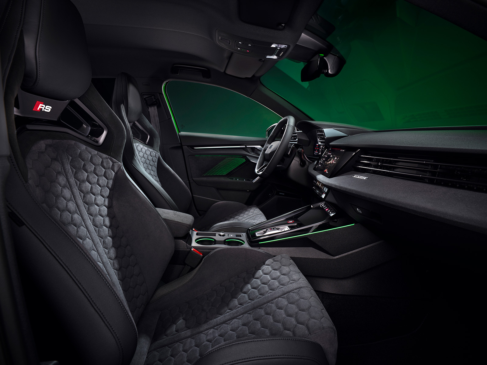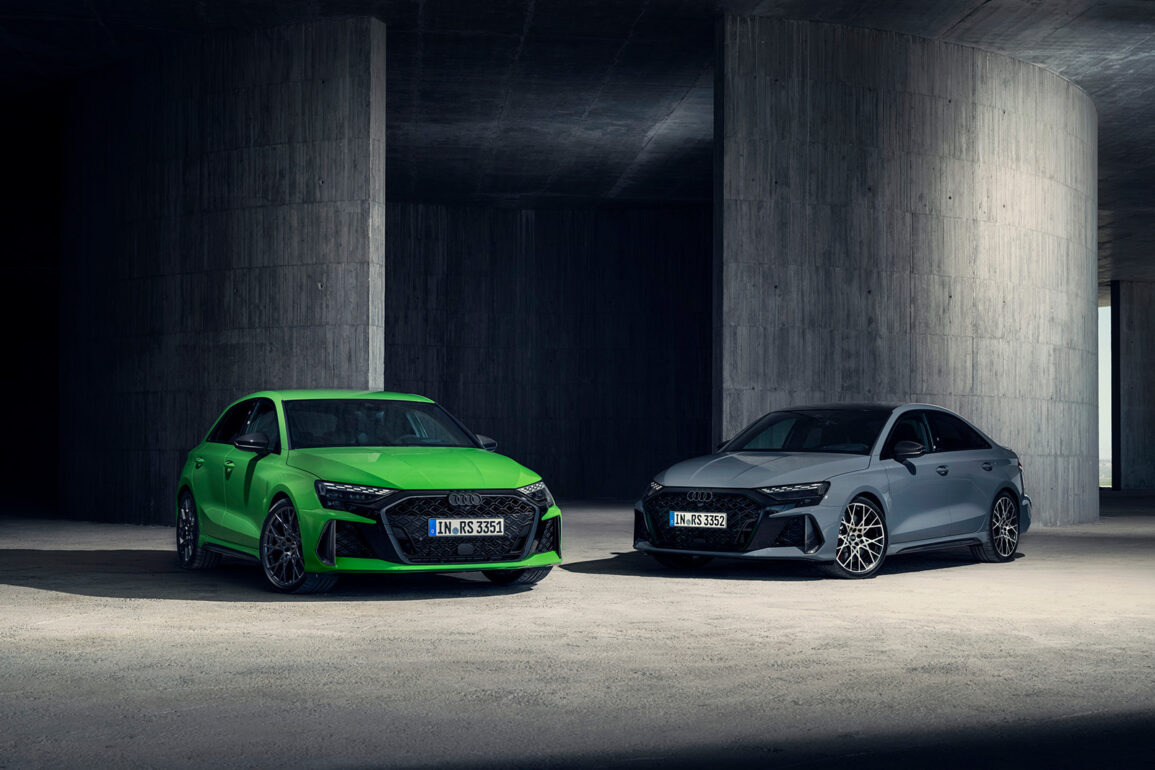 Што се смени во овој автомобил? Новините не се револуционерни. И седанот и хечбекот добија освежени браници и нов светлосен потпис за светлата. Audi тврди дека благодарение на малите модификации, RS3 добил поагресивен изглед. Дали е тоа така? Тоа е конвенционално, но љубителите на брендот сигурно ќе бидат задоволни. Во понудата е и дебито на новите бои: Kyalami Green, Kemora Grey, Ascari Blue, Progressive Red и Daytona Grey во мат верзија.