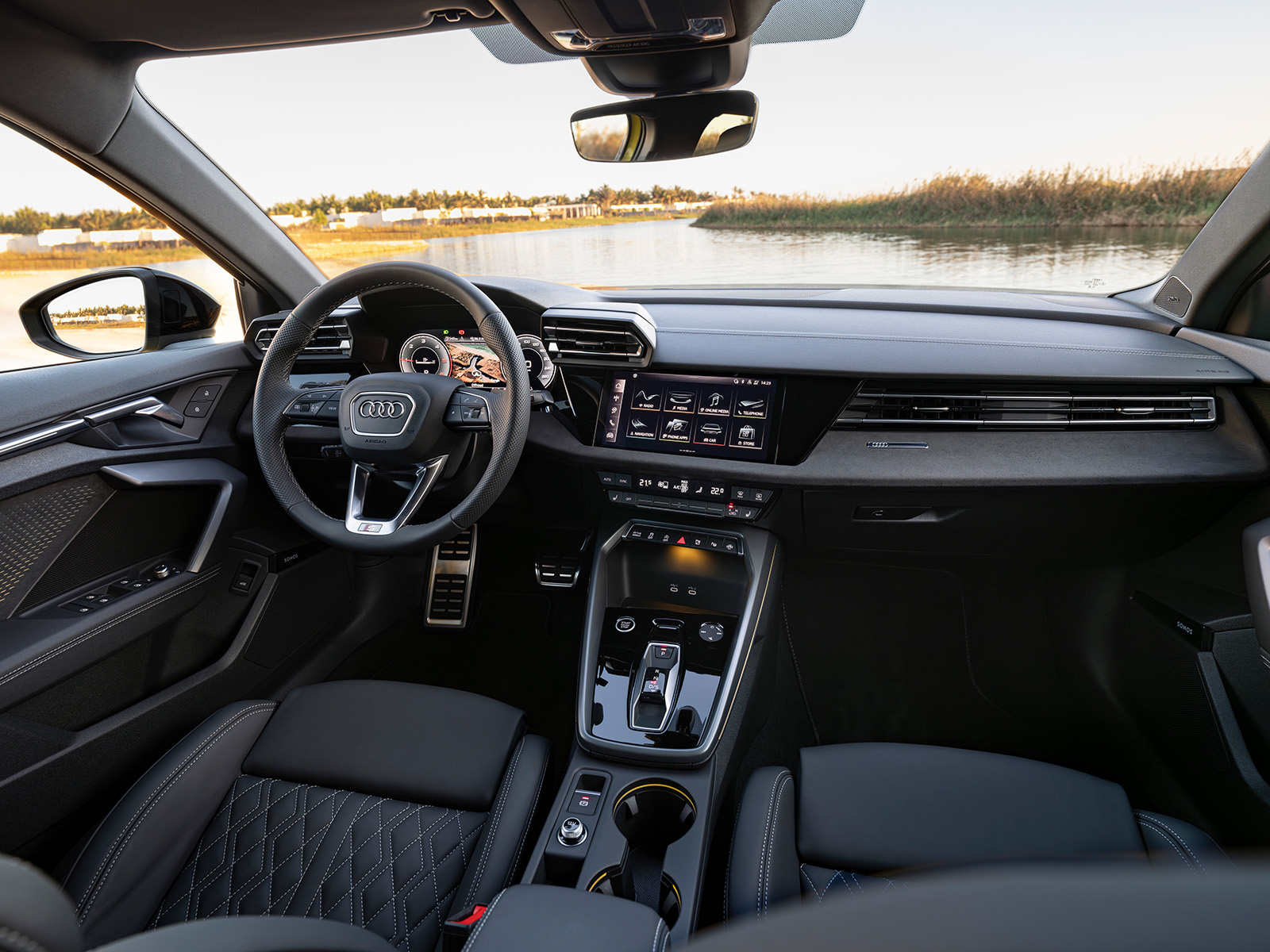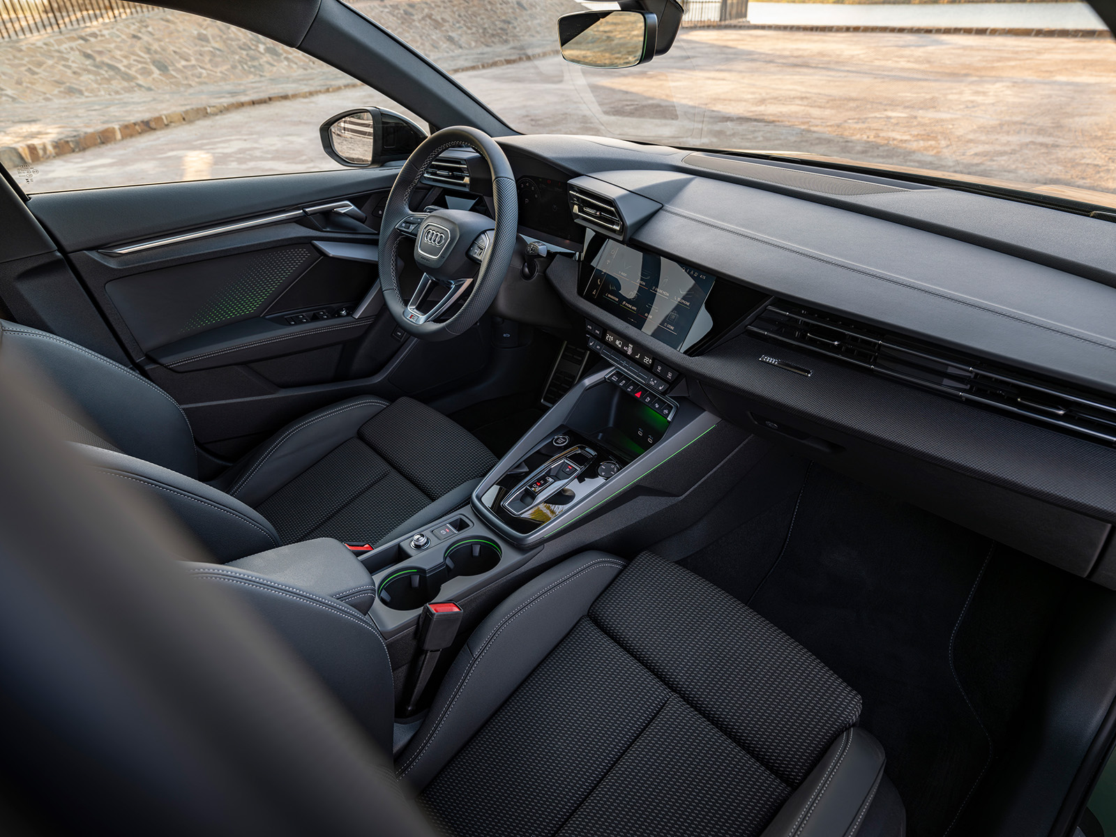 Исто така, има многу промени во внатрешноста на освежениот A3. Германските дизајнери ги редизајнираа отворите за воздух и исто така користеа нови завршни материјали. На пример, декоративниот панел на контролната табла може да биде исечен со ткаенина. Тоа е рециклиран полиестер. Поместени се и звучниците во вратите (озвучувањето го подготви Sonos), додадено е ново амбиентално осветлување, а се промени и обликот на потпирачот за раце на централниот тунел.