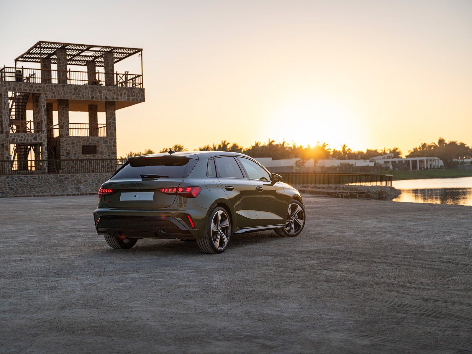 Назад промените се уште подискретни и се ограничени на нови светла со различна шема, како и нов ревидиран браник. Покрај тоа, како што доликува на фејслифт, тука дебитираат нови дизајни на алуминиумски бандажи. Изненадувачка новина е Audi A3 Allstreet, малку подигната и визуелно поборбена верзија на хечбекот. Ќе го препознаете од далечина благодарение на сребрените елементи во браниците и праговите.