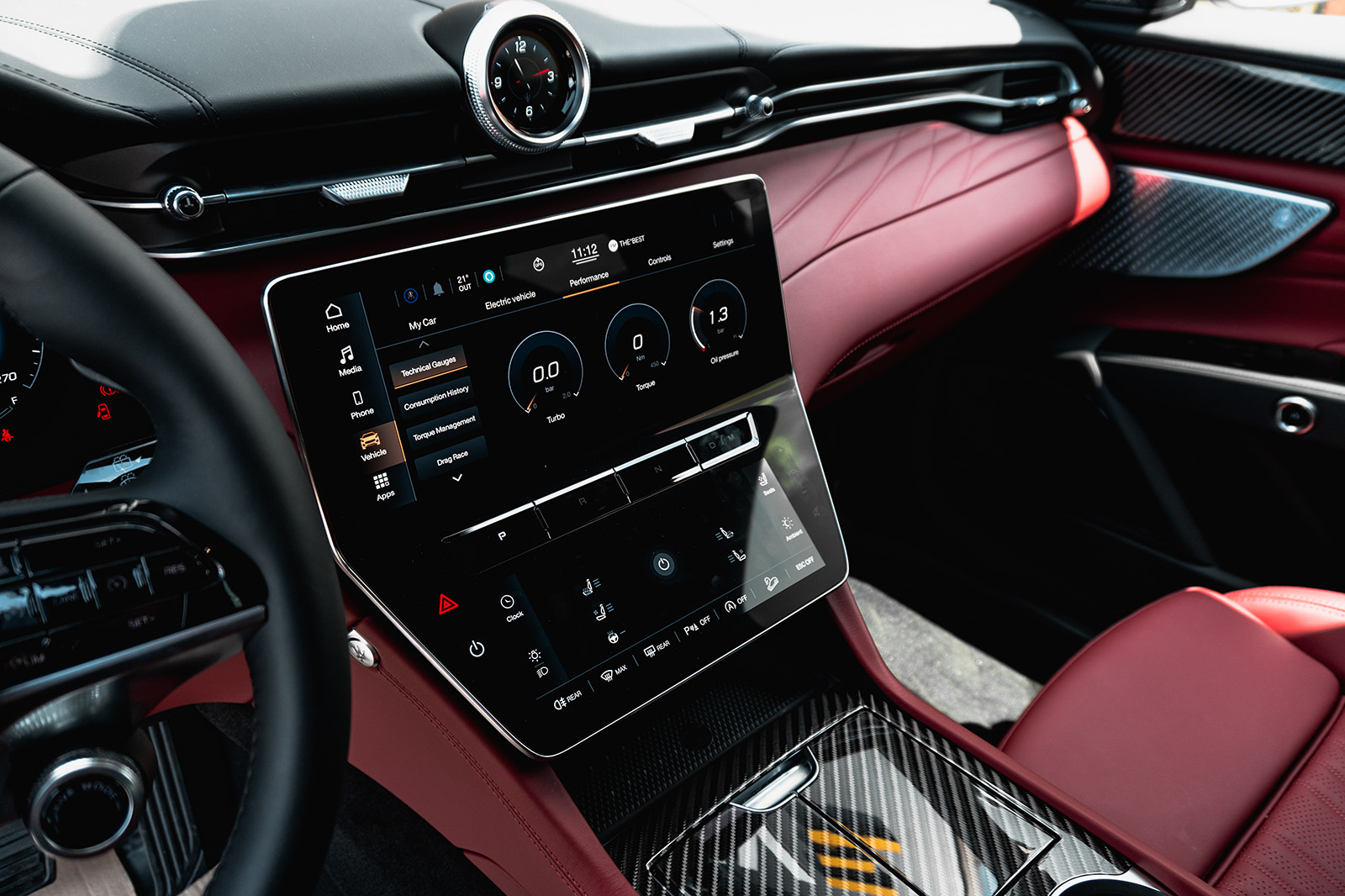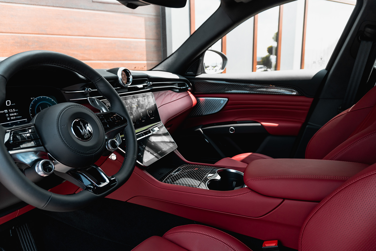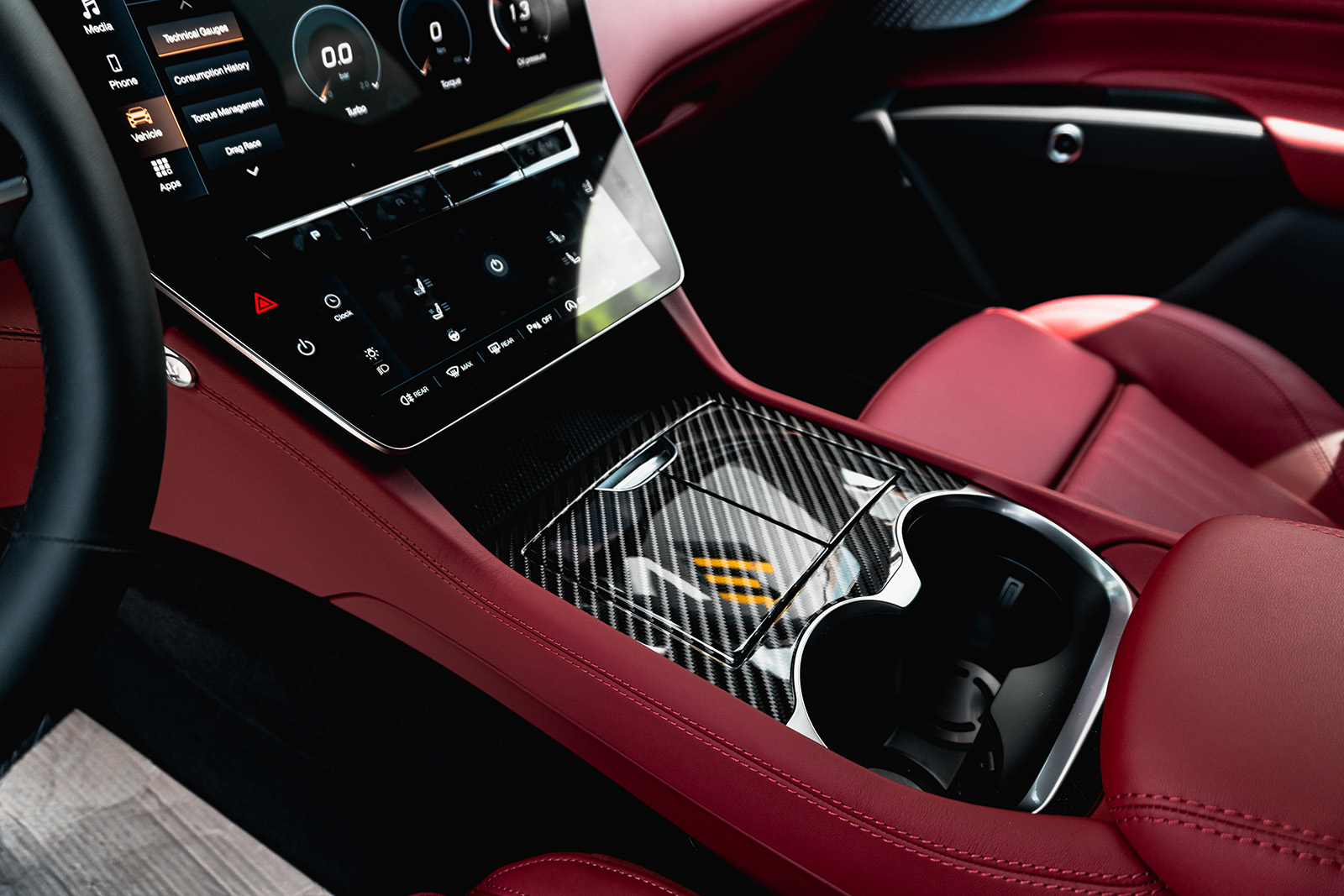 Ајде да погледнеме внатре – тука владее врвна кожа, врвни материјали и четири екрани. Maserati Grecale располага со интригантна пилотска кабина со сосема нов концепт на дизајнот. Покрај дигиталната инструмент табла, на централната конзола има и два екрани – едниот за инфозабавниот систем, додека другиот под него е наменет за контролите на клима уредот. Четвртиот екран е всушност дигиталниот часовник во горниот дел на контролната табла.