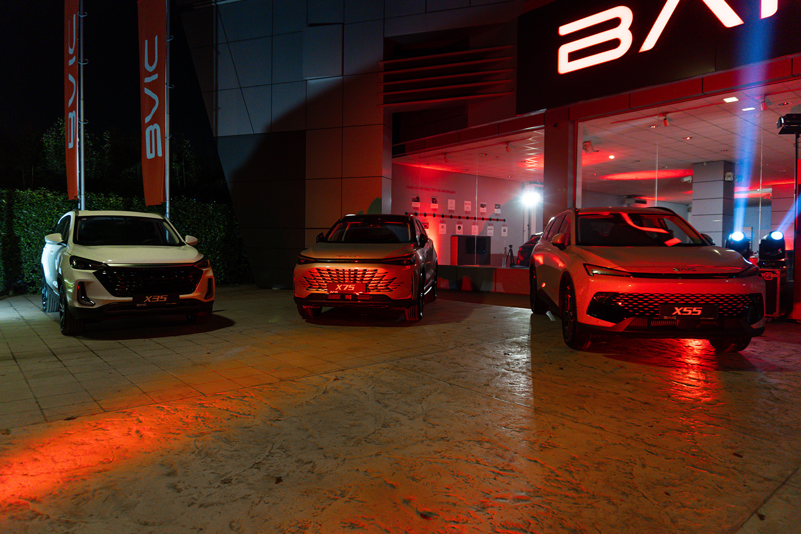 Понудата за нашиот пазар е богата уште од самиот старт. Во фокусот се секако SUV модели, најбараниот сегмент кај македонските купувачи. Ќе бидат достапни моделите BAIC X35, X55 и X75, кои покриваат различни големини и класи, како и уникатниот BJ30, кој се издвојува со својот поуникатен и авантуристички карактер. Дополнително, во понудата се наоѓа и EU5, електричен седан.