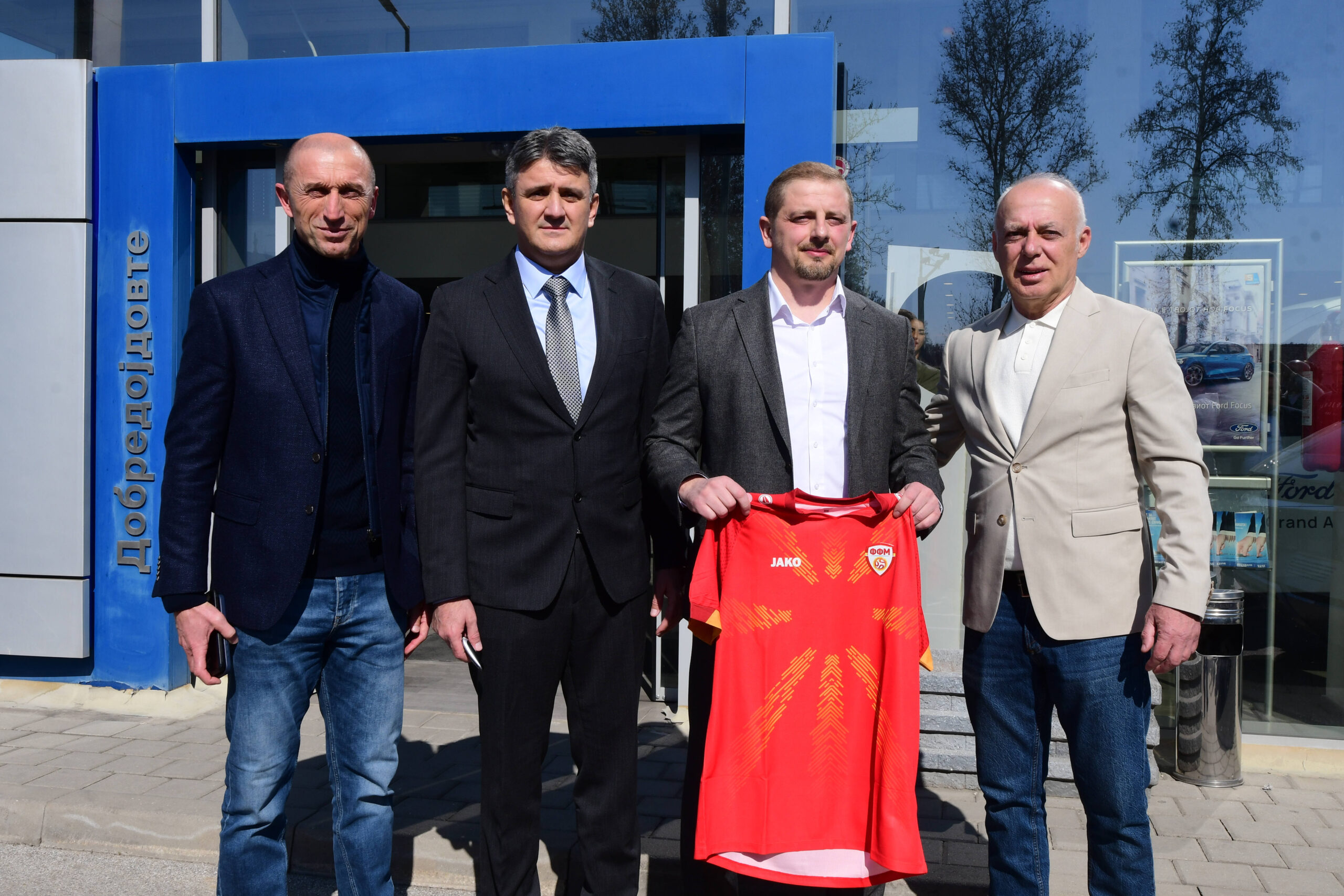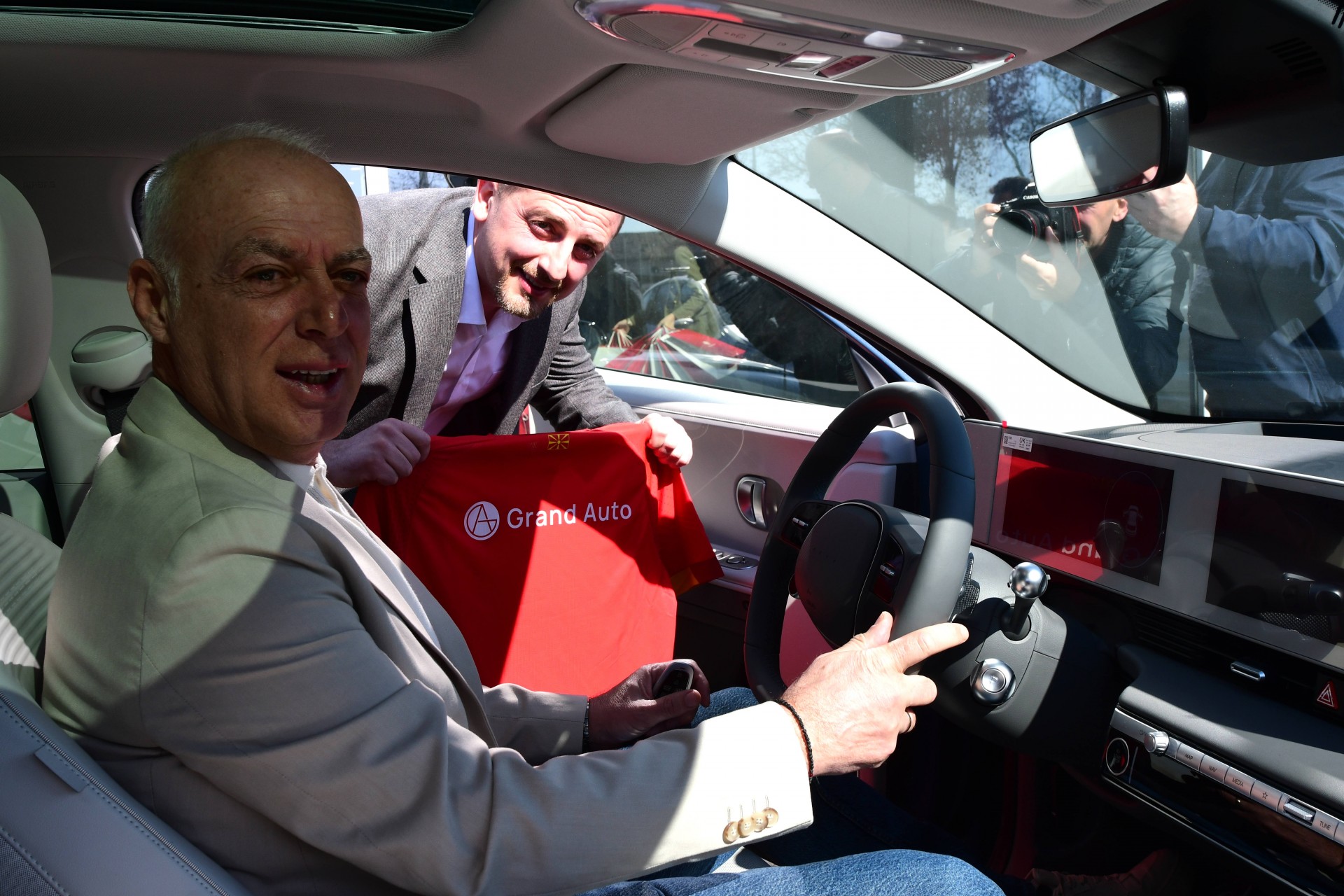 Во знак на благодарност за партнерството со Гранд Ауто и поддршката за македонската репрезентација, претседателот на ФФМ, Масар Омерагиќ на генералниот директор на Гранд Ауто му подари специјален репрезентативен дрес. Од своја страна пак, генералниот директор на Гранд Ауто, на првиот човек на ФФМ, му предаде симболичен подарок, клучеви од возилата, за означување на оваа важна соработка.