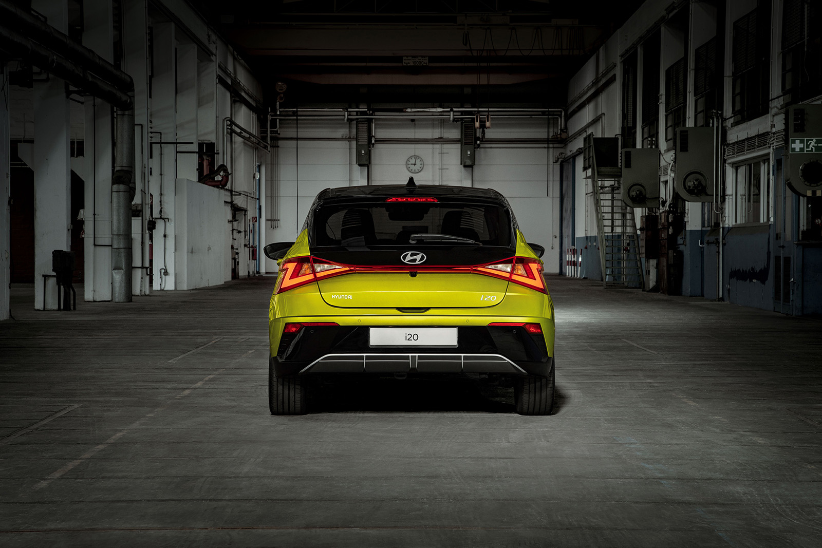 На задниот дел наоѓаме различно нацртан долен дел од браникот, со нов дифузер. Корејците се фокусираа и на нови дизајни на алуминиумски тркала и на проширување на палетата на бои. Една од новитетите е Lucid Lime бојата (како на фотографиите), која пријатно го оживува дизајнот на Hyundai i20 и одговара на урбаниот карактер на овој автомобил.