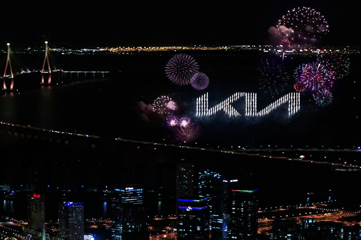 Новото лого беше откриено за време на рекордна пиротехничка изведба на небото над Сеул, Кореја. За оваа цел беа искористени 303 беспилотни летала кои лансираа стотици огномети во синхронизиран уметнички приказ, обележувајќи го новиот почеток на Kia. Со ова се постави нов Гинисов рекорд за „Најмногу беспилотни летала кои истовремено лансираат огномет“. Блескавиот приказ може да се види на YouTube каналот на Kia Motors Macedonia: https://youtu.be/AwISeZjrelA