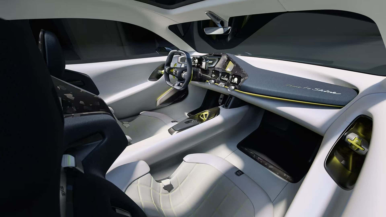 Внатрешноста, исто така, се одликуваше со игра со формата. Кабината има распоред 2+2 и комбинира модерна технологија со висококвалитетни материјали. Производителот користел бела кожа со интригантното име Digital Shimmer, која го осветлува ентериерот со рефлектирачка светлина. Покрај него се наоѓа рачно изработен Textreme 360 од карбонски влакна. Овој елемент директно се однесува на мотоспортот, во кој е присутен Geely (како што споменавме), и го нагласува карактерот на целиот проект.