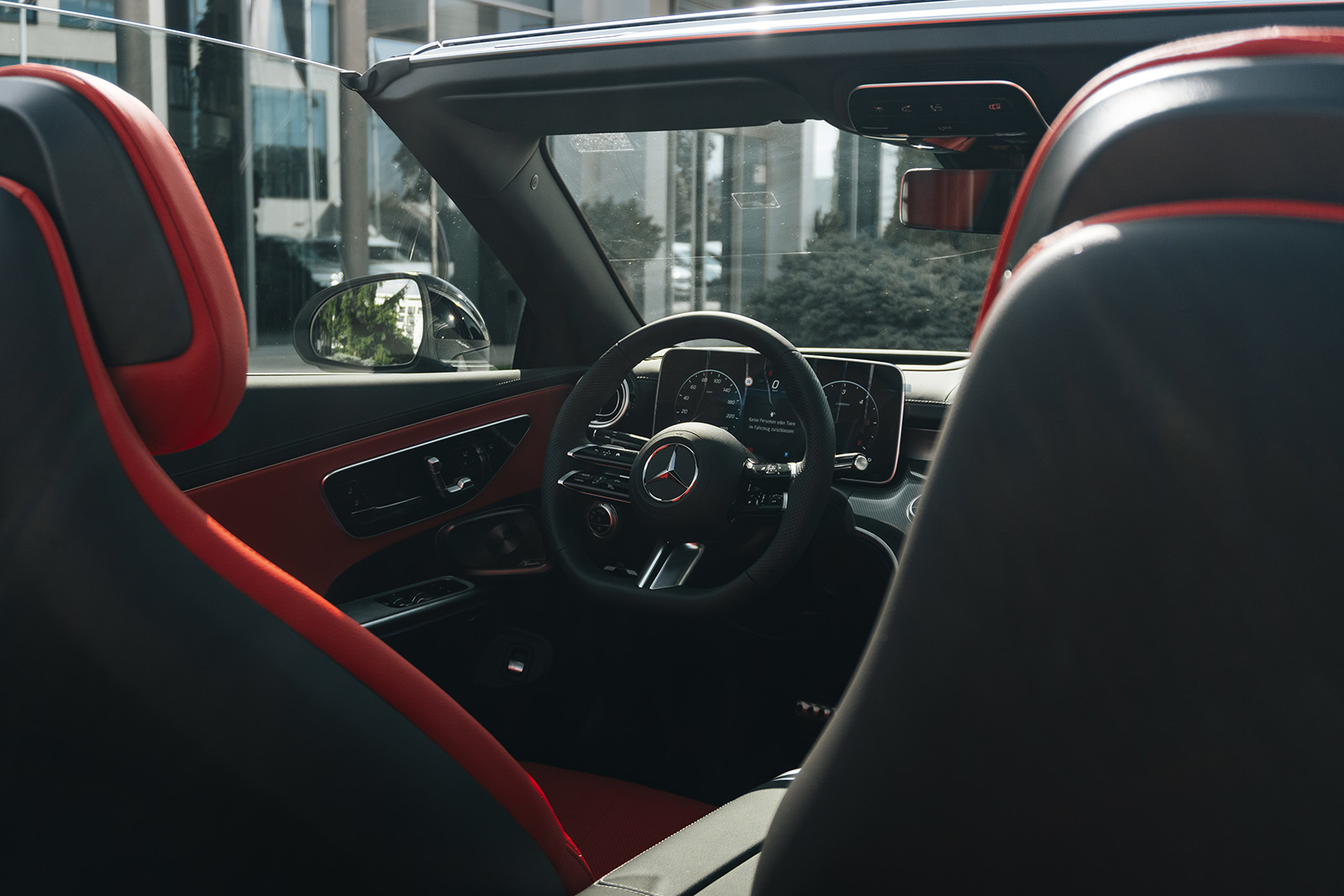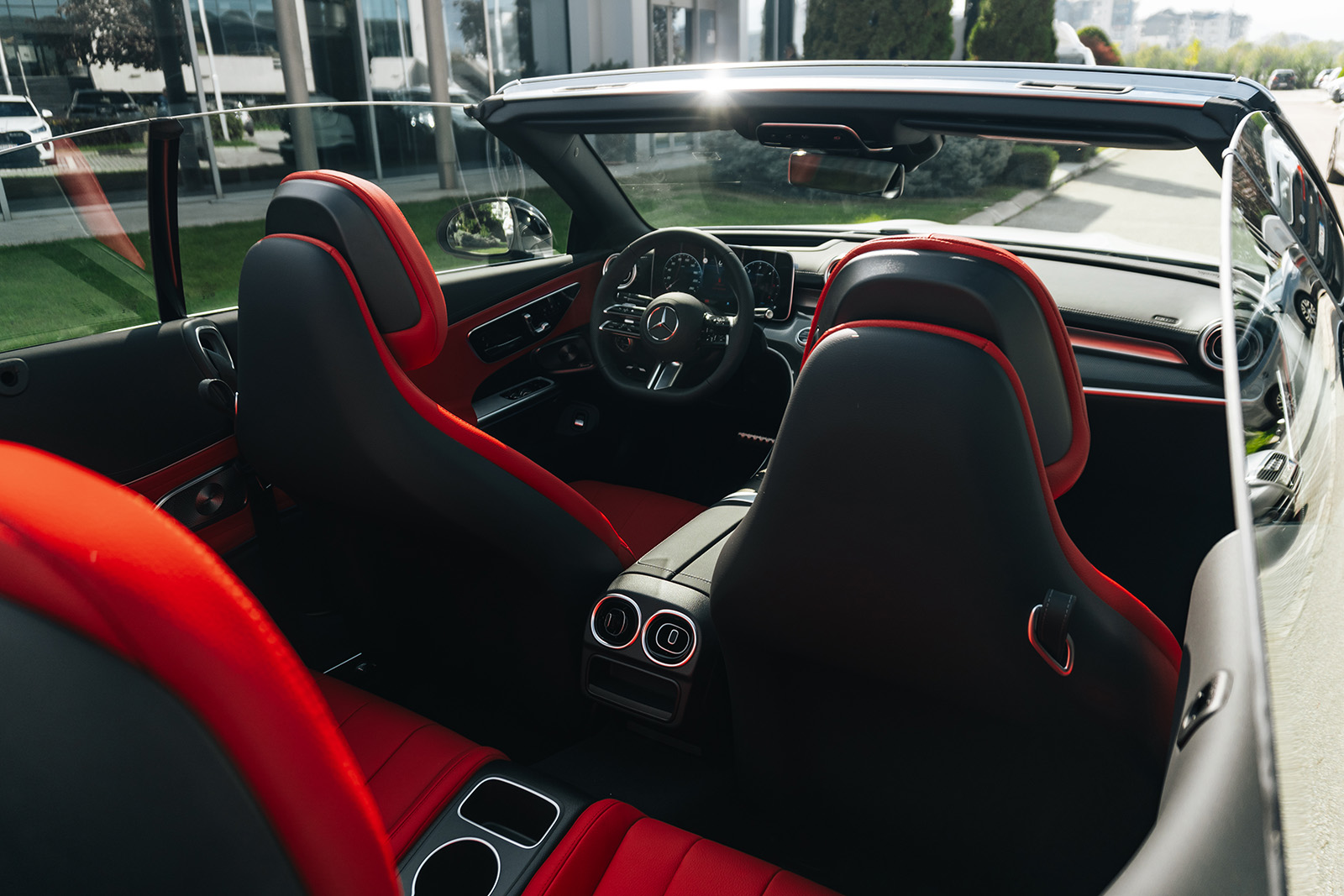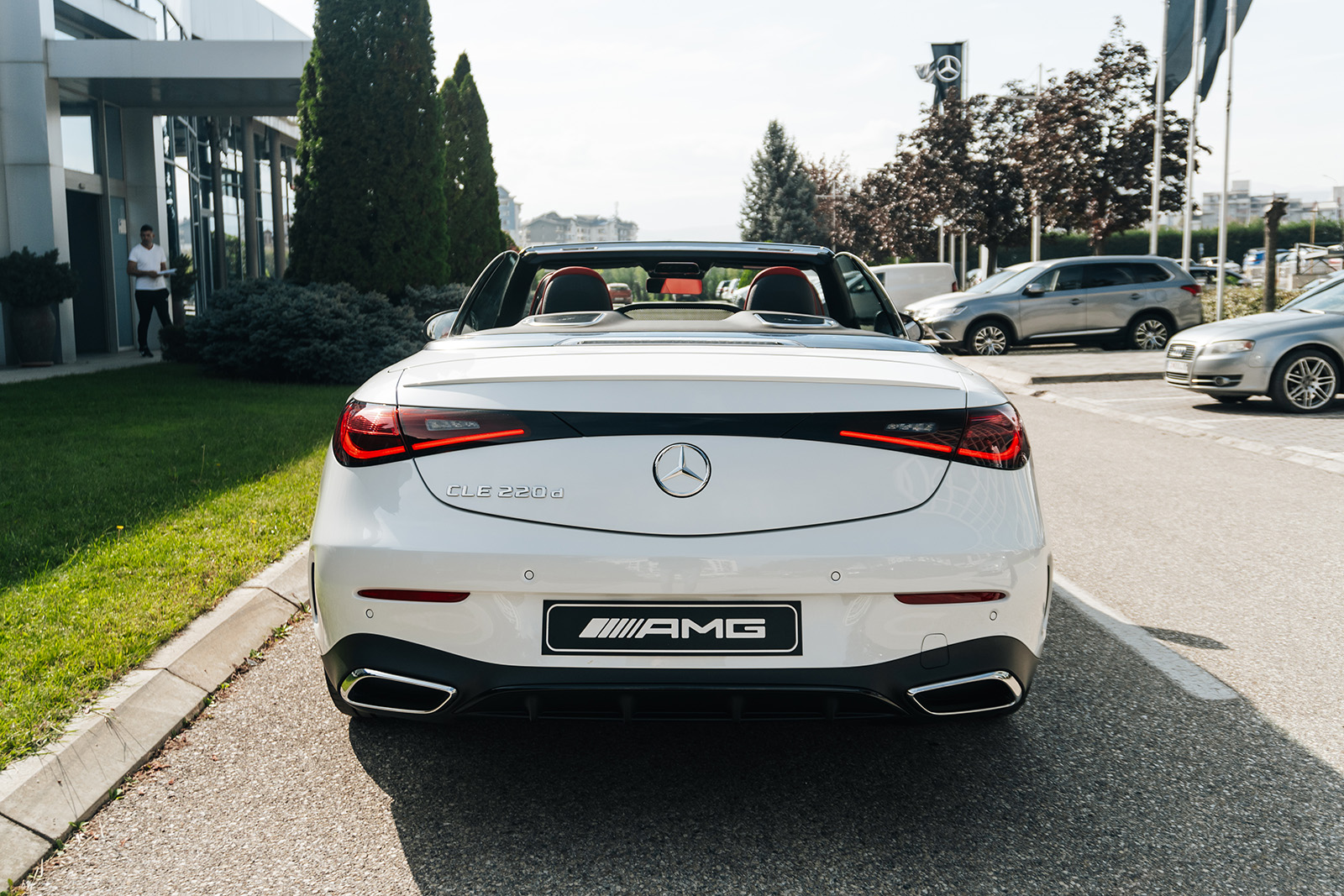 CLE е достапен и како купе верзија и како кабриолет, па во зависност од вашиот вкус може да ја одберете вашата идеална верзија. Дизајнот е динамичен и со карактеристични линии за брендот. Конкретниот модел е со AMG-Line пакет кој придонесува за уште подинамичен изглед. Инаку, ве делат точно 20 секунди од возење под отворено небо. Уште повеќе, покривот можете да го отворите и додека возите, со брзина до 60 км/ч. Истото важи и за затворањето. А точно е дека и багажникот се намали на 285 литри, но вреди – стилот е тука на прво место.
