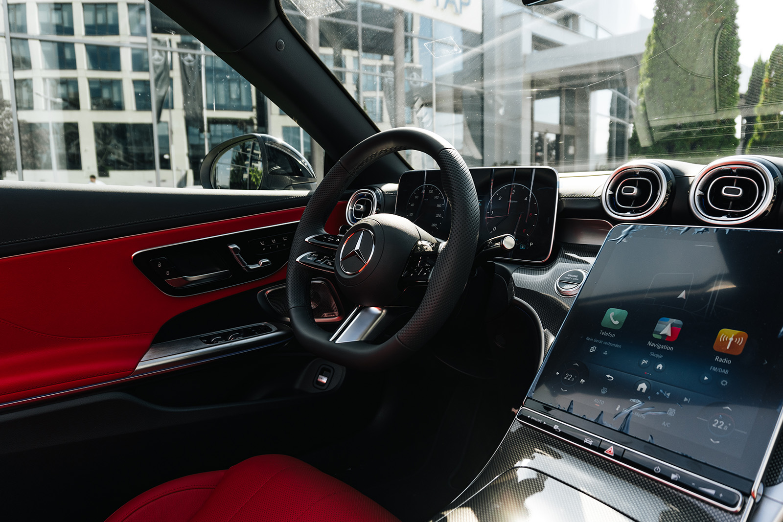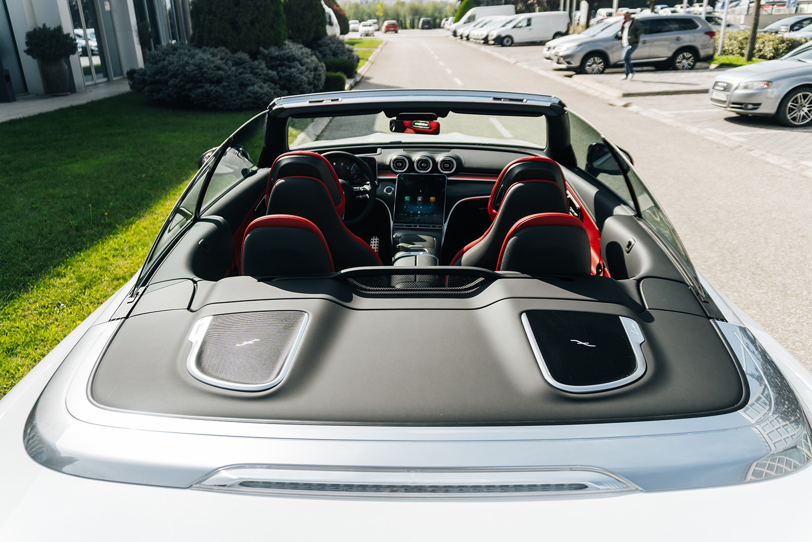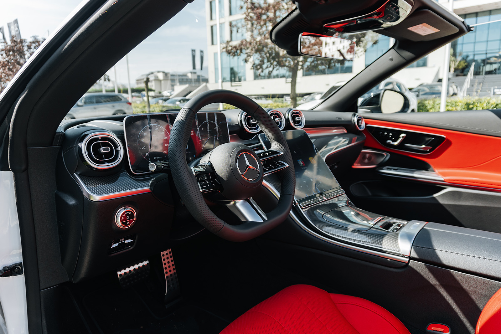 CLE е достапен и како купе верзија и како кабриолет, па во зависност од вашиот вкус може да ја одберете вашата идеална верзија. Дизајнот е динамичен и со карактеристични линии за брендот. Конкретниот модел е со AMG-Line пакет кој придонесува за уште подинамичен изглед. Инаку, ве делат точно 20 секунди од возење под отворено небо. Уште повеќе, покривот можете да го отворите и додека возите, со брзина до 60 км/ч. Истото важи и за затворањето. А точно е дека и багажникот се намали на 285 литри, но вреди – стилот е тука на прво место.