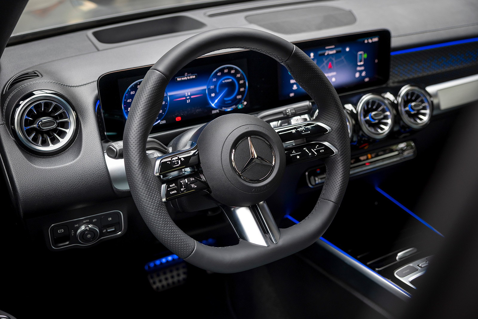 Внатрешноста исто така претрпе модернизација. И тоа е исто така симболично – шаблонот на воланот е ажуриран, а додадена е и опција за завршна обработка од варово дрво. Наоѓаме и поголем дисплеј за MBUX системот. Сега екранот од 10,25-инчи е стандардна опрема. Самата мултимедија е ажурирана на најновата верзија, што, меѓу другото, значи и подобрен гласовен асистент или променети визуелизации. Ништо револуционерно.
