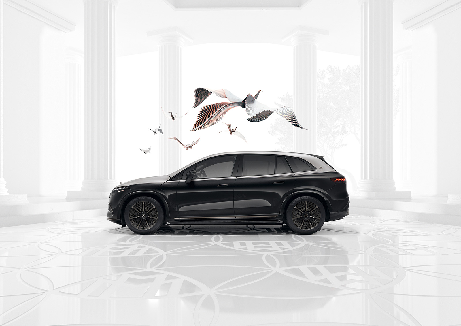 EQS изобилува со уникатни акценти и детали, вклучително и странични прозорци со високо полирани, црни рабови во 3D дизајн. Задниот спојлер ја надополнува неговата спортско-аеродинамична декорација. Пакетот Night Series за EQS е достапен во црна obsidian боја, MANUFAKTUR „diamond white“ и ексклузивна завршница во комбинација од две бои – obsidian црна/Mojave сребрена.
