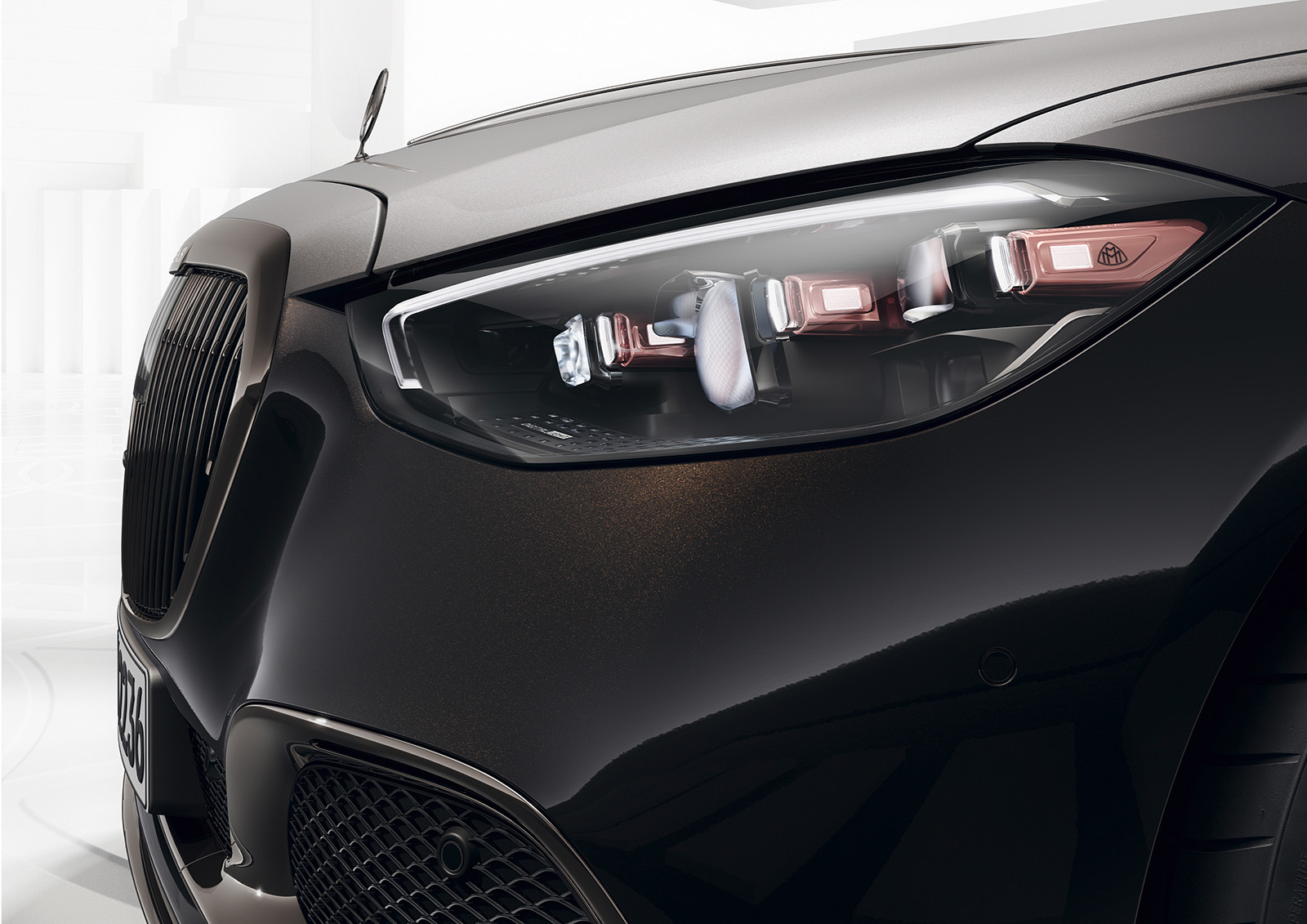 Night Series верзијата на Maybach-GLS може да се пофали со комплетен преден дел со елегантни темни хромирани елементи, вклучително и исправена Mercedes ѕвезда на хаубата, решетка на ладилникот, украсни елементи и шема на Maybach во страничниот довод за воздух. Предните светла се карактеризираат со суптилни и висококвалитетни детали од rose gold, а страничниот дел има неколку благородни акценти на темен хром. Ексклузивните тркала се во формат од 23-инчи, стилизирани со висококвалитетни детали, вклучително и шема на Maybach, што го нагласува страничниот изглед и го дефинира карактерот.