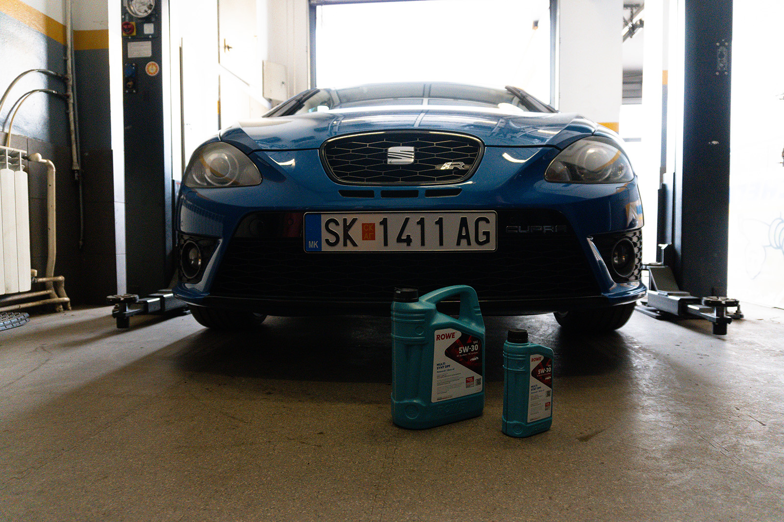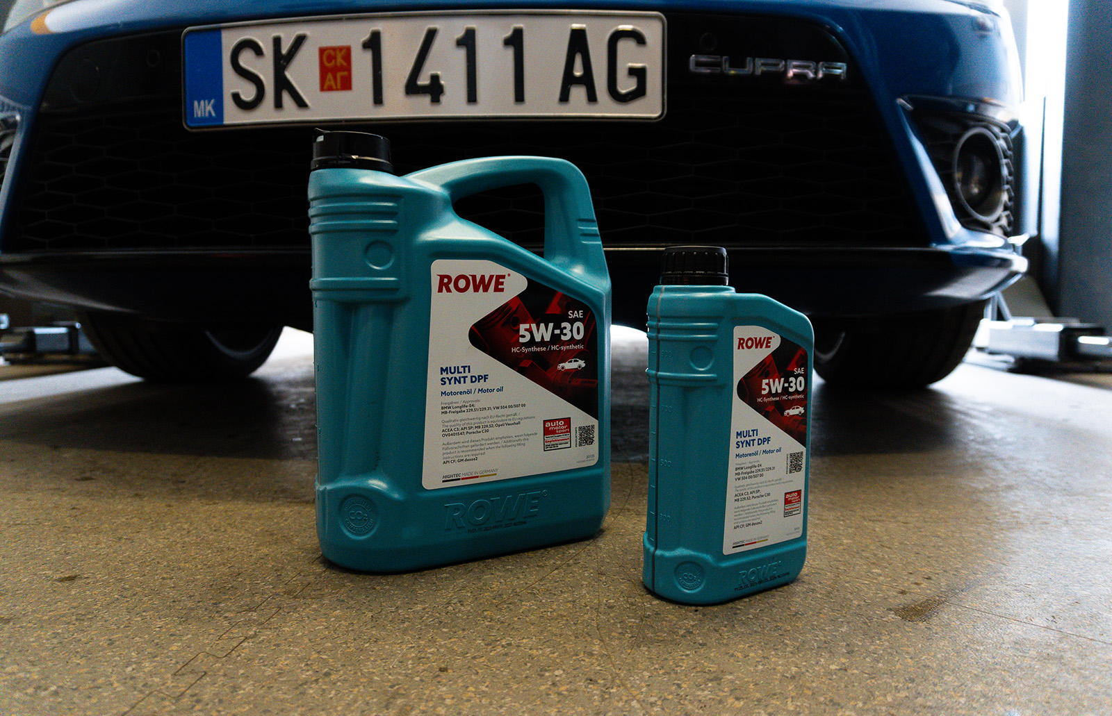 На мојот автомобил направивме брз сервис – промена на моторно масло и сите филтри. Маслото кое е ставено и кое е препорачано од ROWE за мојот автомобил кој користи 2.0-литарски TFSI турбо-бензински мотор е Multi Synt 5W-30 (HC-Synthetic). Ова моторно масло е за премиум рационализација засновано на технологија за HC синтеза и може да се употребува за автомобилски бензински и дизел мотори со и без турбополнач. Овој производ може да го постигне своето високо ниво на перформанси благодарение на употребата на суровини со врвен квалитет.