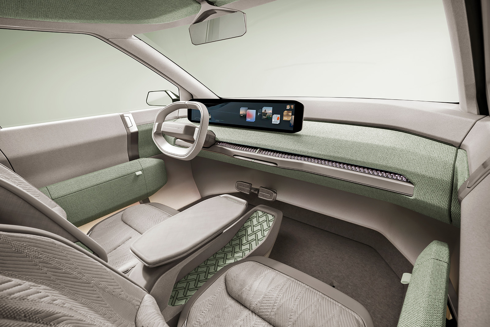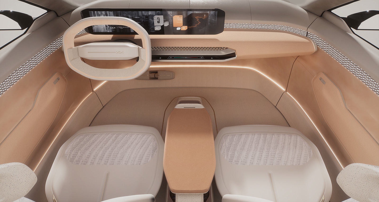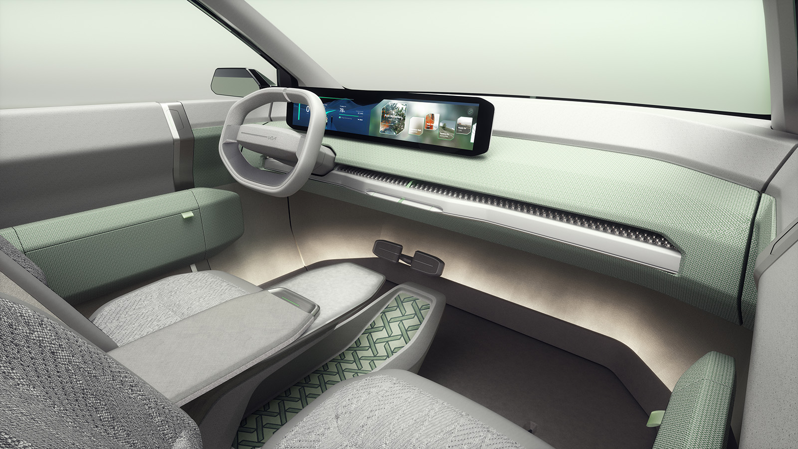 Со новиот EV5, KIA ги следи модерните трендови и додава дека во понудата ќе има неколку дизајни на седишта обложени со еколошка ткаенина од рециклирани ПЕТ шишиња, или синтетичка кожа од био полиуретан (Bio-PU). Дополнително, во внатрешноста ќе се појави мал фрижидер/грејач со зафатнина од четири литри, кој ќе ви овозможи да загревате храна или ладите пијалоци во температурен опсег од 5 до 55 °C.
