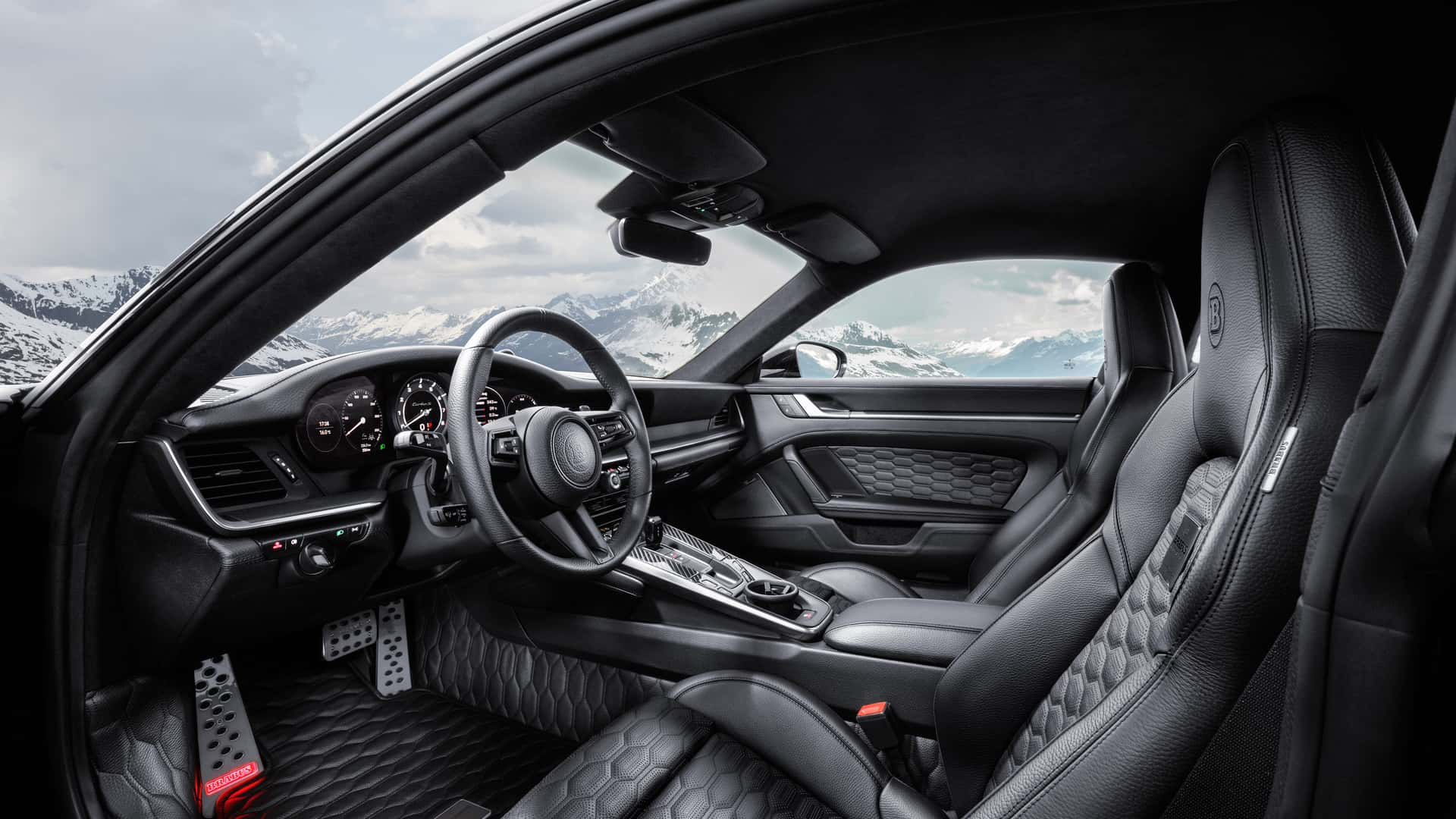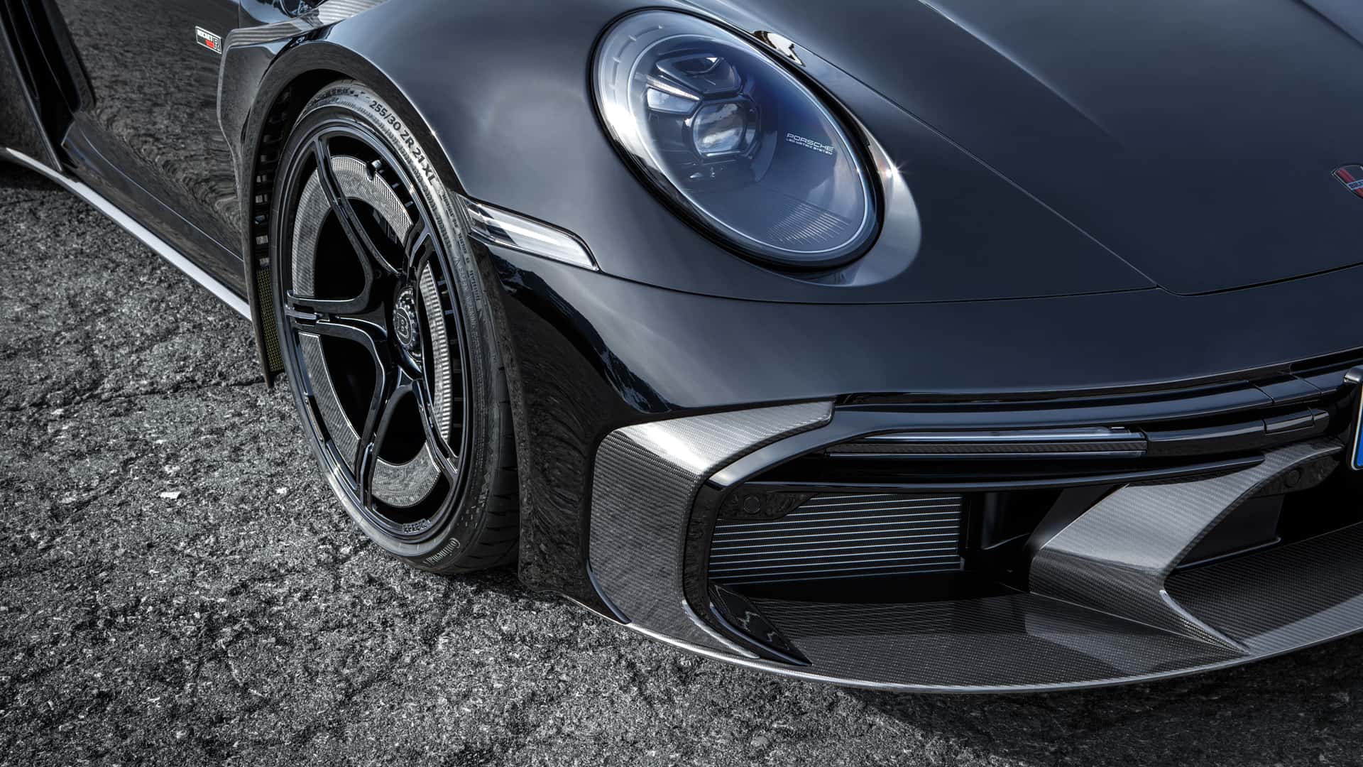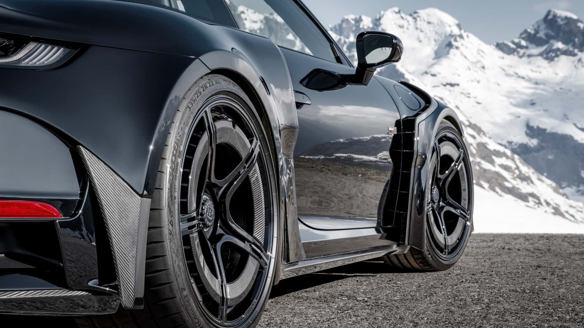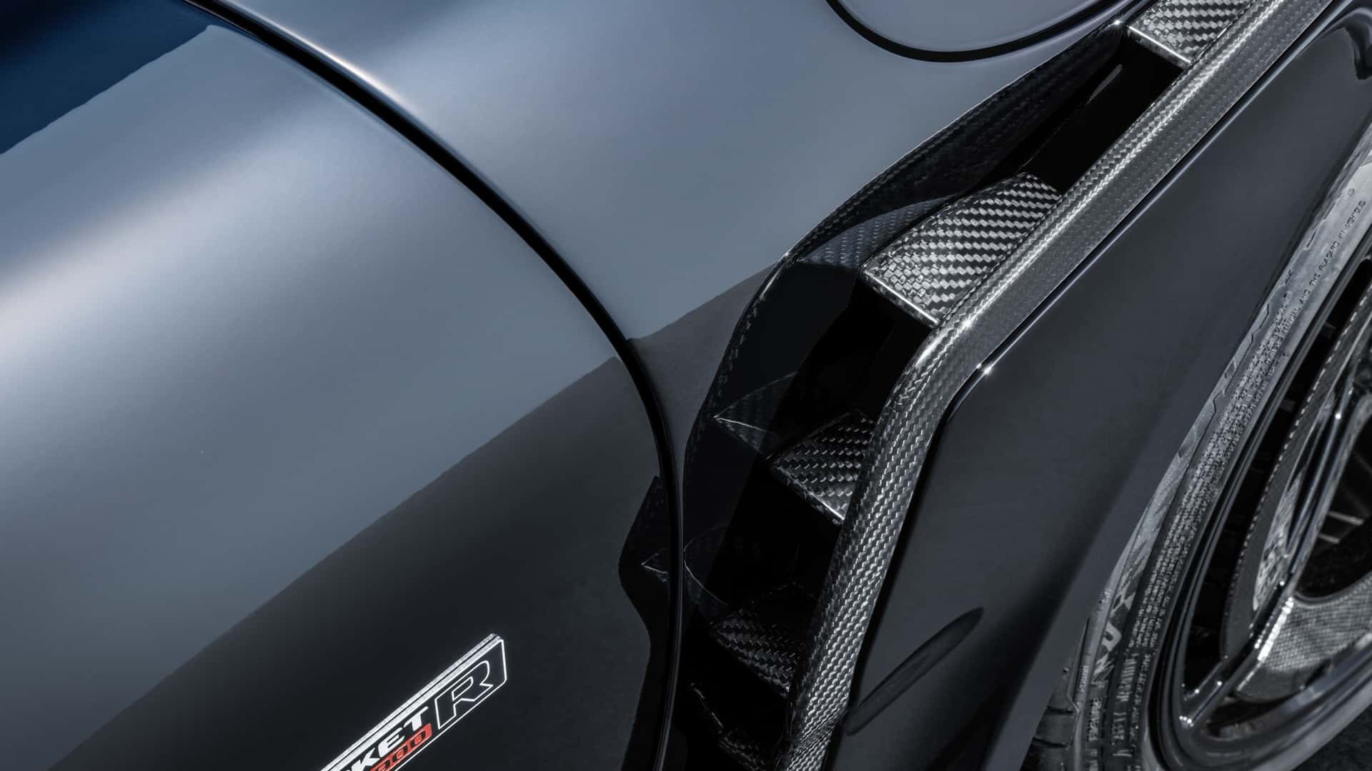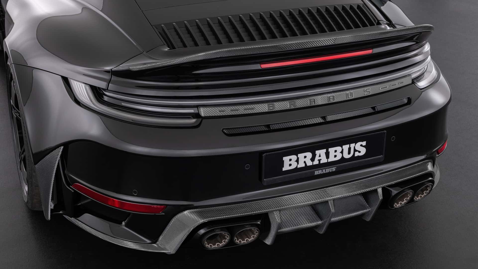 Надворешноста е импресивна – Brabus 900 Rocket R е МНОГУ широк! 911 е опремен со впечатлив бодикит што го прави автомобилот значително поширок. Во голема мера е направен од карбон, што помага да се задржи тежината. Германците се фокусираа на агресивен и до некаде претеран изглед, но има клиенти кои го сакаат токму тоа. Автомобилот е надополнет со 21 или 22-инчни Monoblock P Platinum тркала (опционално), исто така направени од forged карбон. Нивната издржливост и леснотија се голема предност во спортски автомобил со такви перформанси.