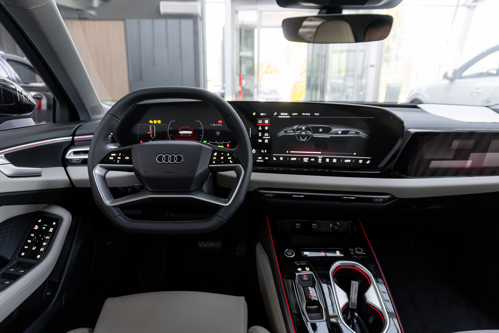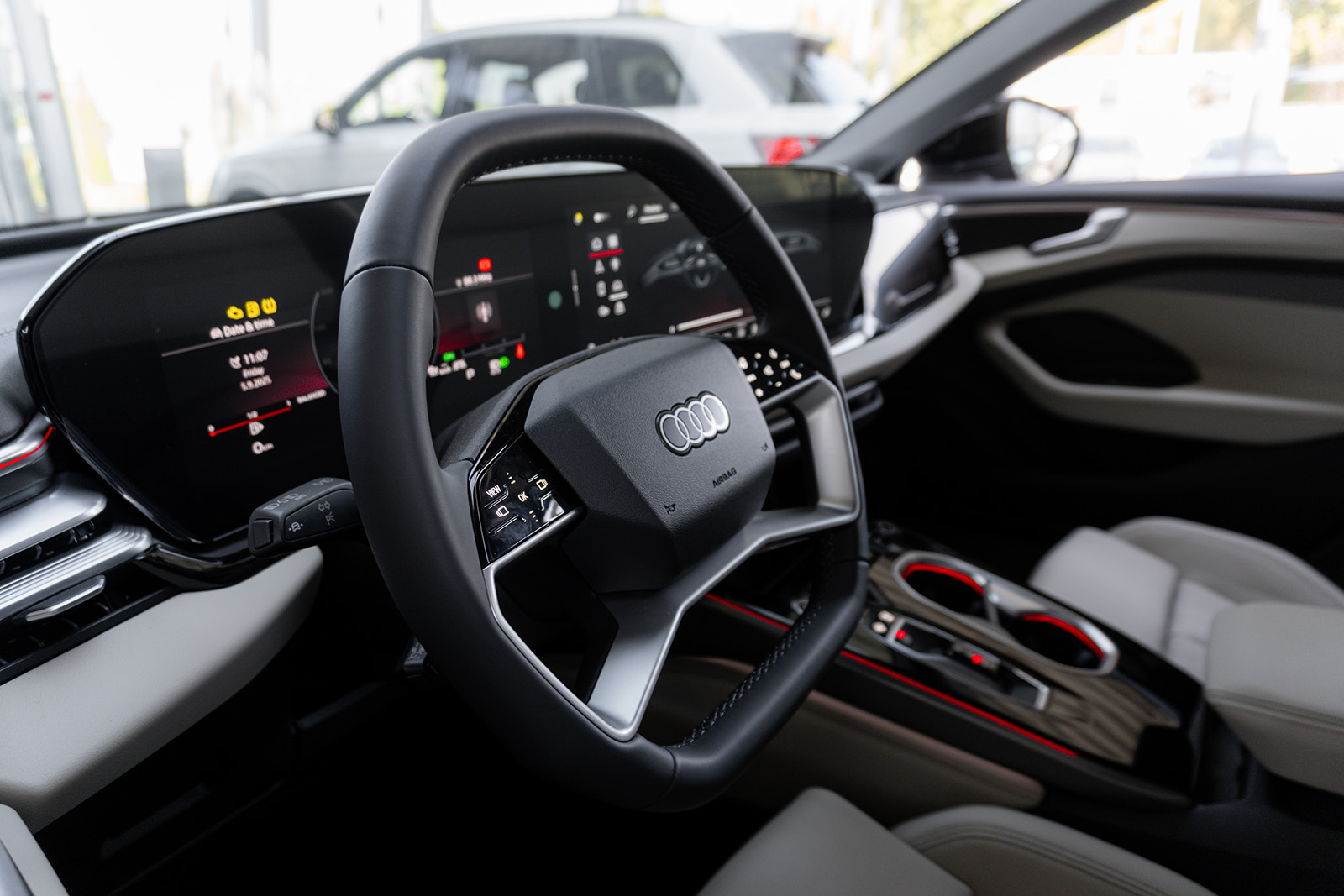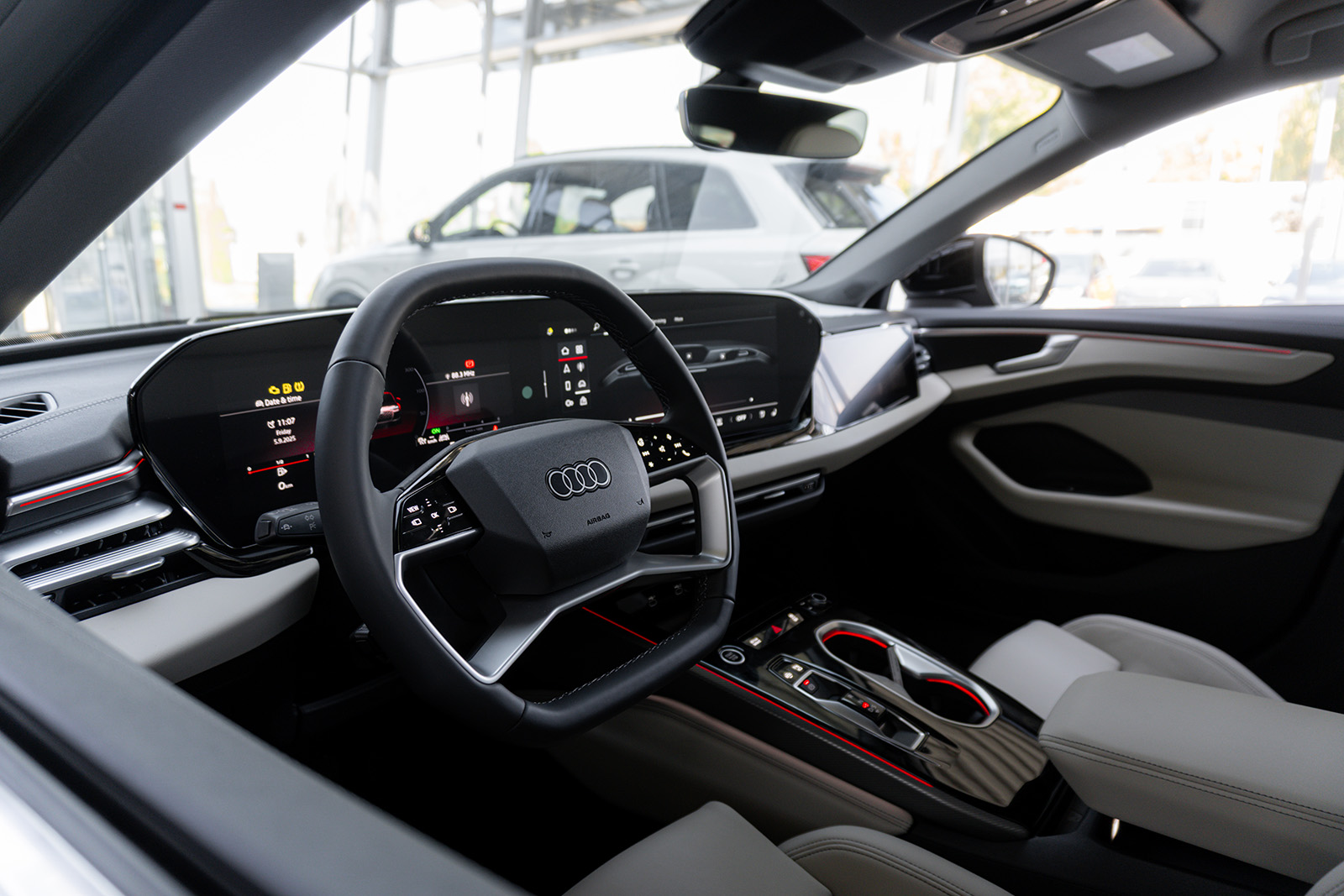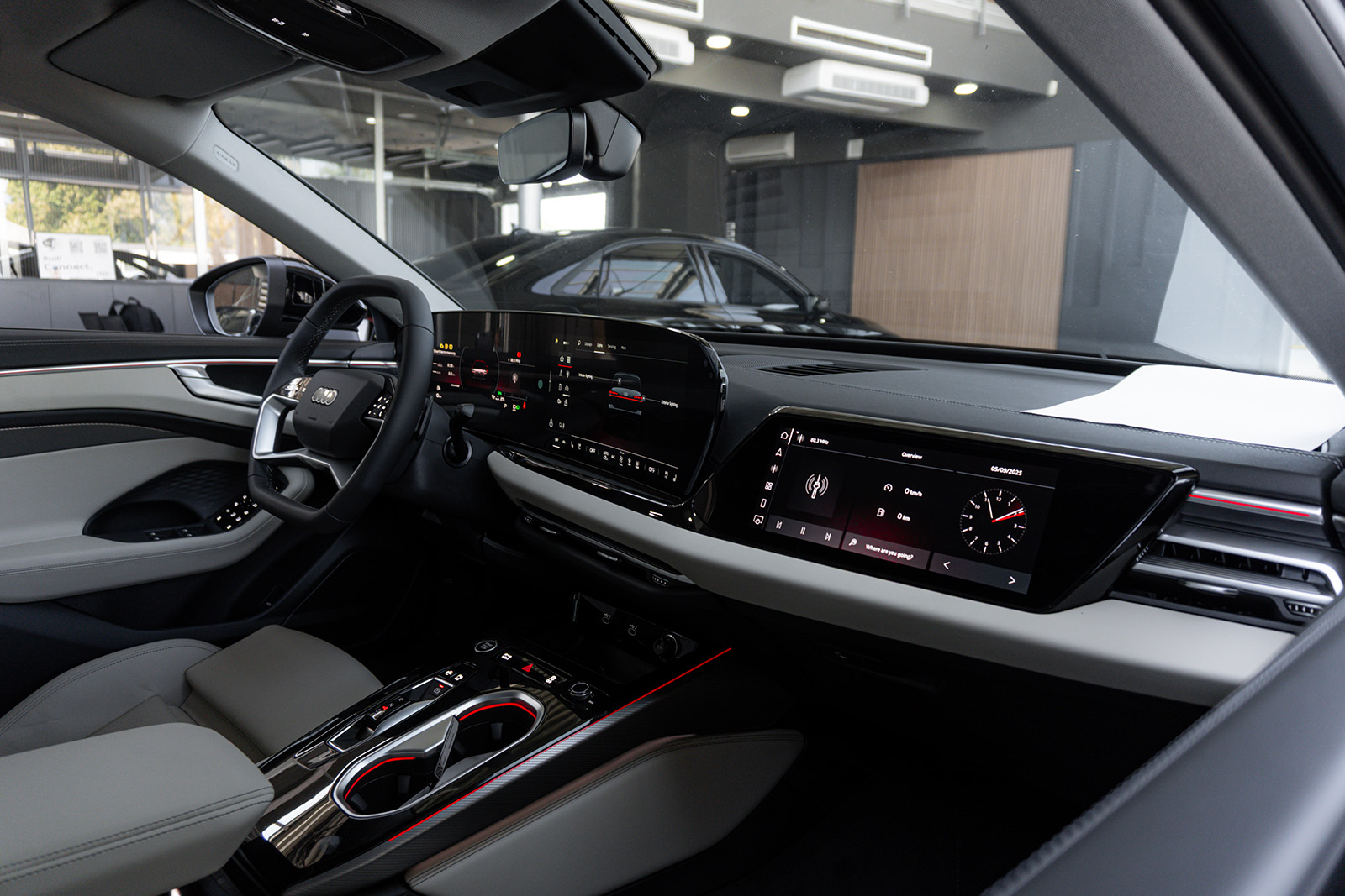 Внатрешноста е позната – и тука можете да се расправате за стилот. Големите екрани секако се стандардни кај новите автомобили, а оние во A6 се потполно исти како оние во A5, Q5, Q6 E-Tron и A6 E-Tron. Тие се придружени со многу пијано црна пластика, што не изгледа многу добро. Тоа е едно од нештата што разочарува тука. Секако, има опционален трет екран од страната на совозачот, иако е тешко да се оправда бидејќи нема разумна употреба за него.