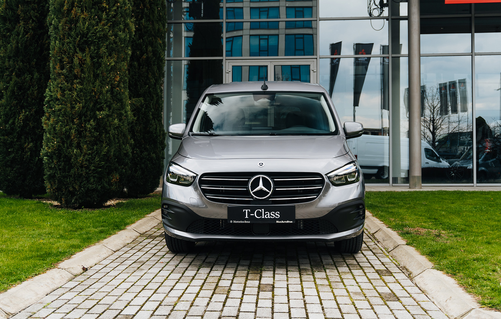Со новата Т-Class, Mercedes-Benz внесува удобност и разновидност во сегментот на мали ван автомобили. Овој целосно нов модел комбинира мултифункционалност и огромна количина на простор со високо ниво на опрема. T-Class е развиена специјално за семејства и луѓе со активен лајфстајл на кои им треба многу простор за нивниот секојдневен живот, како и за викенд патувањата или спортските активности.