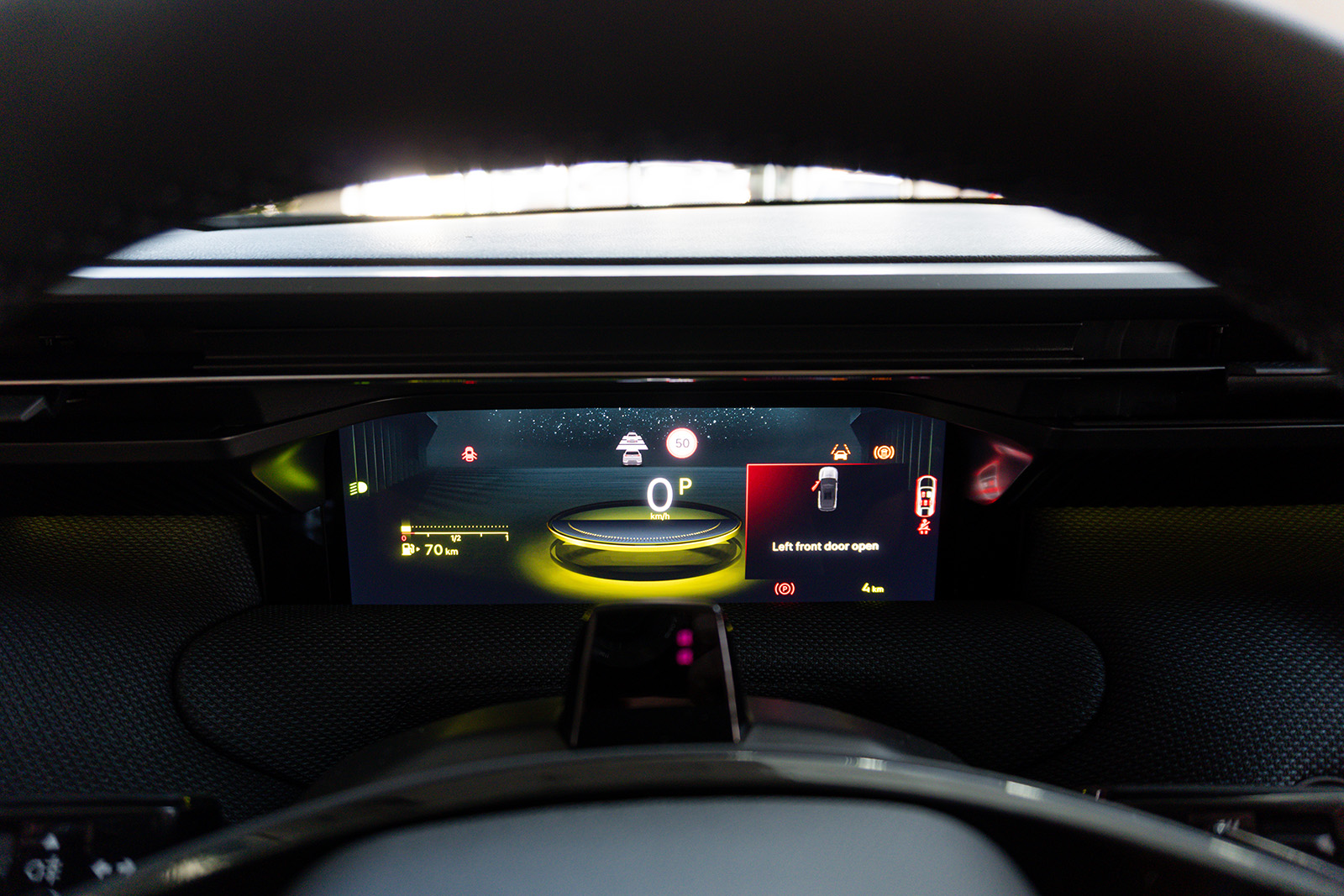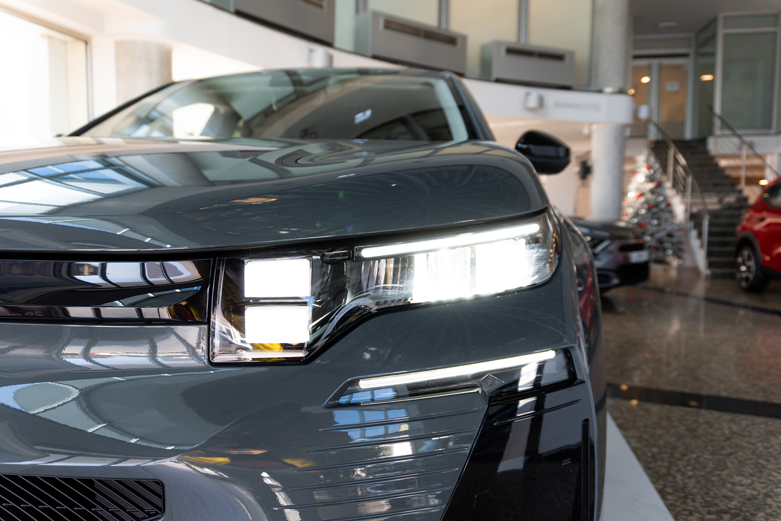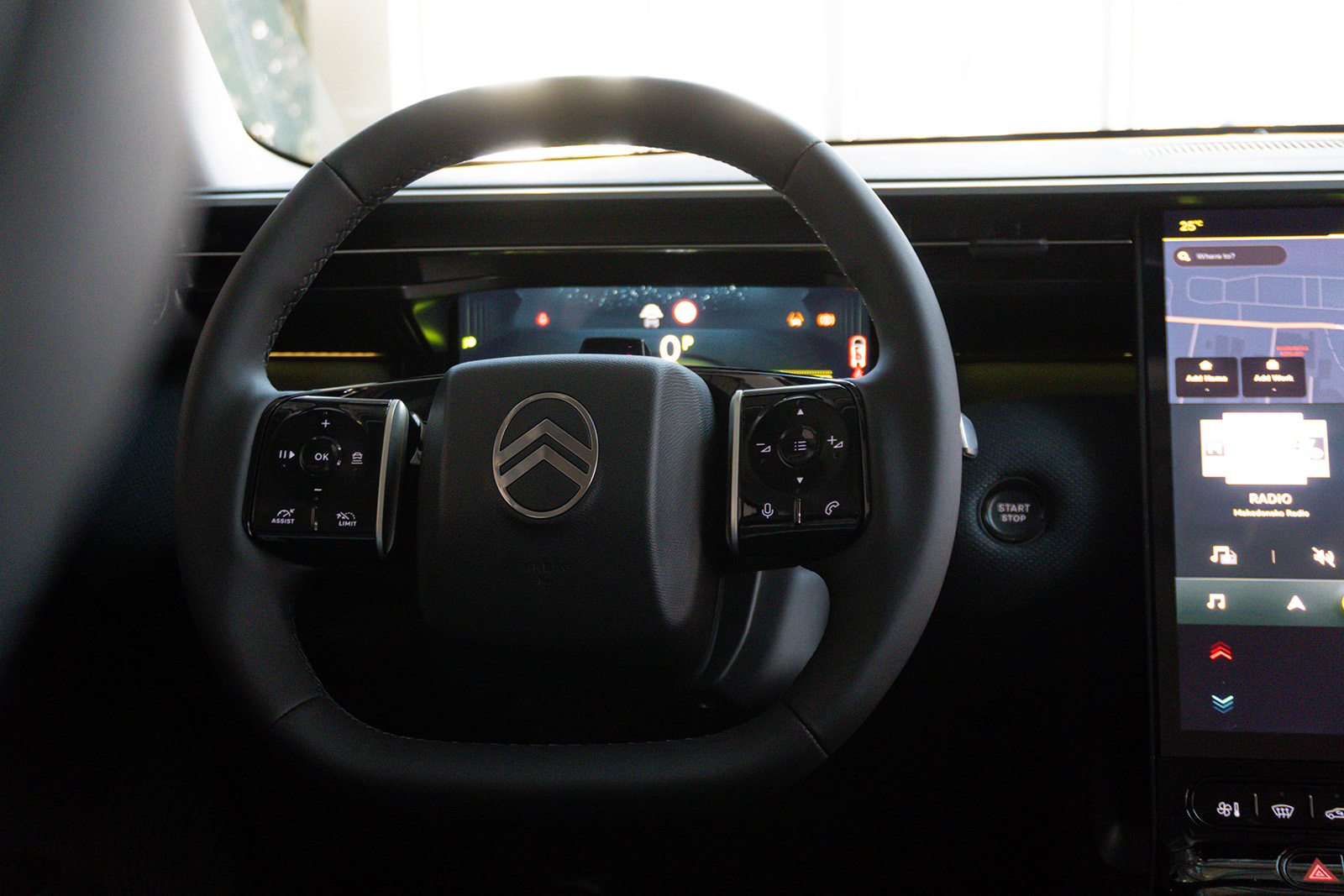 Внатрешноста е сосема нов концепт. Нема повторување на другите автомобили од групацијата Stellantis. Откако ќе ја отворите вратата, веднаш ќе го забележите мултимедијалниот екран од 13,6 инчи, кој е поставен вертикално и малку накосен. Зад него ќе најдете дополнителни прегради за складирање и USB-C порти. Зад воланот има 10,25-инчен екран за инструментите.