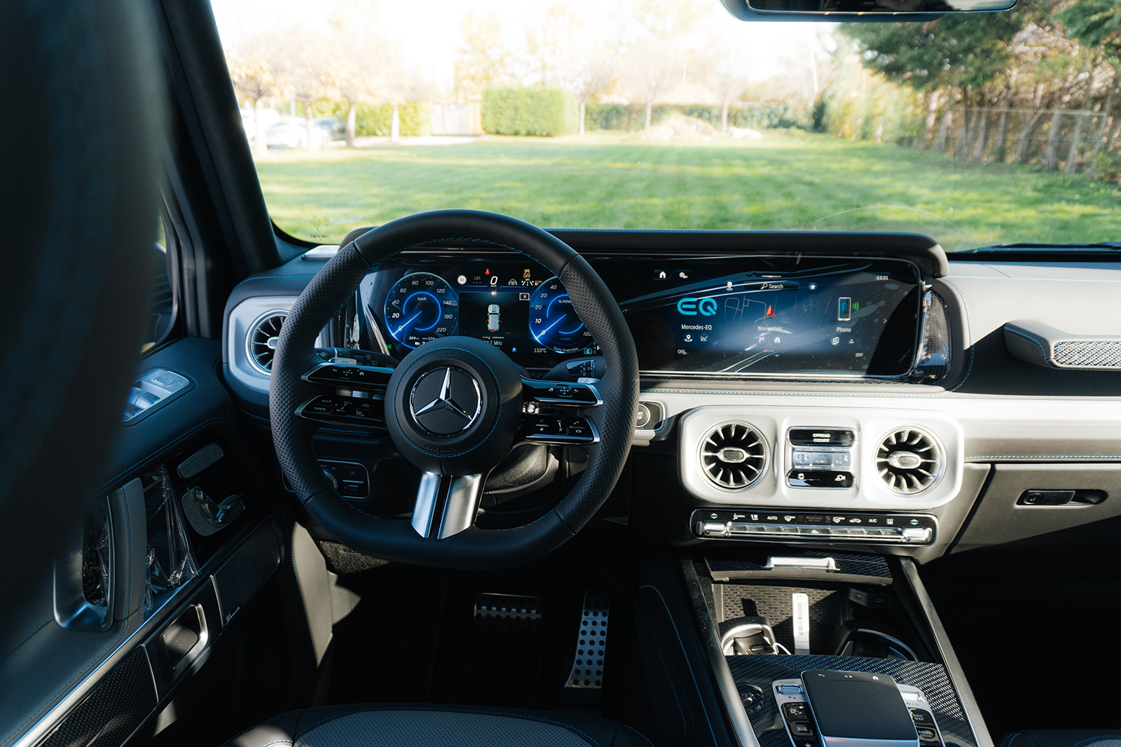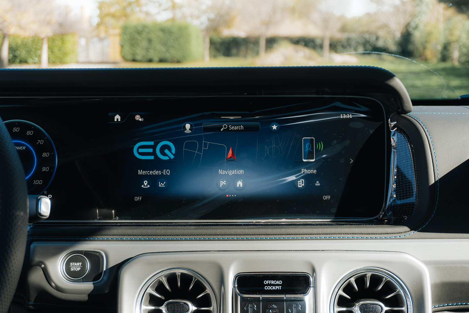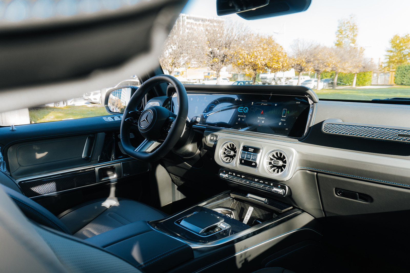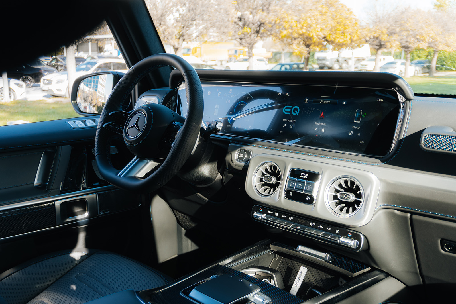 Возачот има на располагање и режими на возење кои ја прилагодуваат работата на целиот систем на теренот кој моментално е покриен. Дизајнот со четири мотори, исто така, овозможи да се создаде системот G-Turn. Mercedes долго време се фали со ова. Благодарение на соодветно избраниот вртежен момент на секое тркало и обратните насоки на работа на моторите, G-Class може да се врти во место. Тоа е повеќе гаџет отколку нешто навистина неопходно, но секако остава впечаток.