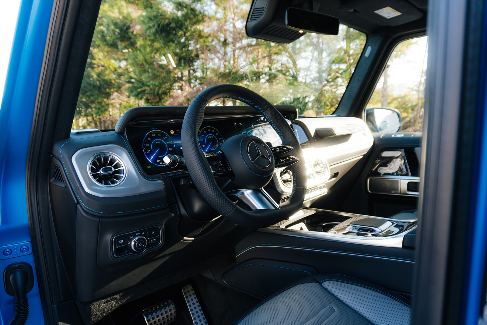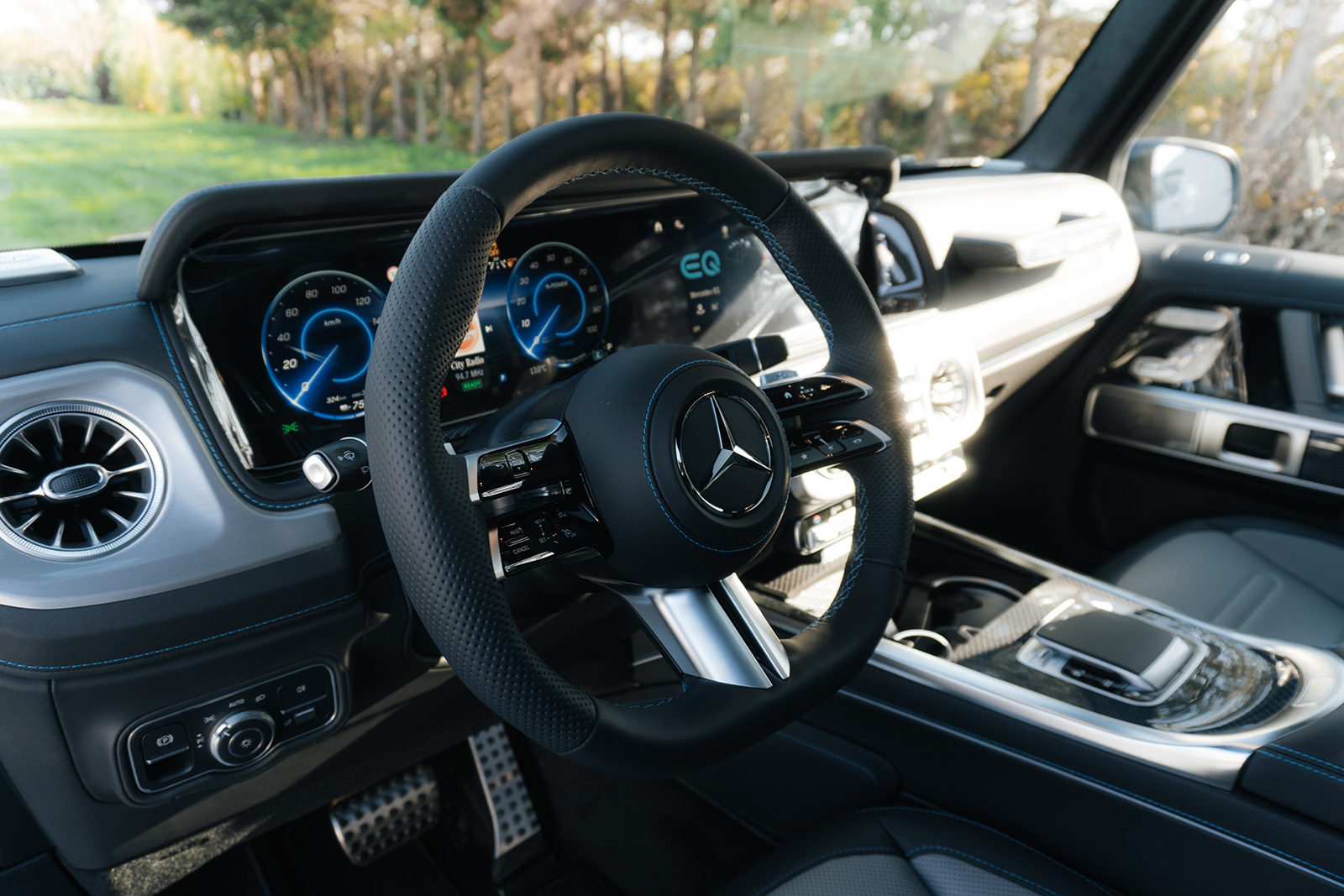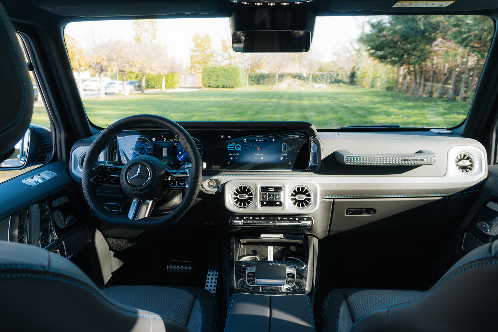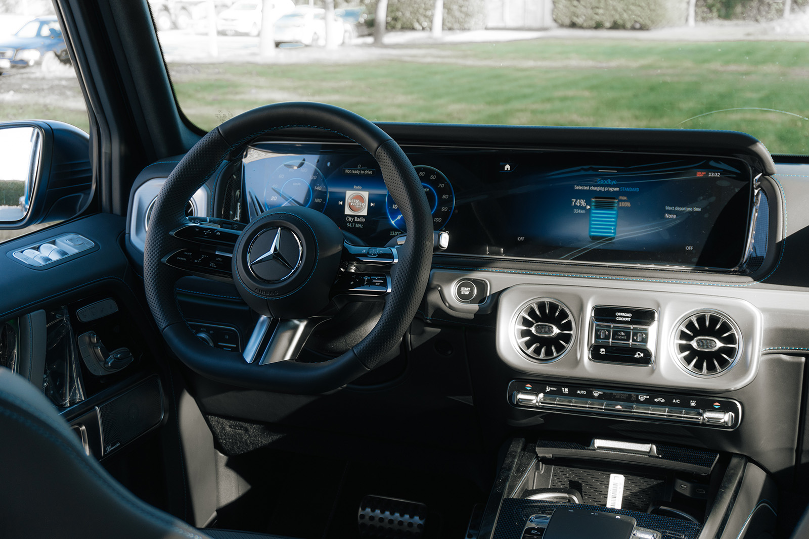 Возачот има на располагање и режими на возење кои ја прилагодуваат работата на целиот систем на теренот кој моментално е покриен. Дизајнот со четири мотори, исто така, овозможи да се создаде системот G-Turn. Mercedes долго време се фали со ова. Благодарение на соодветно избраниот вртежен момент на секое тркало и обратните насоки на работа на моторите, G-Class може да се врти во место. Тоа е повеќе гаџет отколку нешто навистина неопходно, но секако остава впечаток.