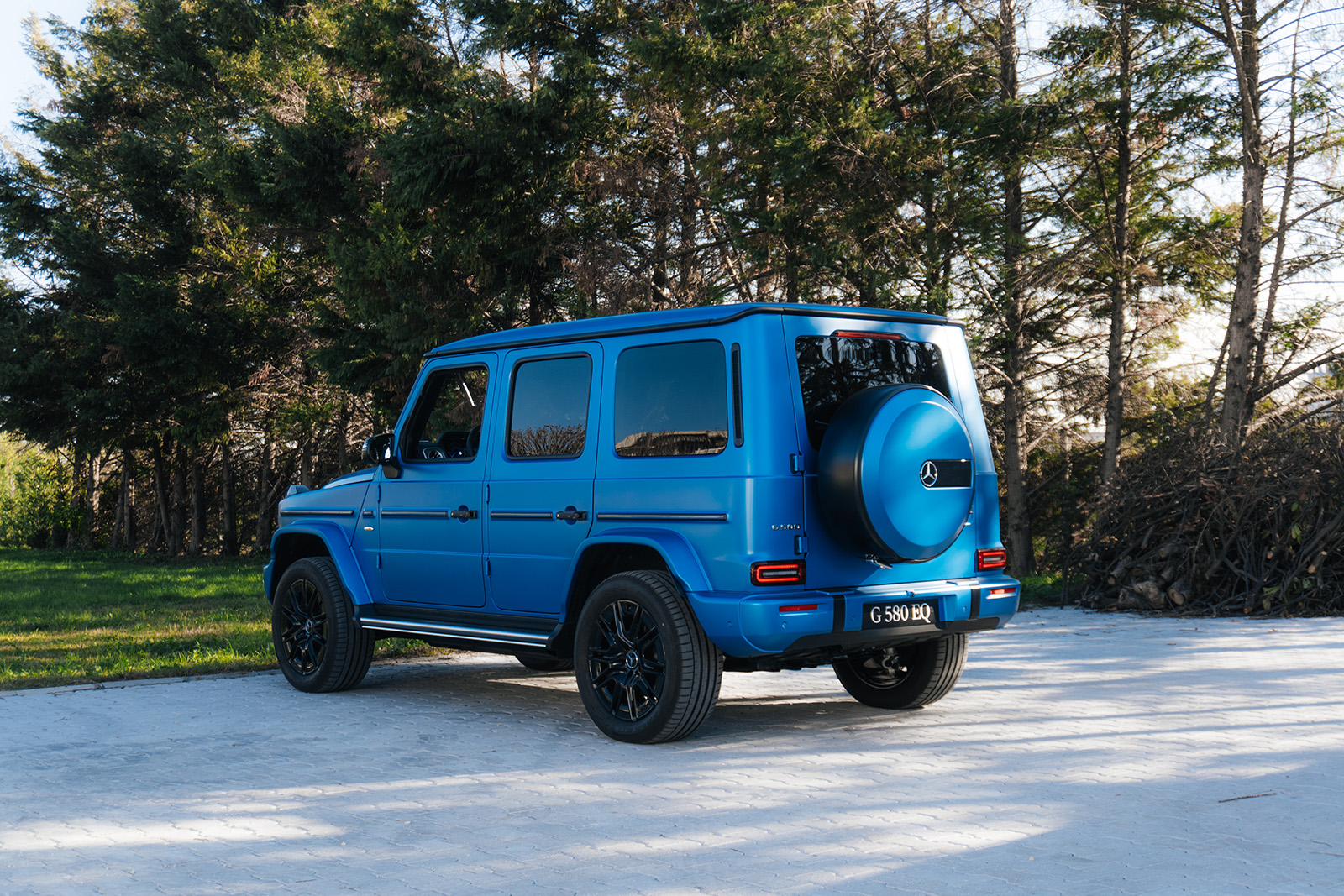 Визуелните промени на електричниот Mercedes G-Class се скромни. Оваа верзија може да има карактеристична карактеристика во форма на црна маска (дополнително осветлена). Решетката се смени малку, тука е полна, а резервното тркало е заменето со аголна кутија во која се сместени каблите за полнење.