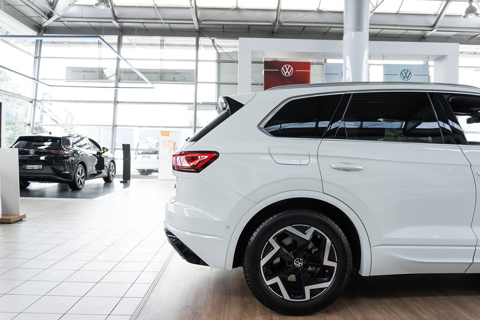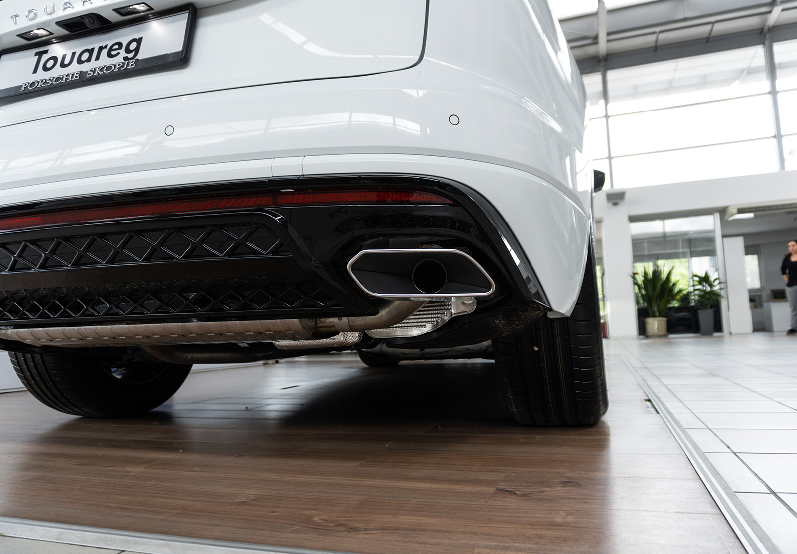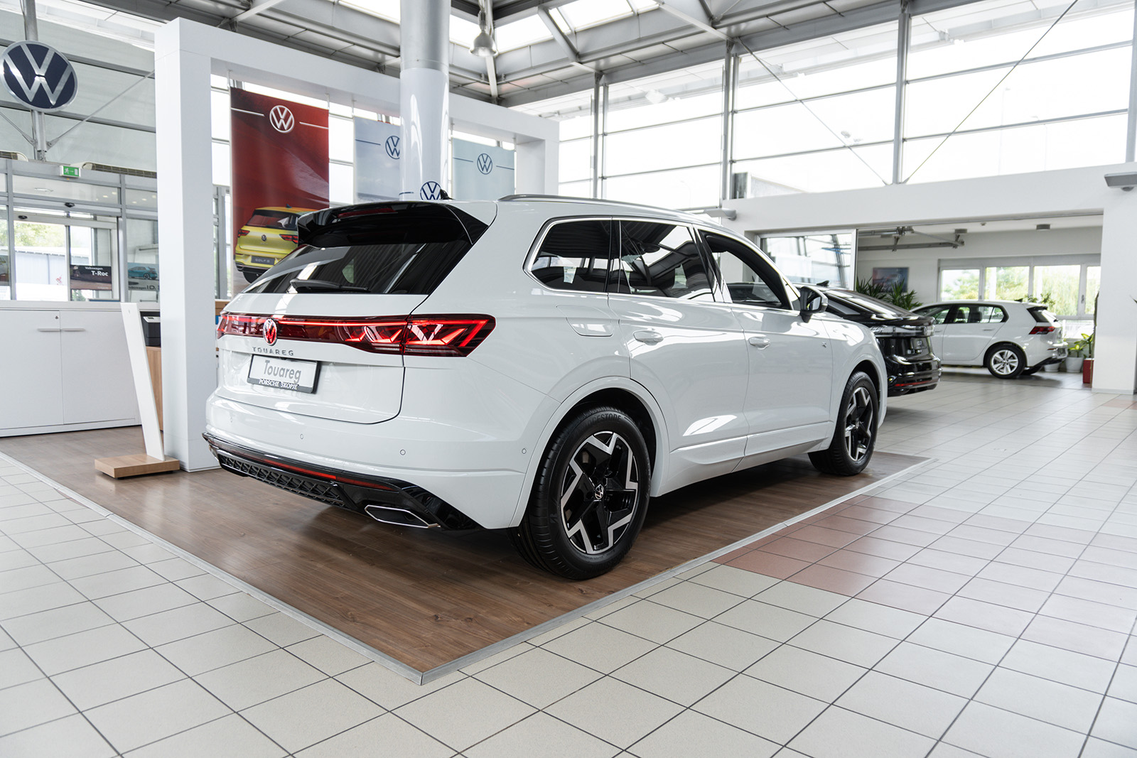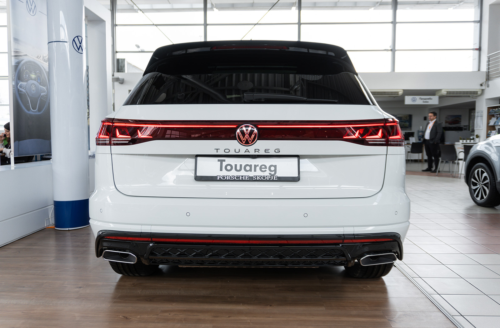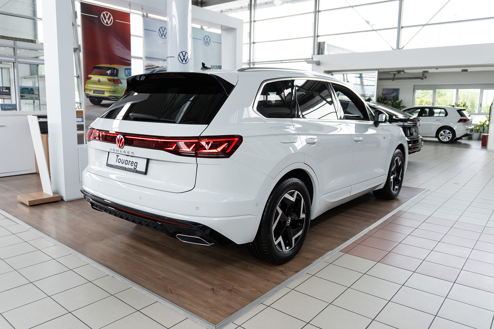 Слични промени може да се најдат и на задната страна, каде што светлата (со нов светлосен потпис) се комбинирани со LED лента и осветлено лого на брендот. И овде наоѓаме променет браник и минимално изменети леќи. Во крилата на тркалата, дебитираат нови дизајни на тркала од 19 до 21 инчи во стандардните верзии. Спортскиот Volkswagen Touareg R добива алуминиумски тркала од 22 инчи.