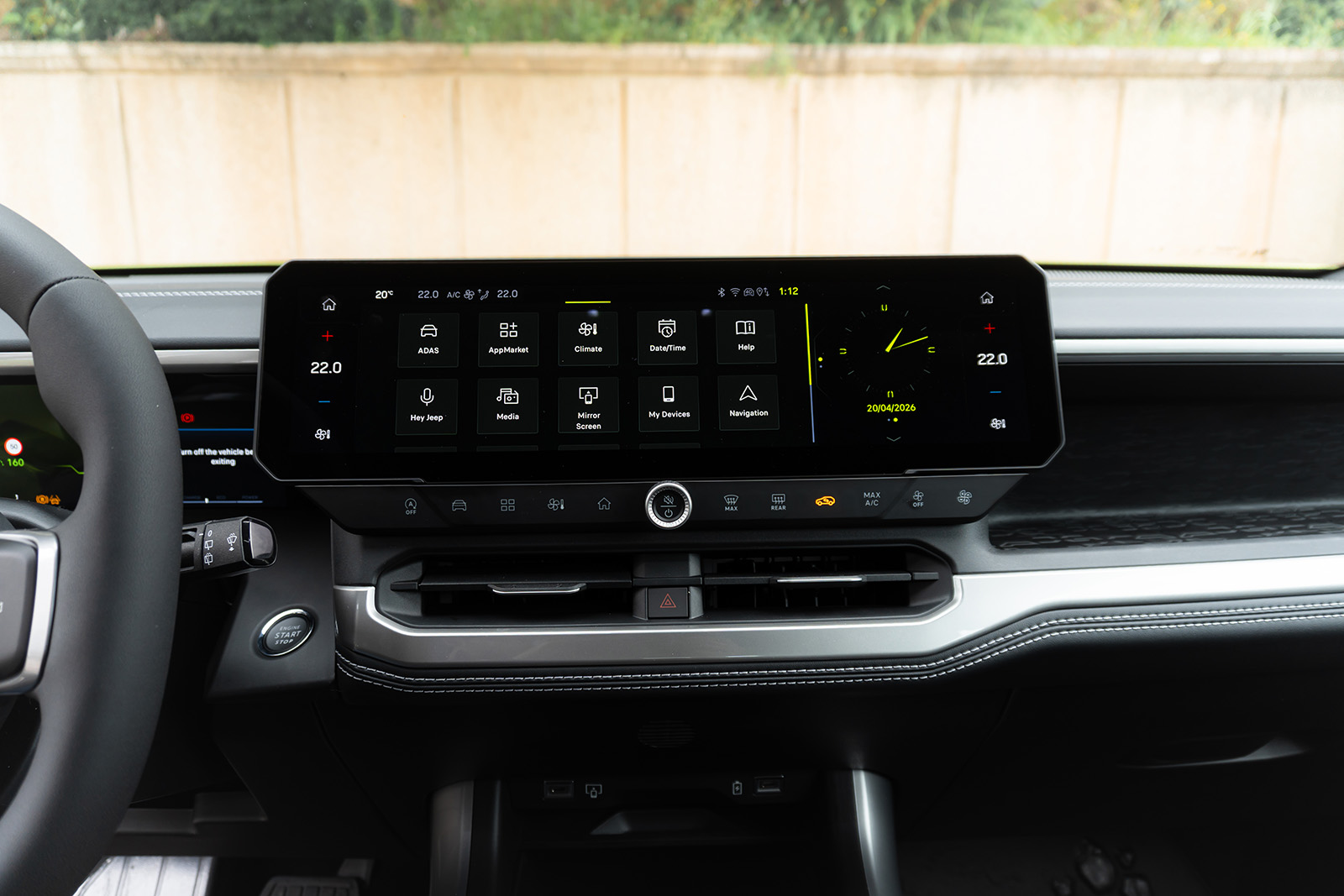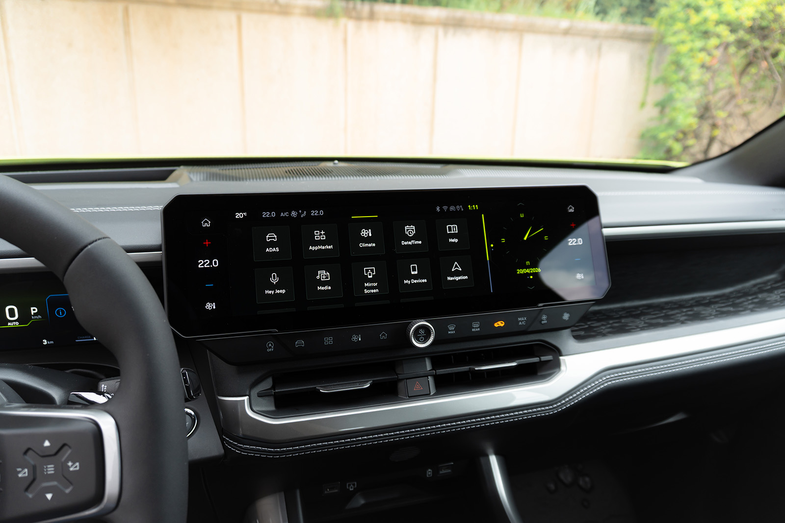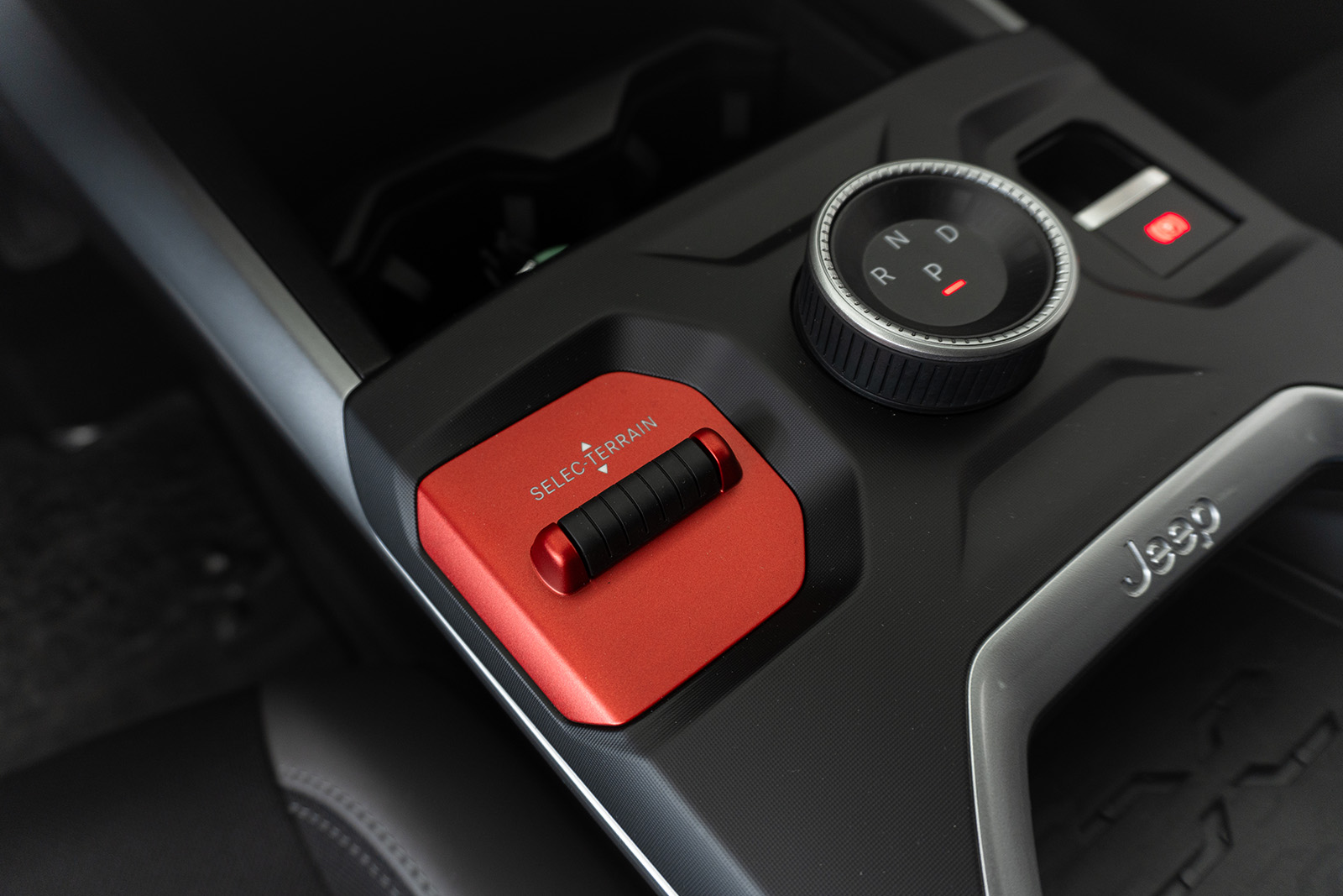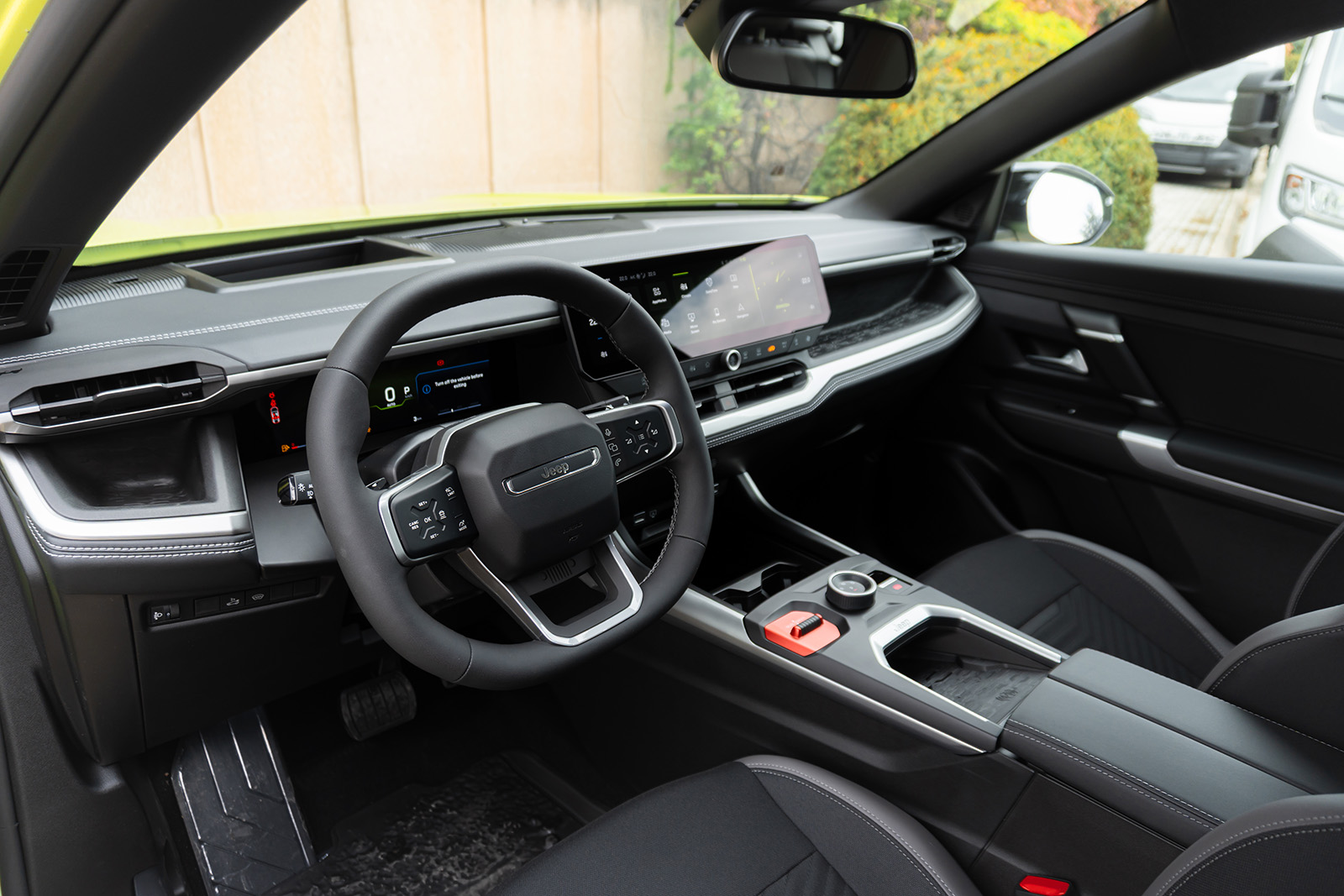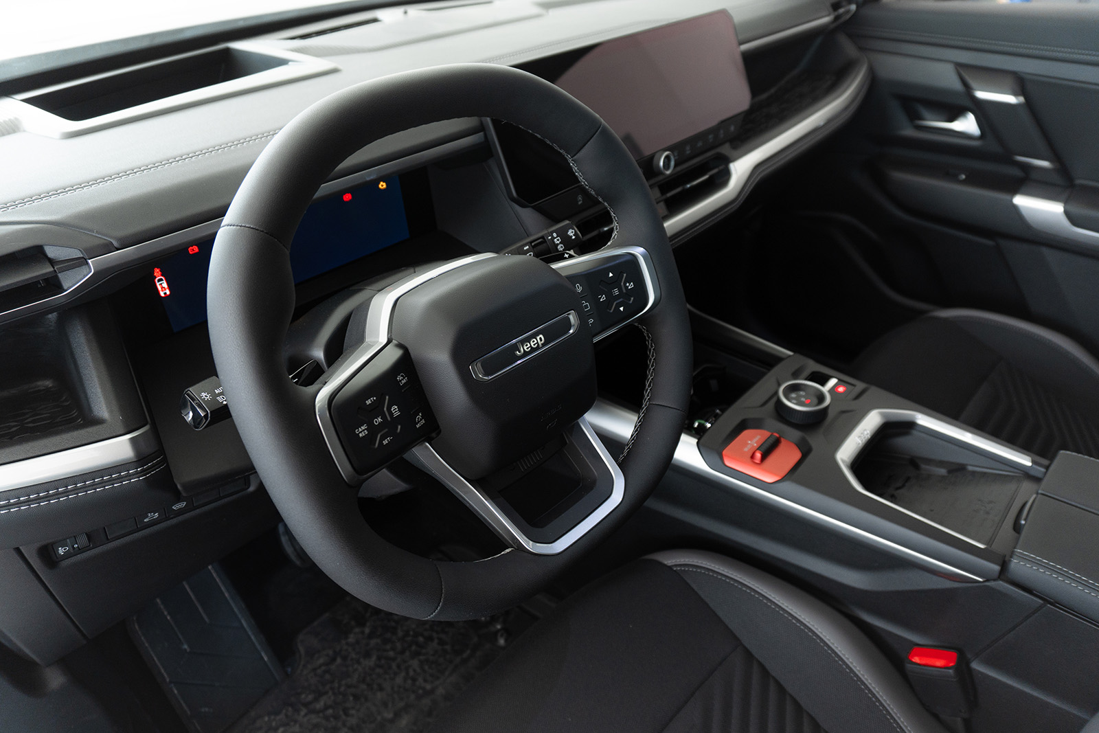 Внатрешноста исто така изгледа добро. Jeep и Stellantis конечно ги послушаа гласовите на оние што се жалеа на прекумерното обединување на копчињата и прекинувачите. На пример, тука, селекторот на насока и другите копчиња се визуелно прилагодени на карактерот на брендот. Мала работа, но го прави ентериерот да се издвојува. Екранот за инструментите е 10 инчи и се наоѓа во линијата на контролната табла, зад воланот. Мултимедијалниот дисплеј, панорамски, е 16 инчи.