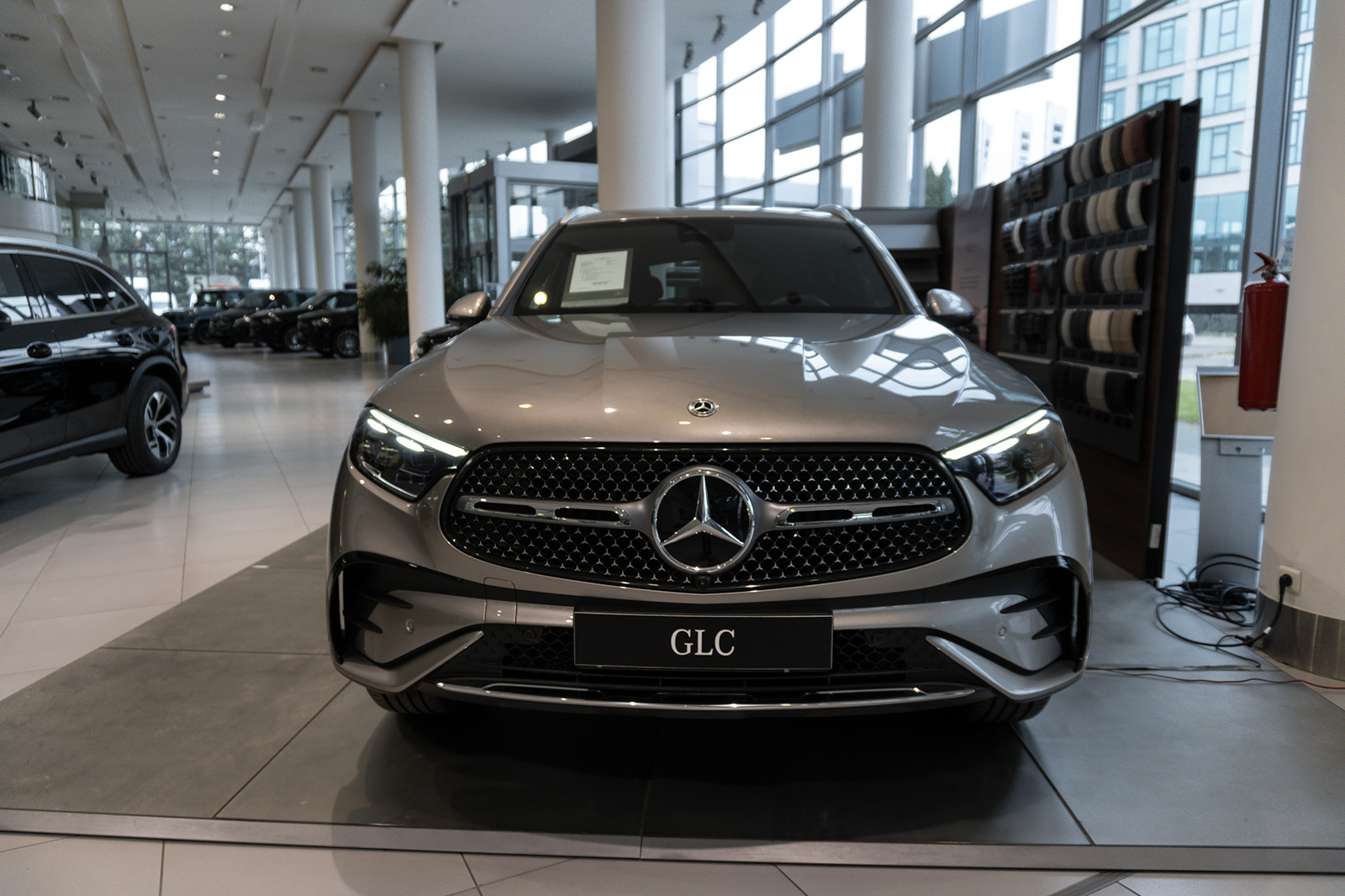 Конкретните модели од фотографиите се GLC 300e – користат 2.0-литарски бензински мотор спарен со електромотор и батерија за вкупна системска моќност од 313 коњски сили и 550 Nm вртежен момент. Забрзувањето од 0 до 100 км/ч трае 6.7 секунди додека максималната брзина изнесува 218 км/ч.