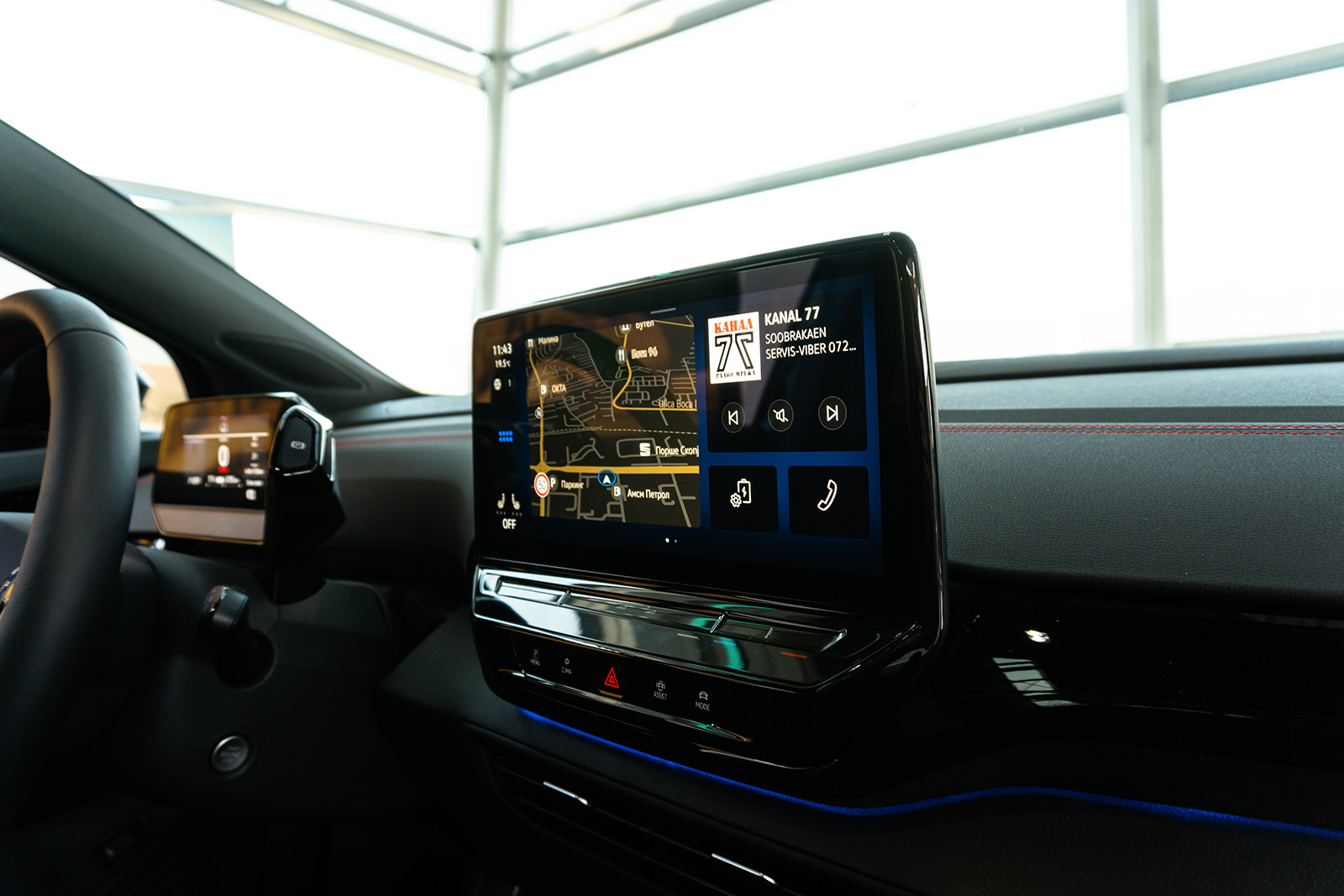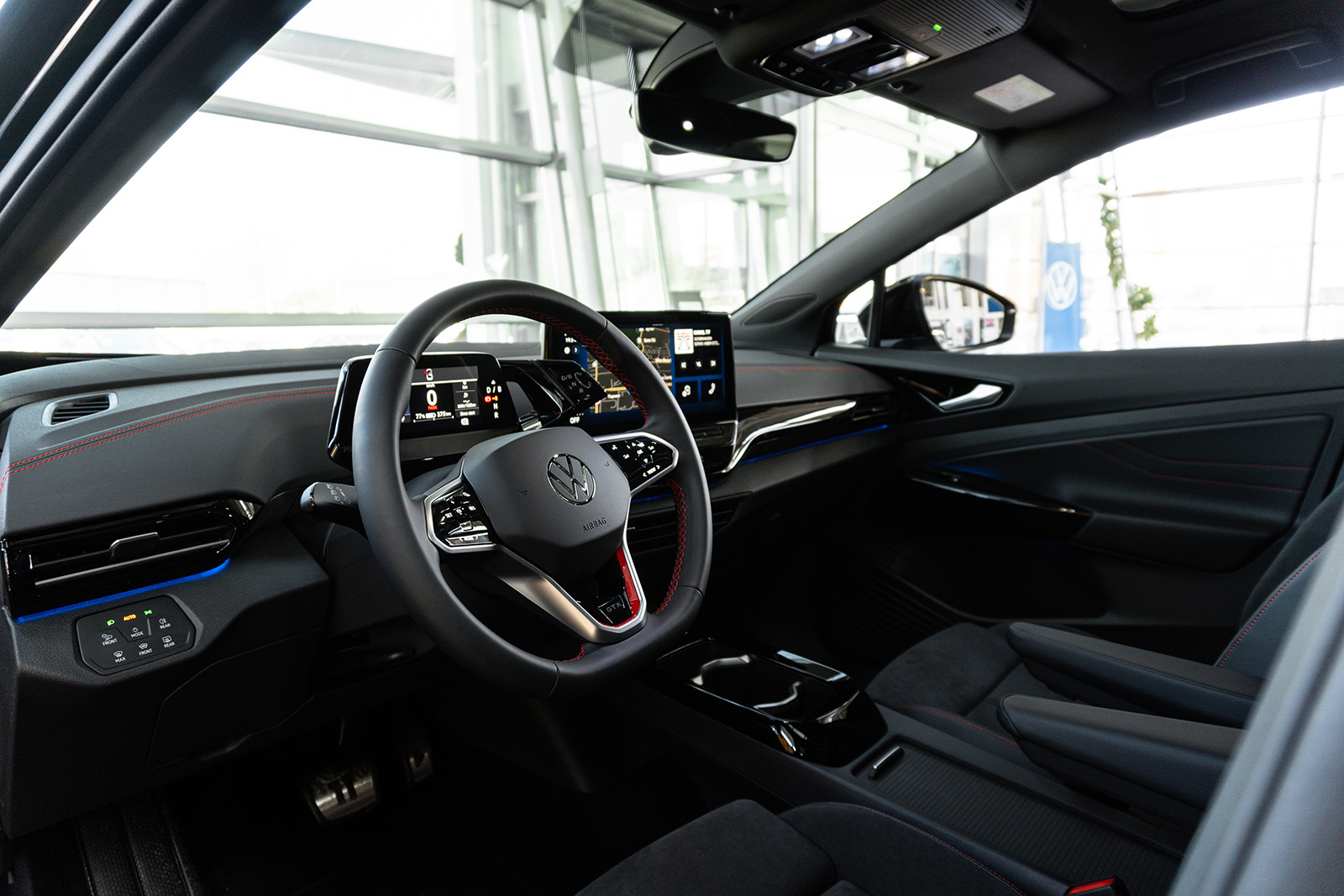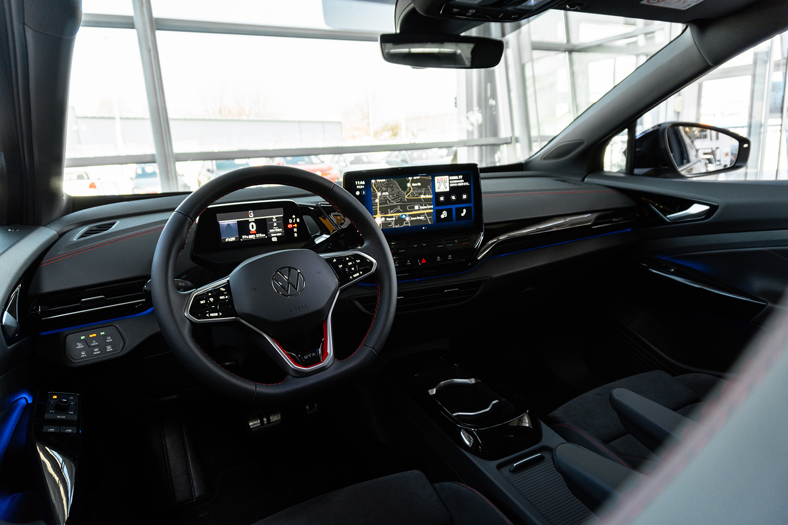 Внатрешноста е непроменета во однос на ID.4, тоа е точно истиот кокпит со истите опции. Пред возачот се наоѓа мала инструмент табла, а на централната конзола е 10-инчен екран за инфозабавниот систем. Бидејќи конкретниот модел од фотографиите е спортската GTX верзија, добива дополнителни промени во кабинатата. Тука се прекрасните спортски седишта, голем дел од местата во кабината се обложени со алкантара и црвени контрастни шевови. Логото GTX може да се забележи и на воланот и на праговите од вратите.