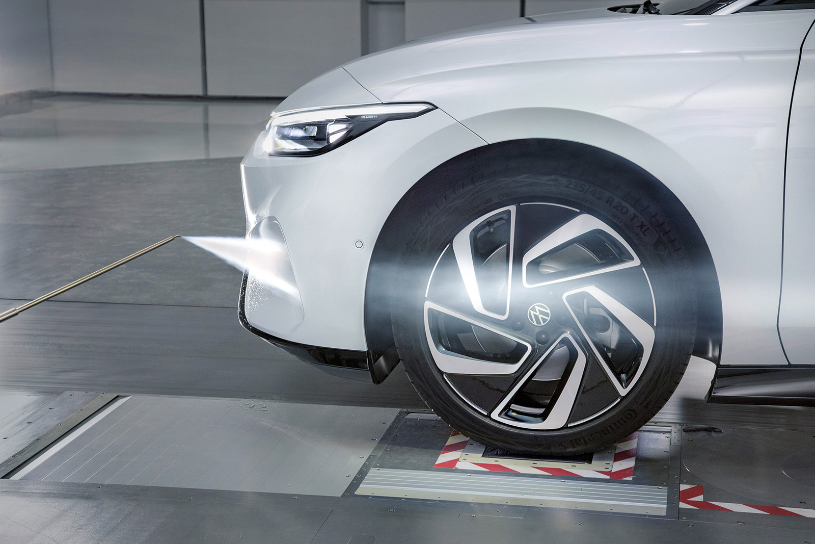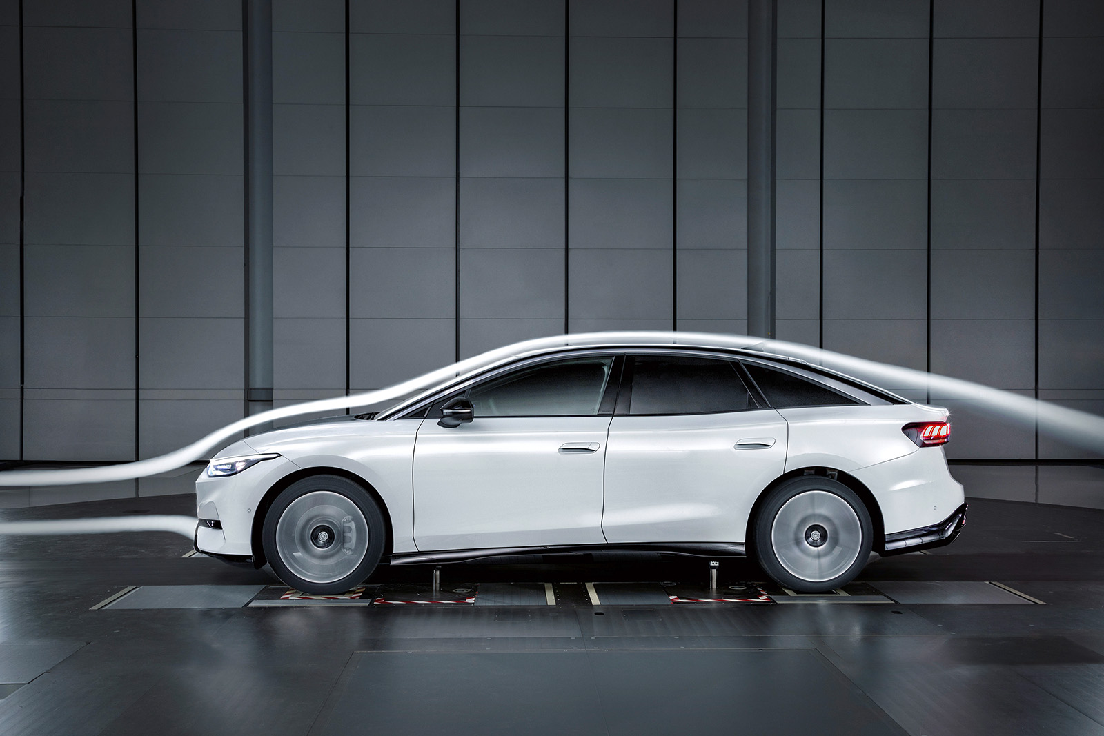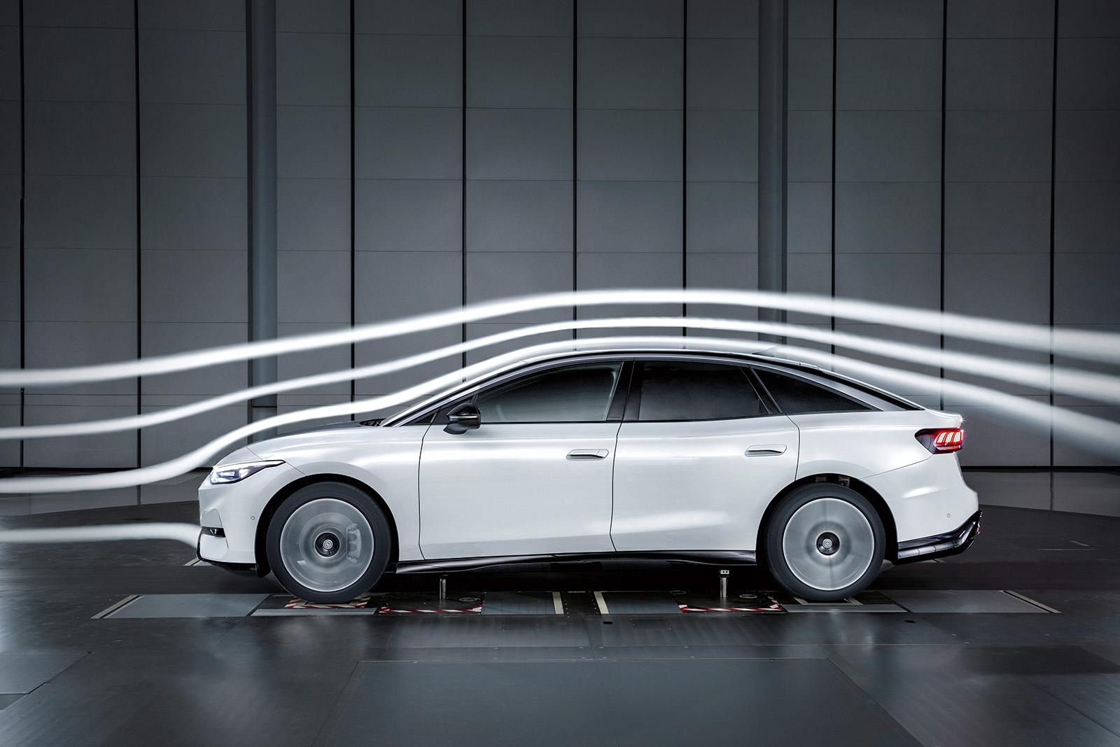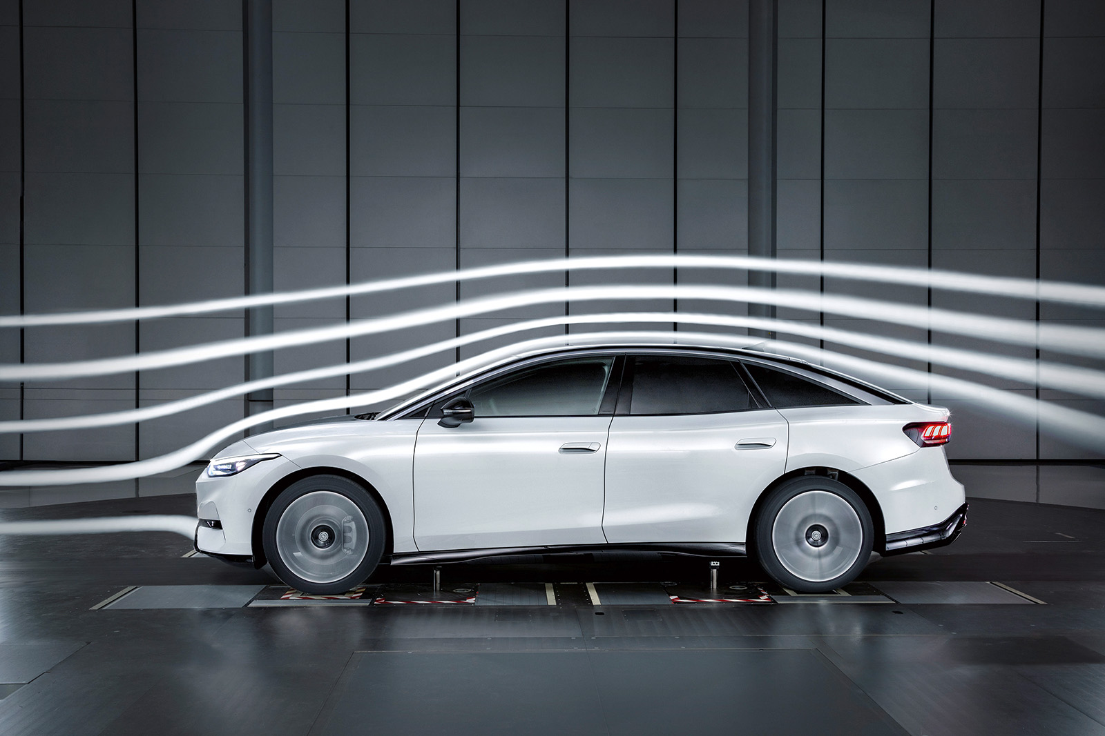 Почетниот фокус е на компјутерски симулации. „Работата се одвива практично само во првата година од развојот, со ажурирања на секои две недели“, вели Лансман. Дизајнерскиот тим обезбедува податоци CAD (Computer-Aided Design). Неколку илјади процесори потоа ги пресметуваат вредностите на протокот на воздух, исто така и за бројни детали како што се рачките на вратите со слеана форма и аеродинамично дизајнираните ретровизори на ID.7. „Ние влегуваме во воздушниот тунел само кога дизајнот е стабилен. Тоа може да потрае една и пол година од почетокот на развојот“, вели развојниот инженер.