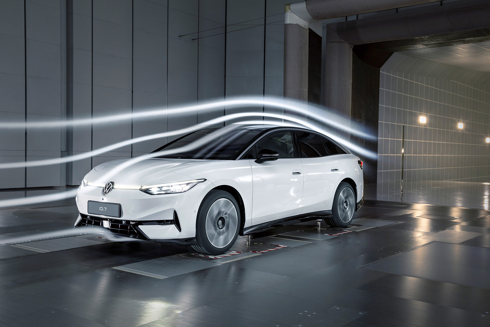 ID.7 е првиот електричен модел од Volkswagen за високата средна класа. Со досег до 700 километри (WLTP), оваа лимузина на Volkswagen е шампион во ефикасноста. Покрај погонот од новата генерација, софистицираната аеродинамика придонесува за долгите дострели на ID.7. Аеродинамичната поволна основна форма, нискиот коефициент на отпор (вредност Cd) од 0,23 и челната површина од 2,46 квадратни метри се резултат на блиската соработка помеѓу секторите за дизајн и развој.
