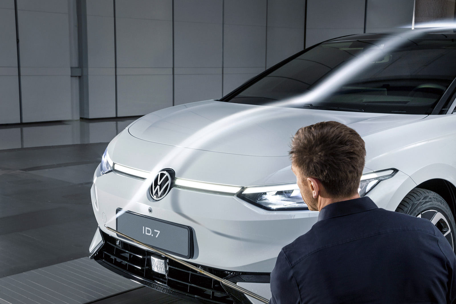 Уште во раните фази на развојот на производот, интензивно се работеше на надворешниот дизајн, како и на подвозјето, тркалата и други фини детали. Предуслов за оптимални резултати е тесната соработка помеѓу програмерите и дизајнерите. Стефан Лансман, проектен инженер одговорен за аеродинамиката на ID.7: „Ние се стремиме кон идеални решенија во итеративен процес, кој вклучува редовни консултации помеѓу одделите за развој и дизајн. Тука има многу мали чекори кои на крајот се исплатат. Бројни компјутерски симулации за пресметка на протокот на воздух се надополнети со тестови во воздушен тунел, како дел од овој процес.