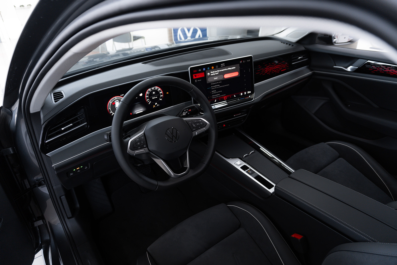 Откако ќе ја отворите вратата, ќе видите едноставен и не многу откривачки ентериер. Концептот на кокпитот овде е комбинација на идеи од Volkswagen Golf и ID.7. На контролната табла владее голем екран од 13 или 15 инчи (во зависност од верзијата), а зад воланот се кријат дигитални инструменти. Бројот на копчиња е сведен на минимум и изненадувачки, тактилните прекинувачи не се напуштени.