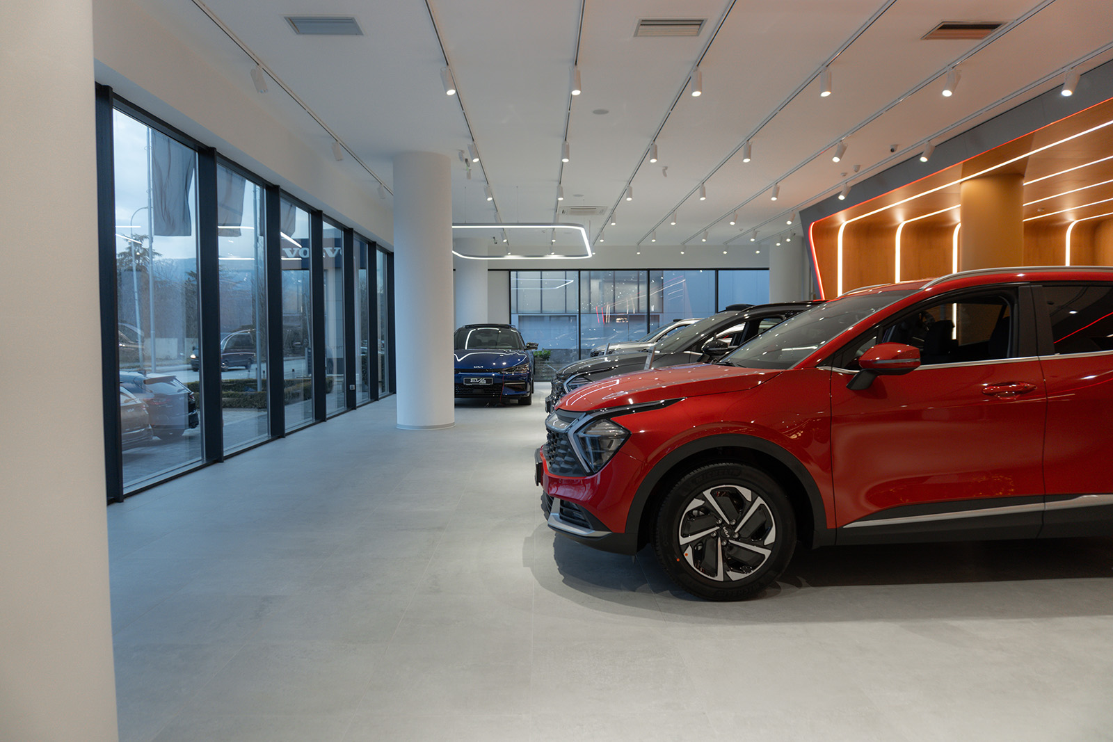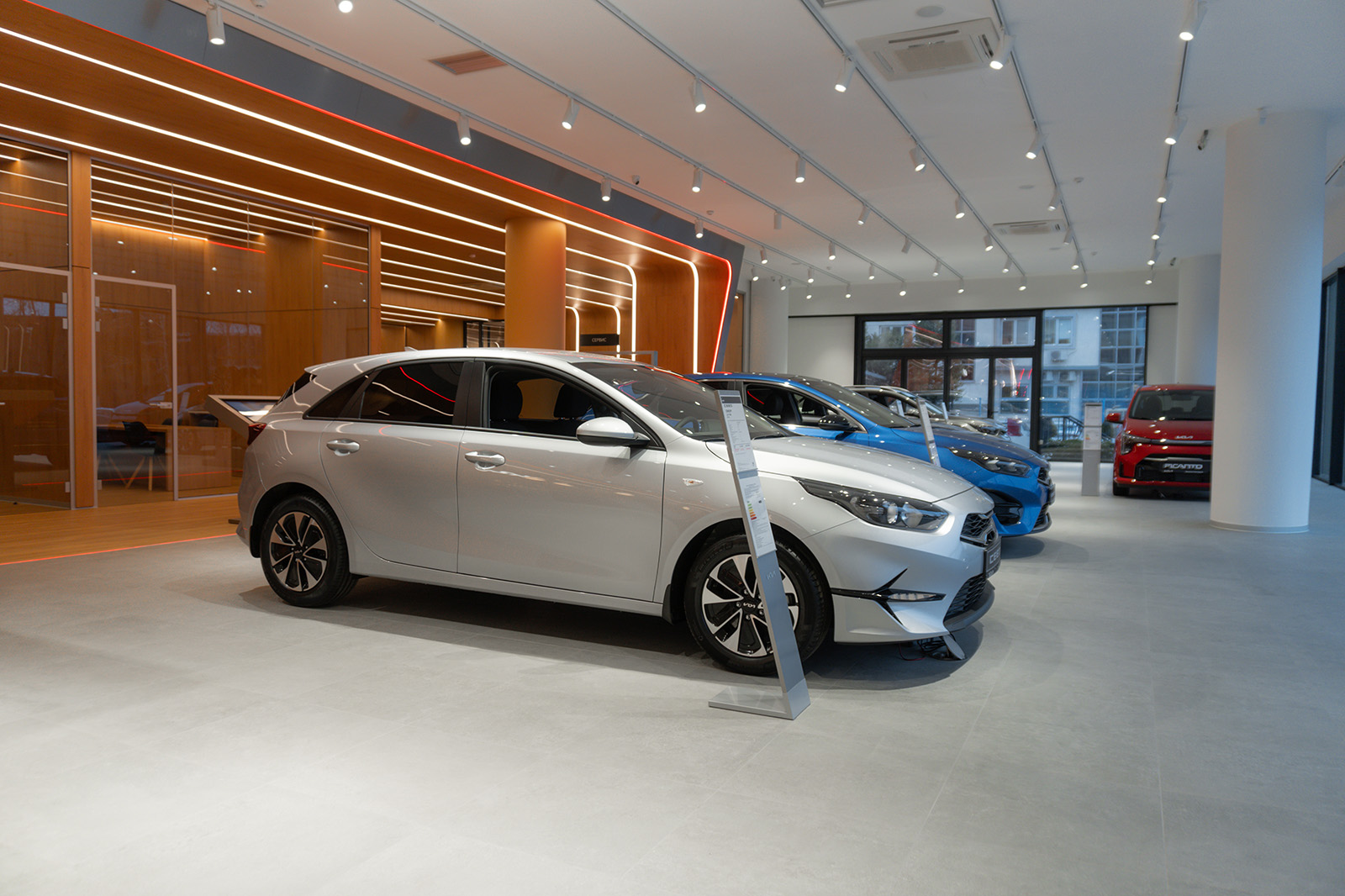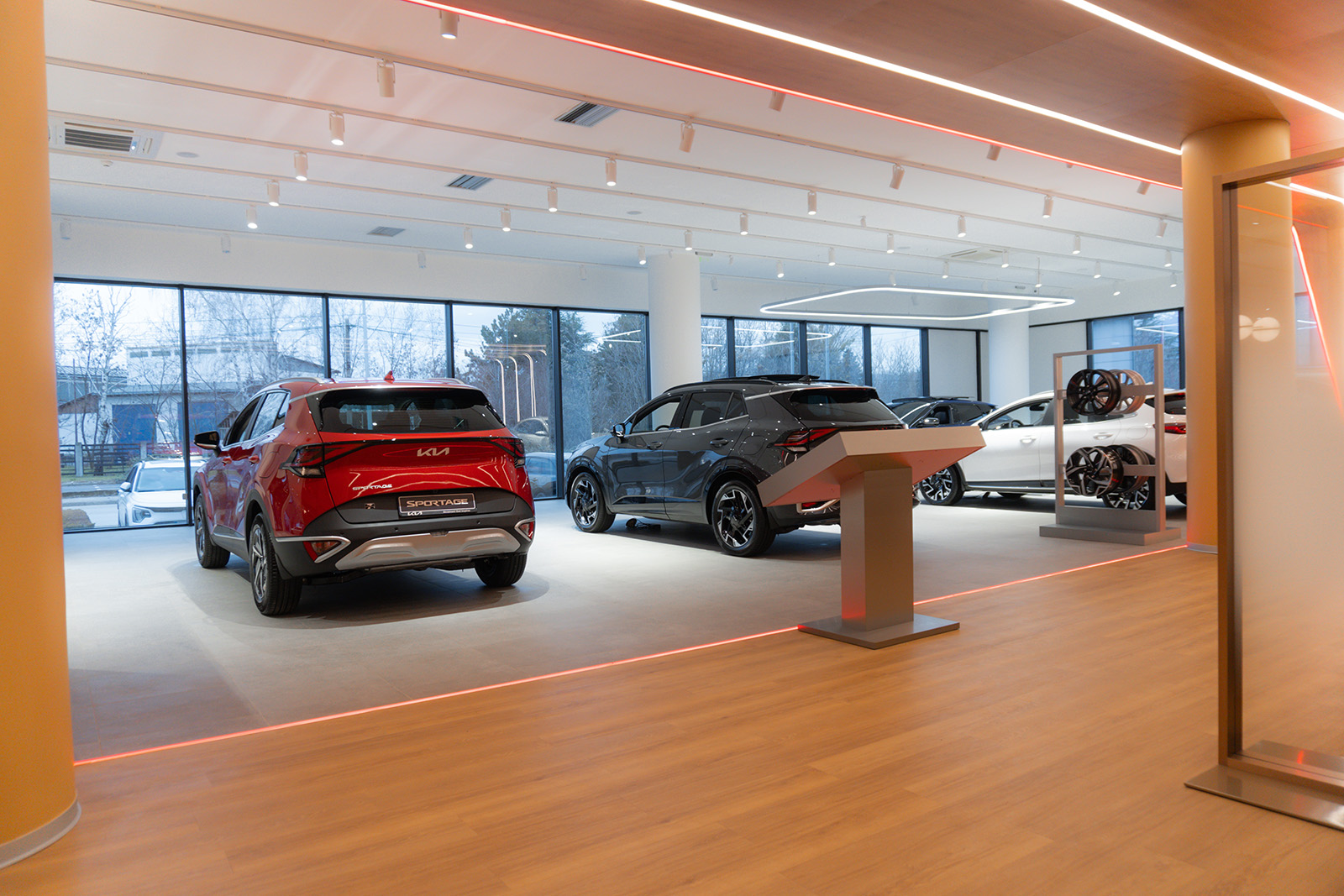 Со отворањето на овој нов објект, KIA не само што одговара на најновите стандарди кои се поставени од принципалот, туку покажува дека е и меѓу лидерите на македонскиот пазар во однос на продажба и грижа за своите клиенти. Внатрешниот дизајн на салонот е со модерен и импресивен стил, а изложени се вкупно 10 автомобили. Исто така, новиот салон добива и специјален „delivery room“, посебно место за да се напиете кафе додека чекате вашиот автомобил да заврши со сервис, посебно место со голем број на аксесоари од брендот и неколку други елементи кои го издвојуваат овој салон од другите.