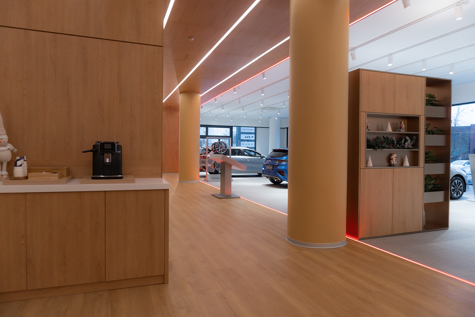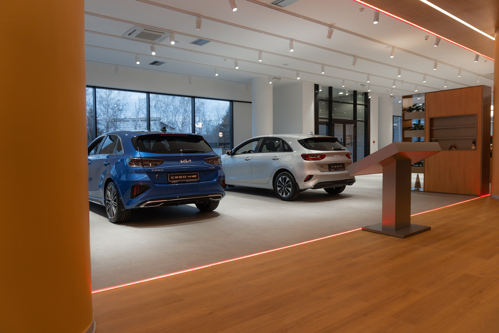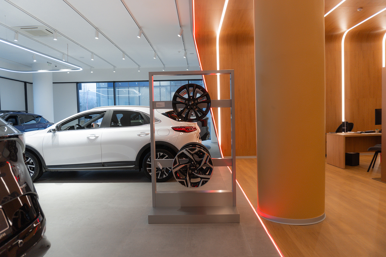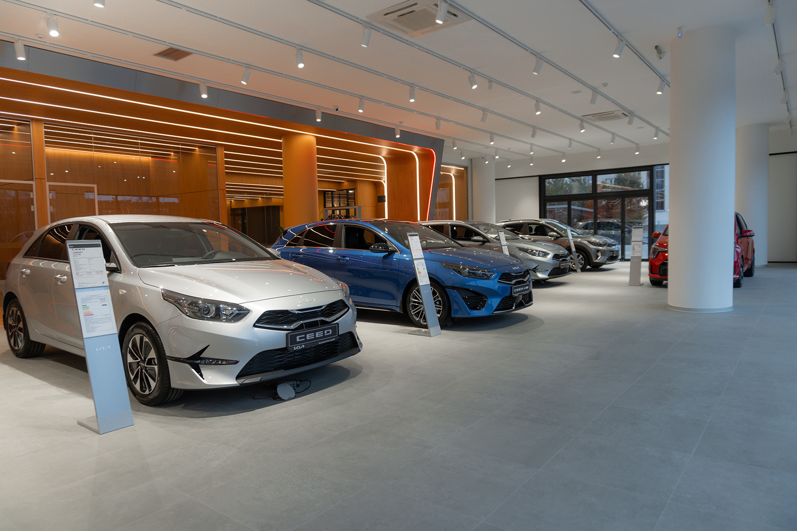Со отворањето на овој нов објект, KIA не само што одговара на најновите стандарди кои се поставени од принципалот, туку покажува дека е и меѓу лидерите на македонскиот пазар во однос на продажба и грижа за своите клиенти. Внатрешниот дизајн на салонот е со модерен и импресивен стил, а изложени се вкупно 10 автомобили. Исто така, новиот салон добива и специјален „delivery room“, посебно место за да се напиете кафе додека чекате вашиот автомобил да заврши со сервис, посебно место со голем број на аксесоари од брендот и неколку други елементи кои го издвојуваат овој салон од другите.