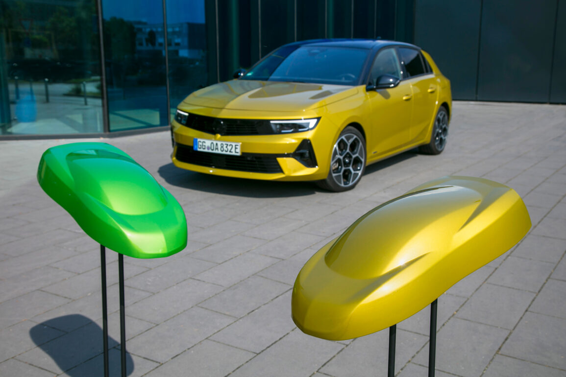Процесот на развој на нова боја за нов модел, може да потрае и до четири години, а финализираната нова боја мора да биде „подготвена за прскање“ од роботи, 12 месеци пред почетокот на производството. „Жолтата што ја избравме како боја за лансирање на новата Astra на почетокот на процесот се покажа како добар погодок“, вели Nicole Heidt.„Таквите бои се навистина во тренд сега“.