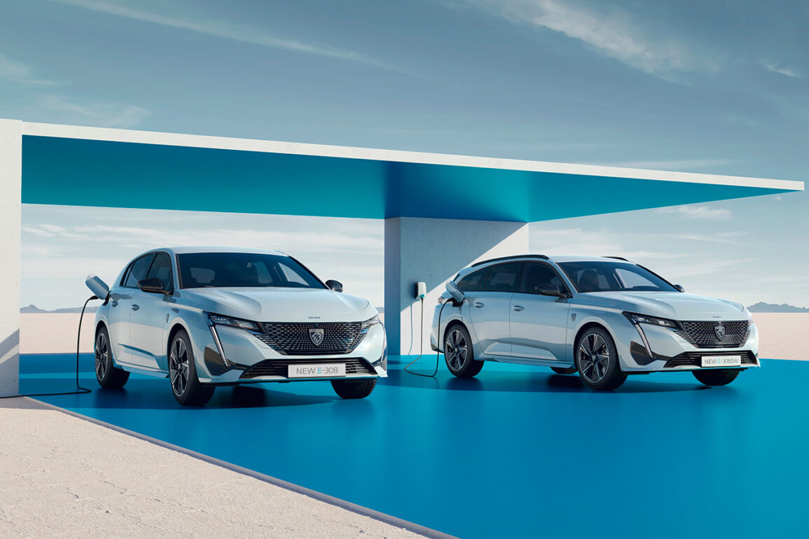 Веќе достапни во електрифицирани plug-in хибридни верзии, хечбек и караван изведбите на новиот 308 ќе бидат достапни и во 100% електрична верзија од 2023 година. Peugeot ќе биде првиот европски производител кој ќе понуди 100% електричен караван. Електричните 308 и 308 SW ќе бидат придвижувани од сосема нов електричен мотор, кој развива 156 коњски сили и нуди опсег од над 400 километри (според WLTP) во зависност од нивото на опремата. Оваа двојна понуда е одговор без компромиси, совршено прилагоден на потребите на клиентите од C-сегментот. Уникатниот изглед на 308 е комбиниран со уживањето во возењето карактеристично за моделите на Peugeot. Достапни во нивоата на опременост Allure и GT, новите Peugeot E-308 и E-308 SW ќе пристигнат на пазарот последователно во средината на 2023 година.