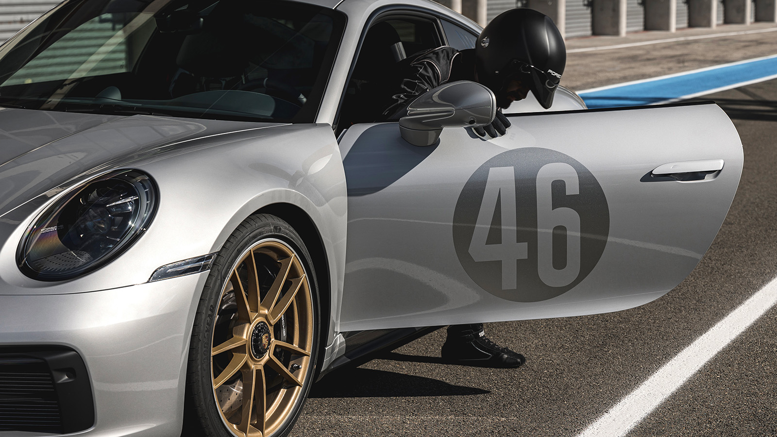 Фабриката на Porsche, која се занимава со индивидуални проекти, разви нова боја за овој автомобил. Наречено е „изненадување изненадување“ – Le Mans Silver и е референца за сировиот лим во 356 SL. Задните мали прозори овде се покриени со „доводи за воздух“, кои пак се знак на моделот 911 GT1. Бандажите се обоени во златна боја, а на вратите стои бројот 46 – ист како кај Porsche 356 SL. Се разбира, тука има и неколку дополнителни комеморативни ознаки.