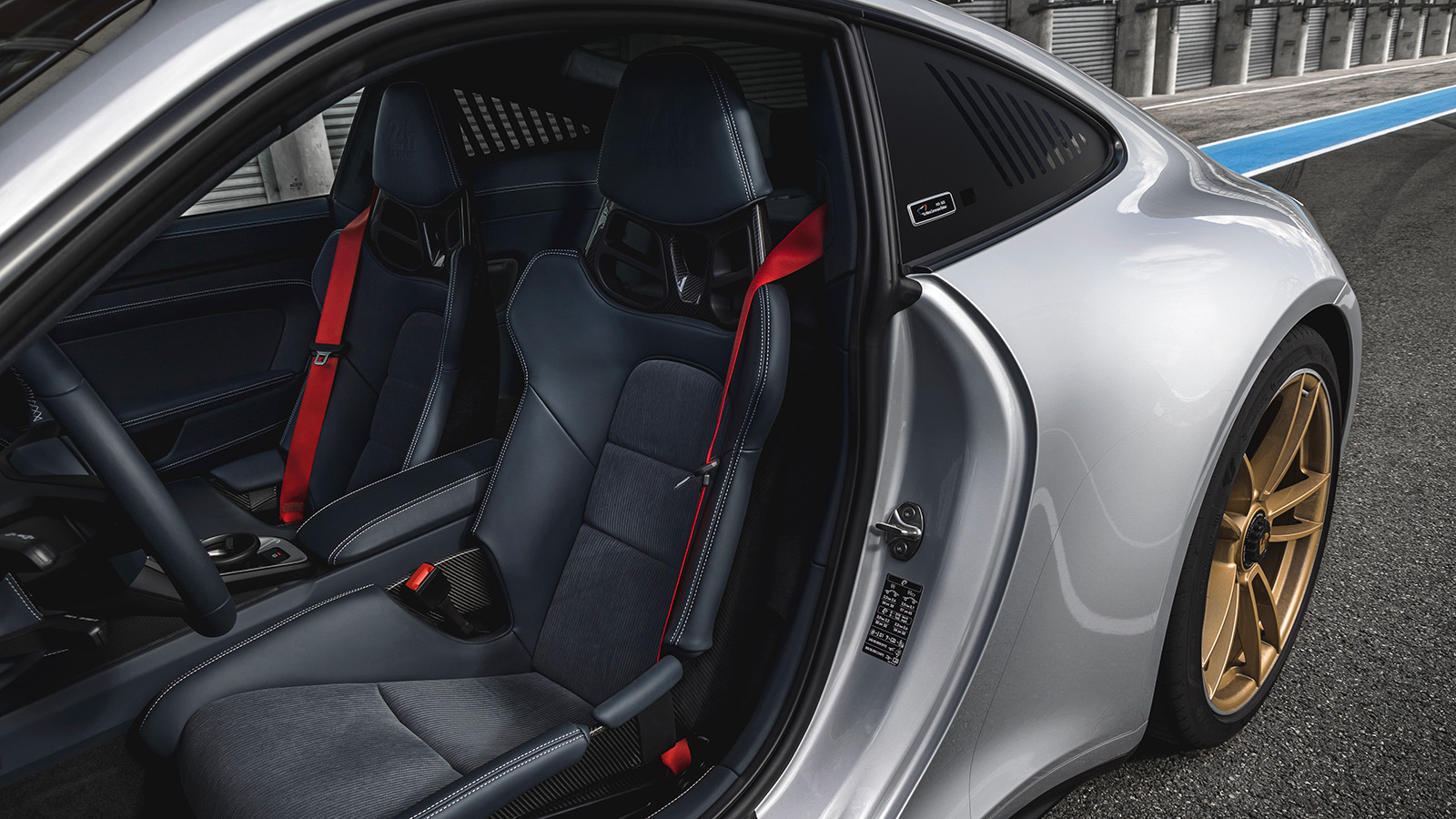Во кабината наоѓаме сина кожа, која е комбинирана со црвени безбедносни појаси. Наслонот за раце е врежан со Circuit de la Sarthe, а пред патникот има и комеморативна плоча со број.