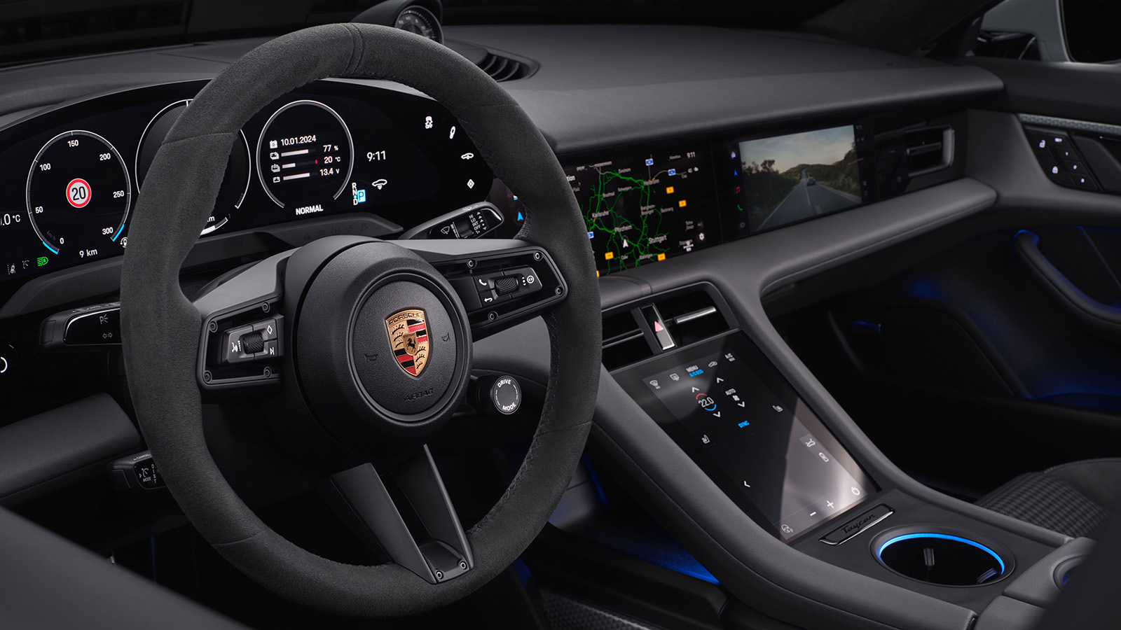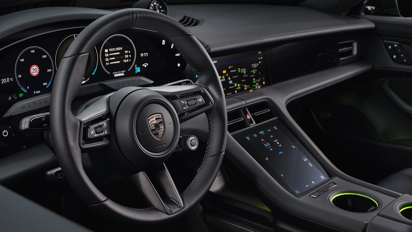 Комбинираната табла со инструменти, централниот дисплеј и опционалниот екран за совозачот имаат оптимизиран кориснички интерфејс со дополнителни функции. Прекинувачот за режим на возење на воланот сега е дел од стандардната опрема. Моделите на Taycan опремени со пакетот Sport Chrono и Performance Battery Plus имаат специјално копче push-to-pass.