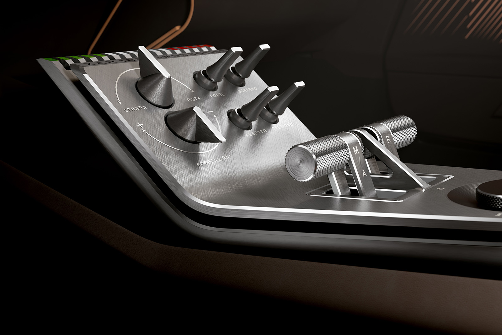 Како и во авионската пилотска кабина, контролите се наоѓаат на различни нивоа, во ниската централна конзола и на повисока рамнина, инсталирани во централната обвивка од внатрешната страна на покривот. Контролната табла и централниот тунел инспирирани од авијацијата користат материјали како алуминиум, јаглеродни влакна, кожа и алкантара. Обвивните седишта, обложени со Poltrona Frau кожа – ги реинтерпретираат оние на претходникот, обезбедувајќи удобност и ергономија. Секој детал е дизајниран да создаде ексклузивна и привлечна средина, одржувајќи го естетското и техничкото наследство на 33 Stradale од 1967 година.