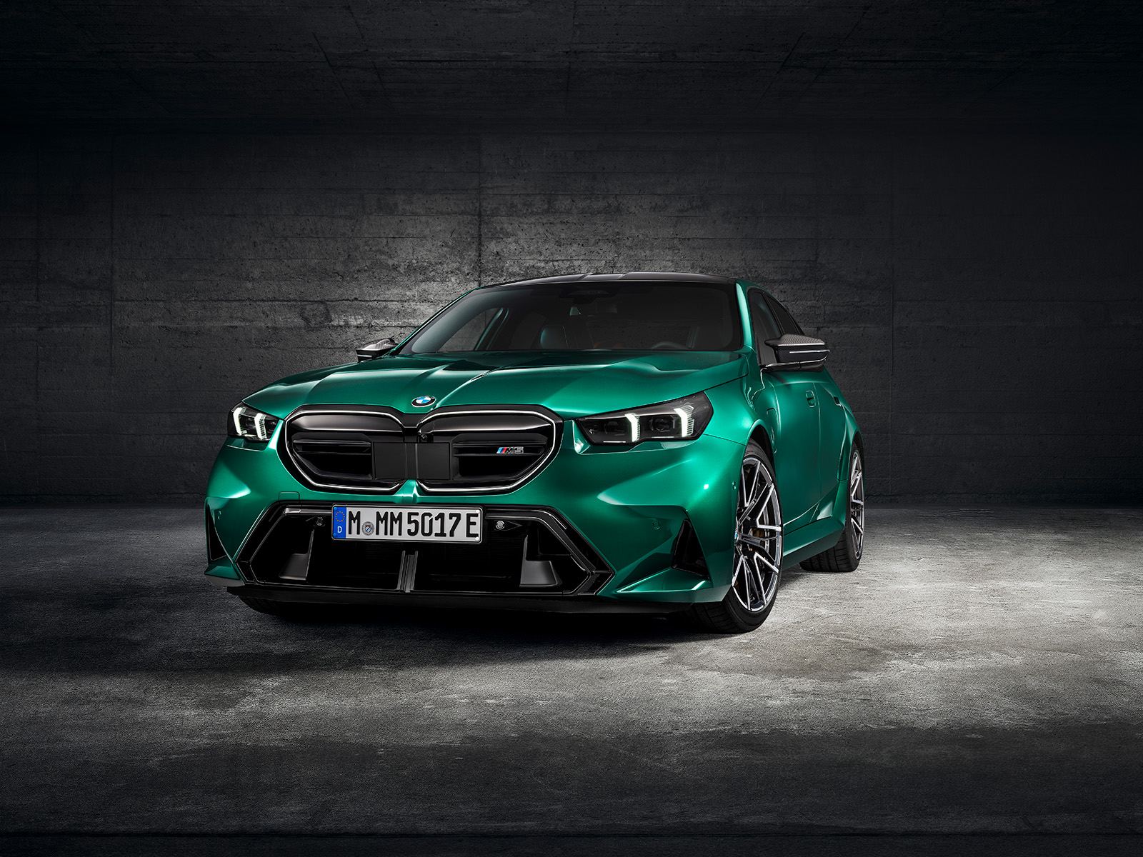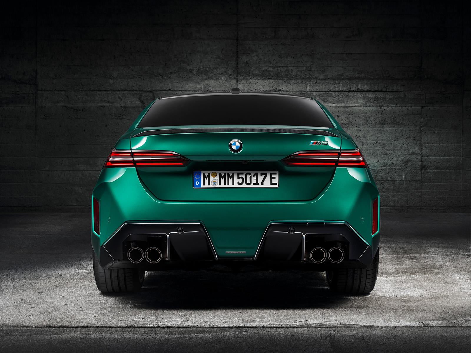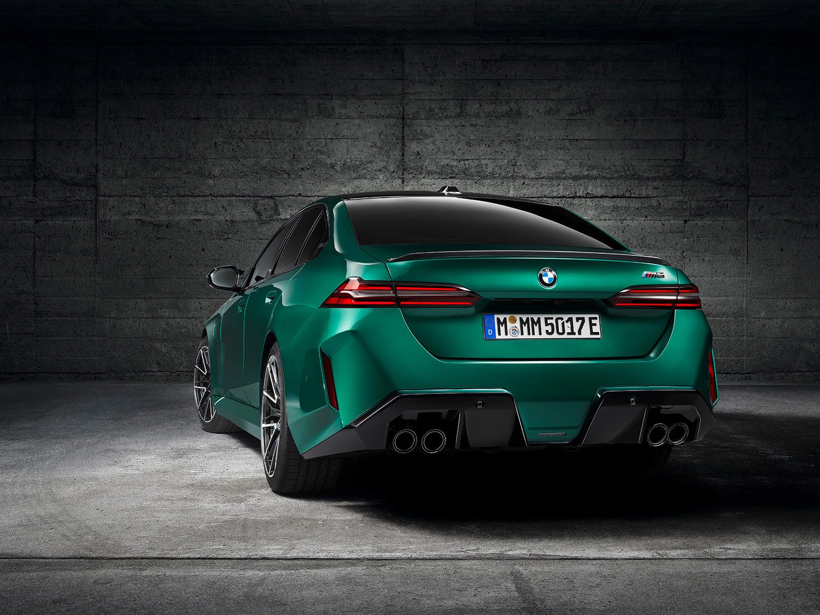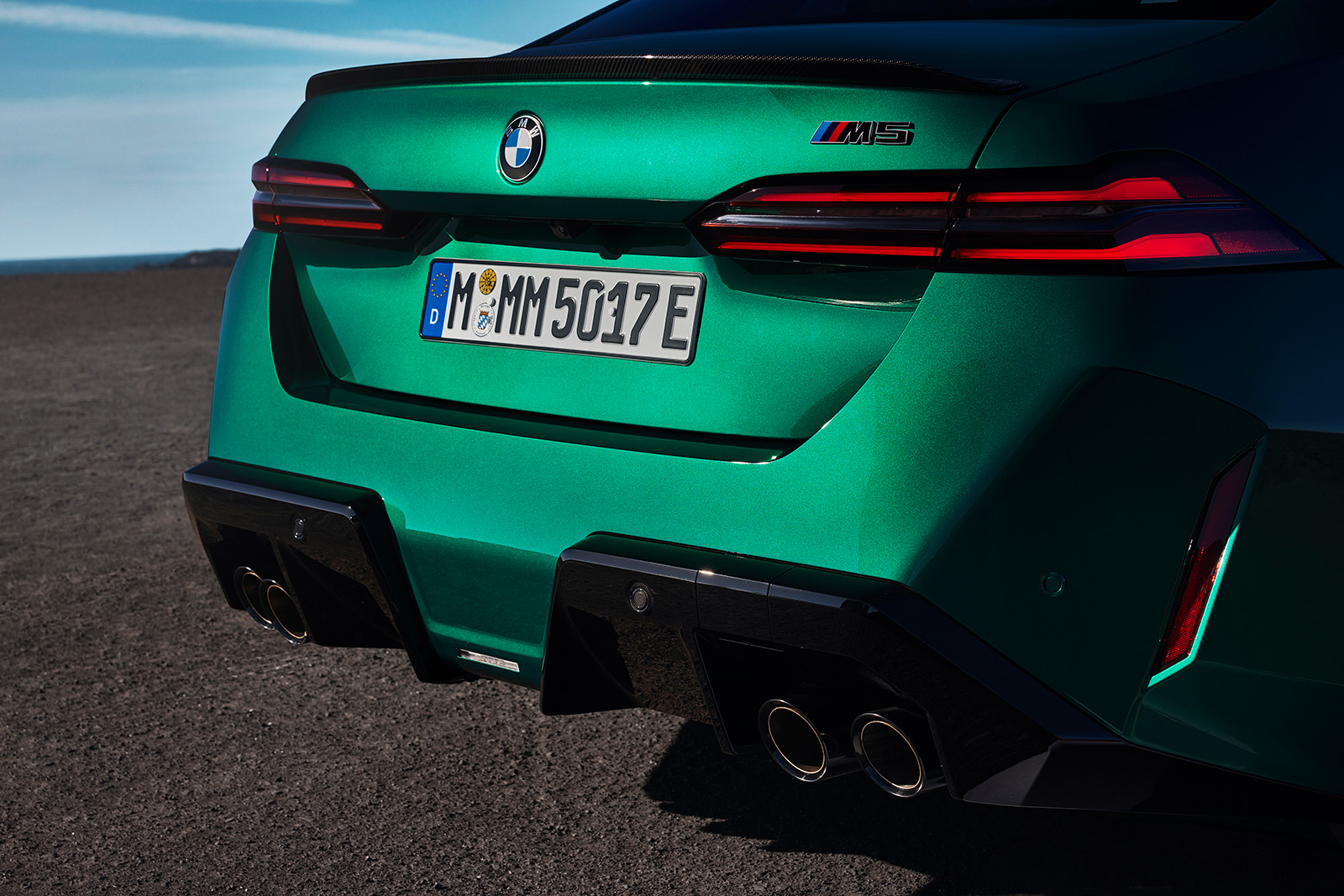 BMW M5 G90 од 2025 година, исто така, има мошне модифициран стил. Нема да го помешате со стандардната верзија. Она што го добиваме овде е значително проширена каросерија, со агресивно стилизирани браници. Предниот дел има борбен изглед, додека задниот дел е украсен со четири големи издувни завршетоци (по 100 мм во дијаметар). Новиот дизајн на бандажи оди одлично со каросеријата, а бојата „Isle of Man Green“, веќе позната од BMW M3, одлично одговара на овој автомобил.