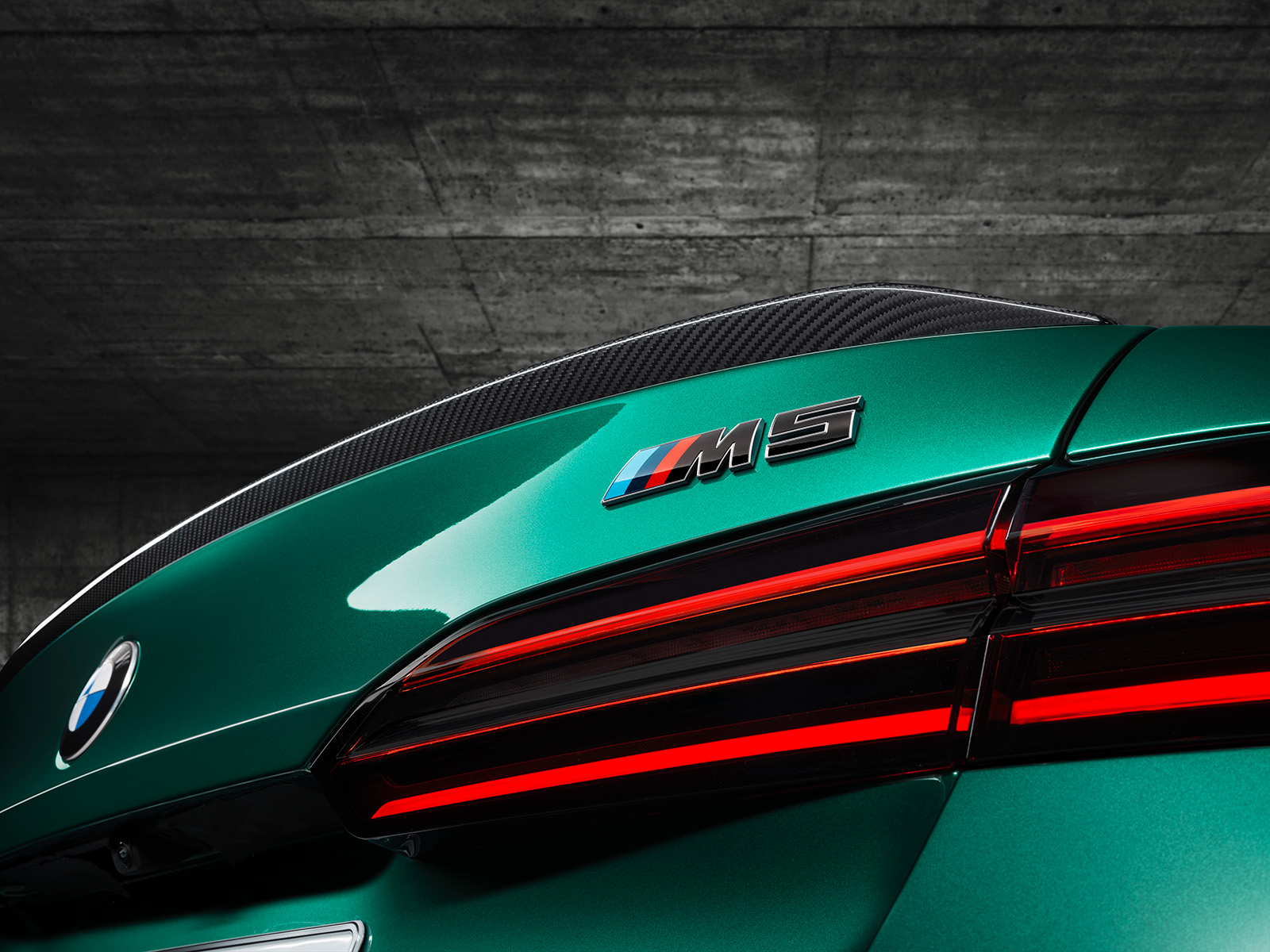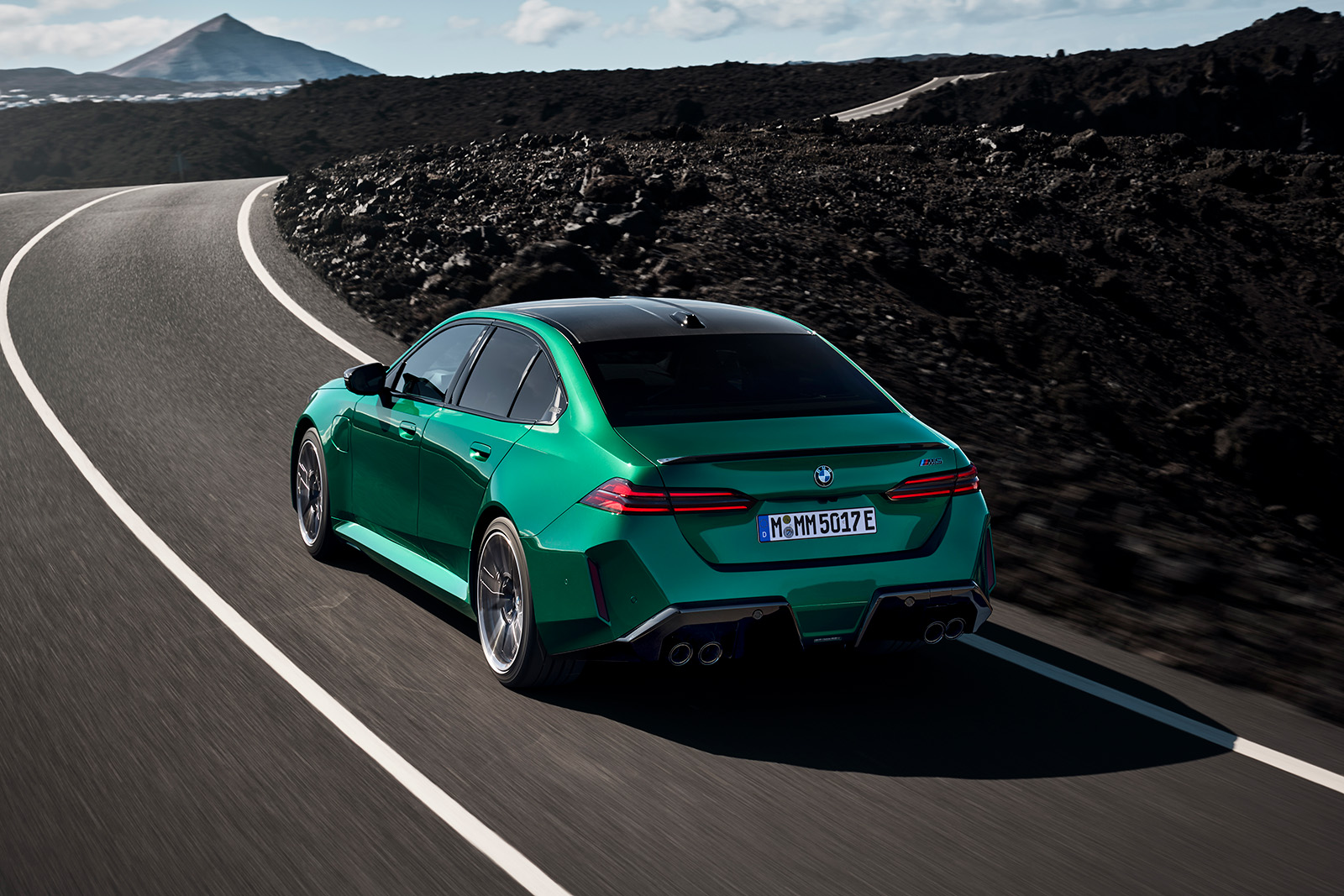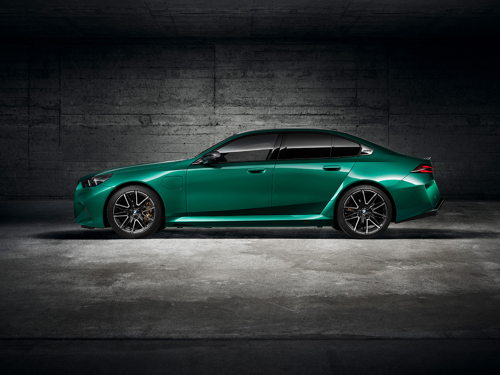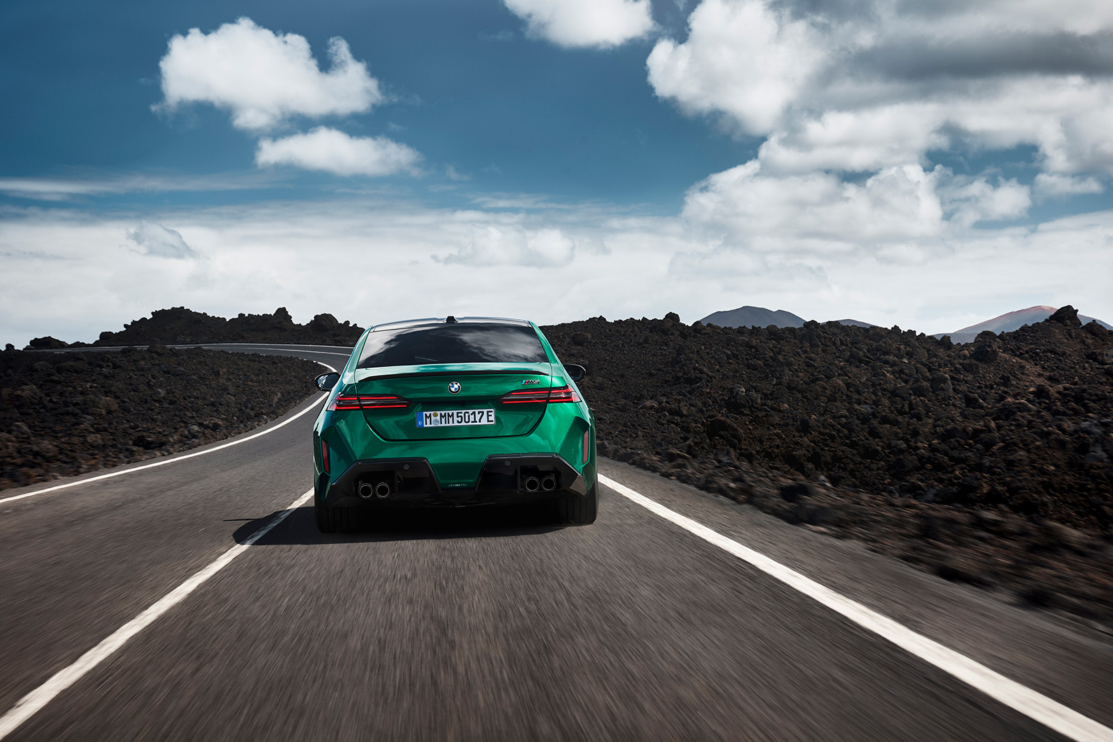 BMW M5 G90 од 2025 година, исто така, има мошне модифициран стил. Нема да го помешате со стандардната верзија. Она што го добиваме овде е значително проширена каросерија, со агресивно стилизирани браници. Предниот дел има борбен изглед, додека задниот дел е украсен со четири големи издувни завршетоци (по 100 мм во дијаметар). Новиот дизајн на бандажи оди одлично со каросеријата, а бојата „Isle of Man Green“, веќе позната од BMW M3, одлично одговара на овој автомобил.