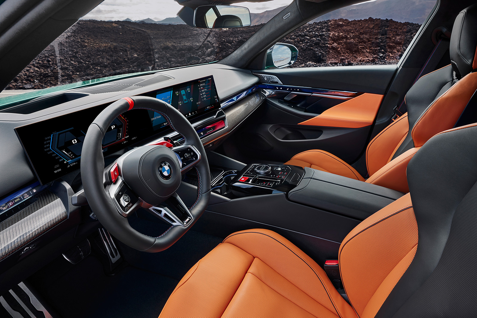Внатре има помалку промени. Покрај седиштата (иако сè уште се удобни), на воланот има црвени прекинувачи M1 и M2. Под нив можете да ги зачувате вашите сопствени поставки за автомобилот. Соодветни прекинувачи за контрола на поставките на погонот се исто така скриени до копчето iDrive. Црвената боја се појави и на копчето за стартување.