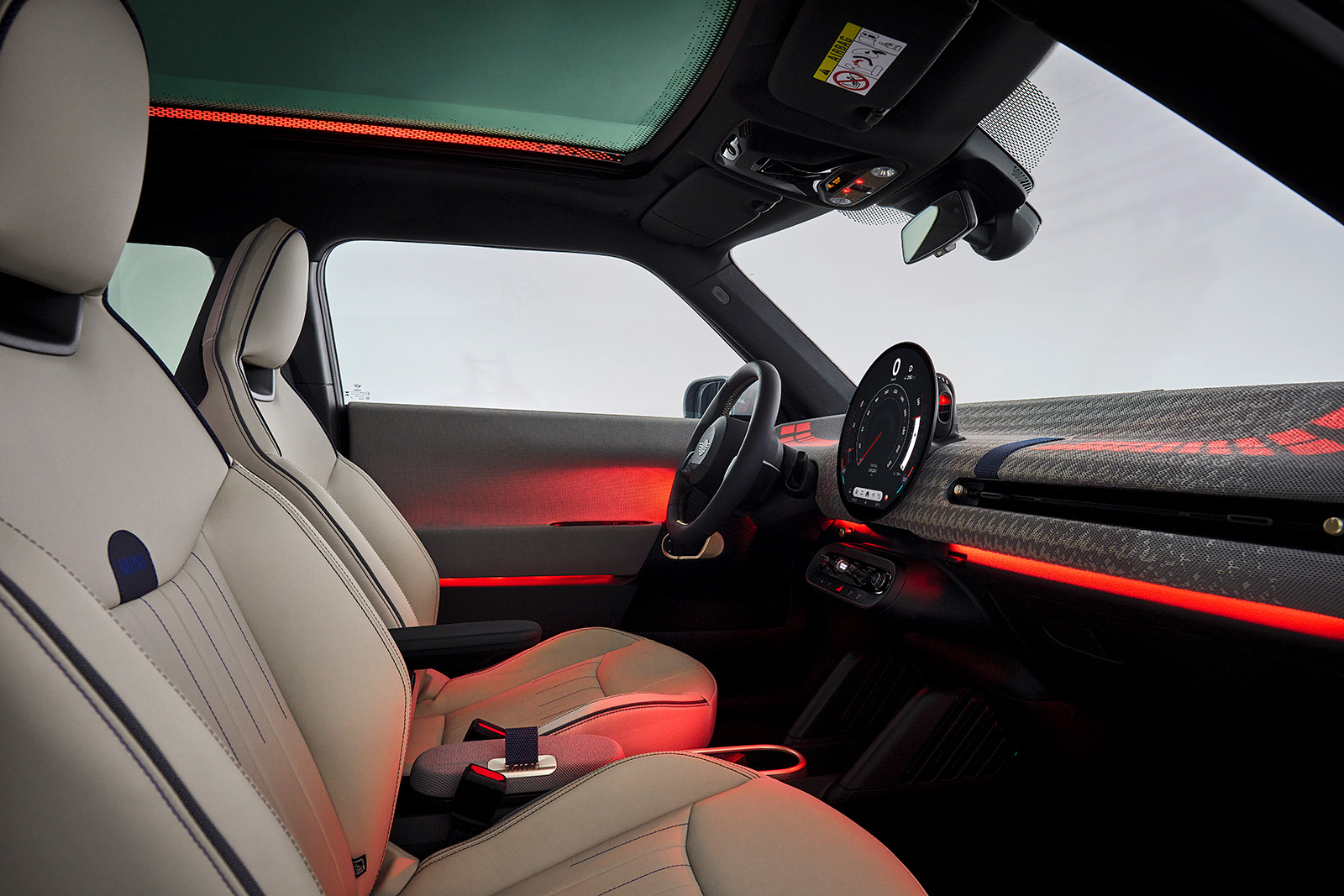 Новите режими на возење MINI Experience исто така имаат за цел да ги импресионираат електричните верзии на Cooper. Новиот режим GO-KART треба да ве приближи до тркачката ДНК на моделот, што го постигнува со заострување на карактеристиките на електричниот мотор и зголемување на цврстината на шасијата. Во исто време, централниот OLED дисплеј ќе биде покриен со поспортски антрацитни и црвени нијанси, инспирирани од стилот на моделите на John Cooper Works.