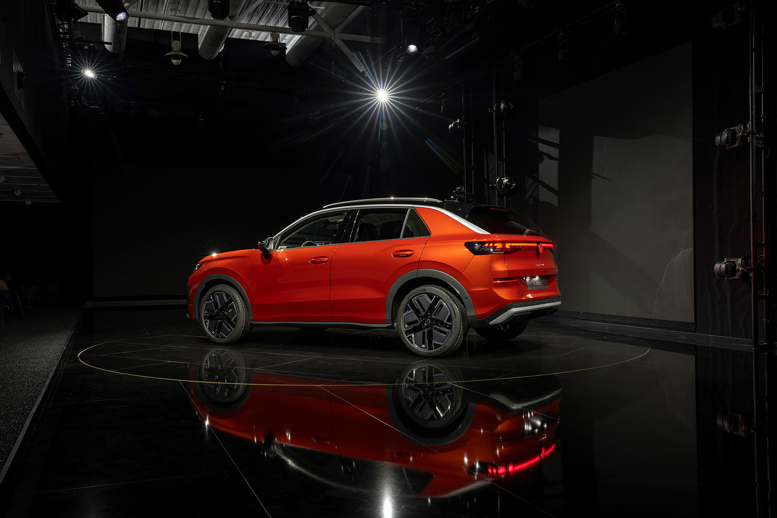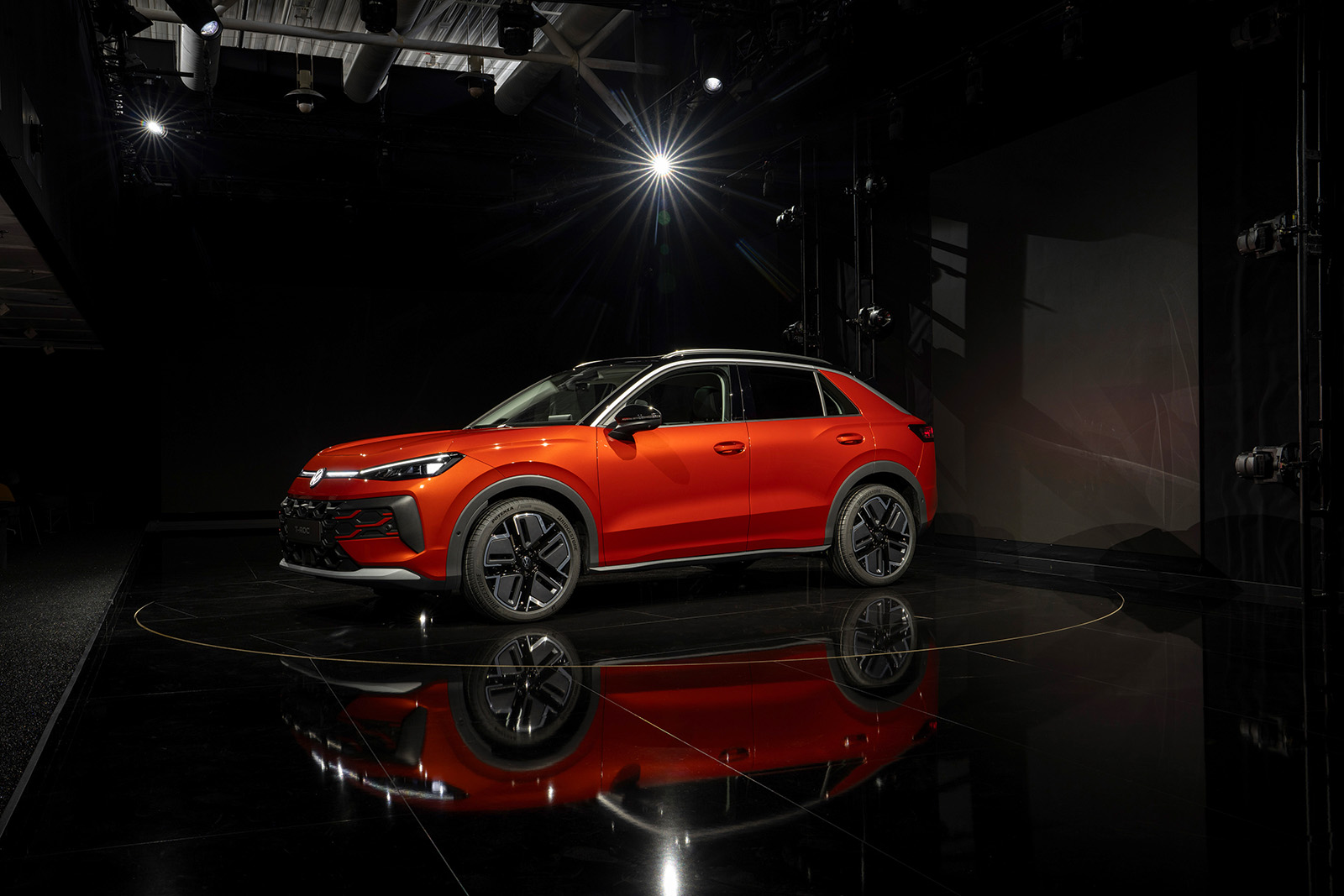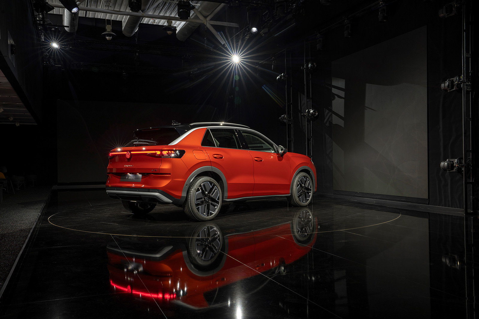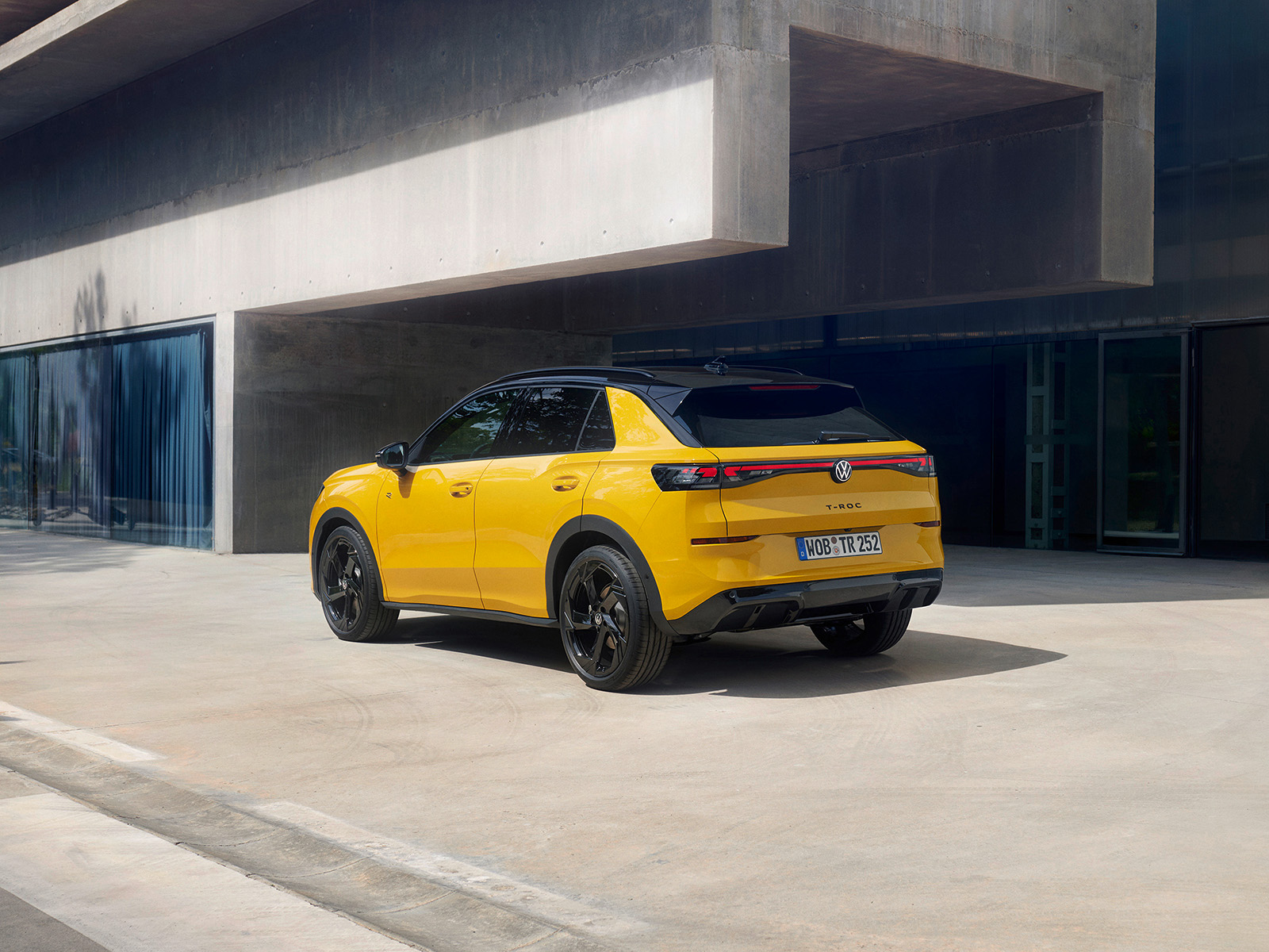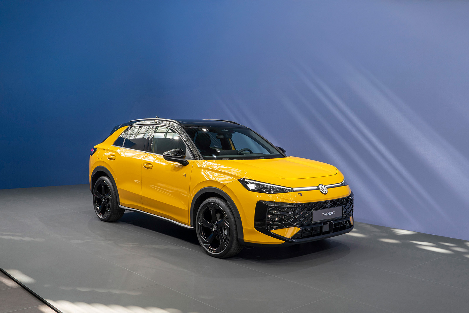 Предниот дел има препознатливи, остро нацртани светла, кои се спојуваат со LED „мустаќи“ типични за новите модели од овој бренд. Страничниот профил го задржува обликот на покривот и препознатливиот облик на Ц-столбот. Задниот дел, пак, во голема мера позајмува од моделите ID, првенствено преку обликот на задните светла и LED лентата. Ова е вообичаена карактеристика кај многу автомобили, а овде, првенствено е наменета визуелно да го прошири T-Roc.