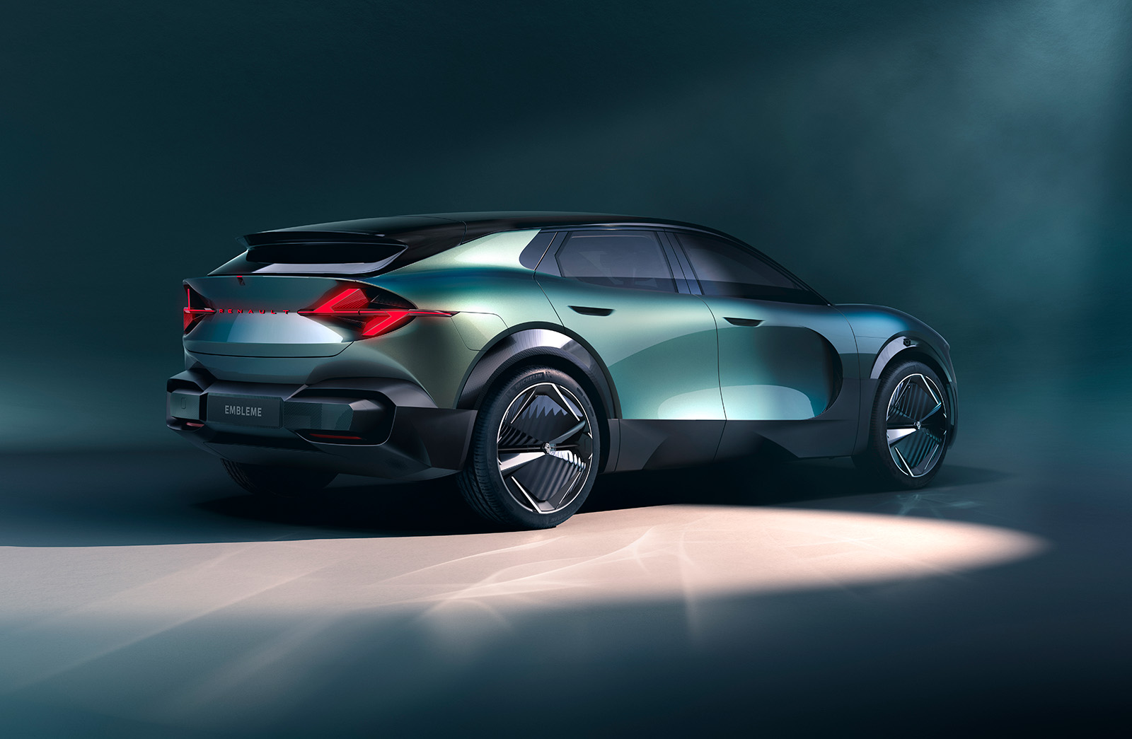 Renault Embleme е прилично изненадување. На прв поглед не наликува на ниту еден од моментално понудените модели на марката. Ова покажува дека дизајнот на компанијата ќе се развива, а Џајлс Видал има нови идеи кои ќе се појават во следните автомобили. Дополнително, Embleme крие необичен погон под каросеријата, комбинирајќи две варијации на тема електрична енергија.