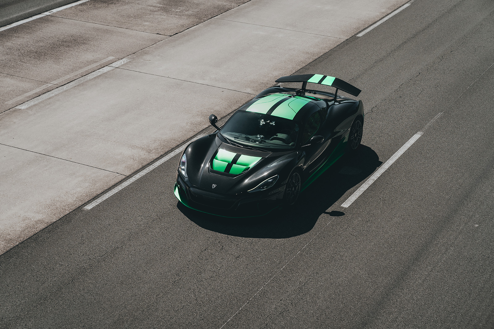 Автомобилот кој ги собори сите рекорди има уникатен дизајн. Црните и зелените бои овде не се случајни. Сосема на ист начин беа обоени и приватните автомобили на Мате Римац, од кои ја започна својата авантура со електромобилноста. Станува збор за неговиот приватен BMW e-M3 и BMW E30. Двата автомобили се некои од првите креации на Rimac и го отворија патот за следните проекти кои ја изградија моменталната сила на брендот.