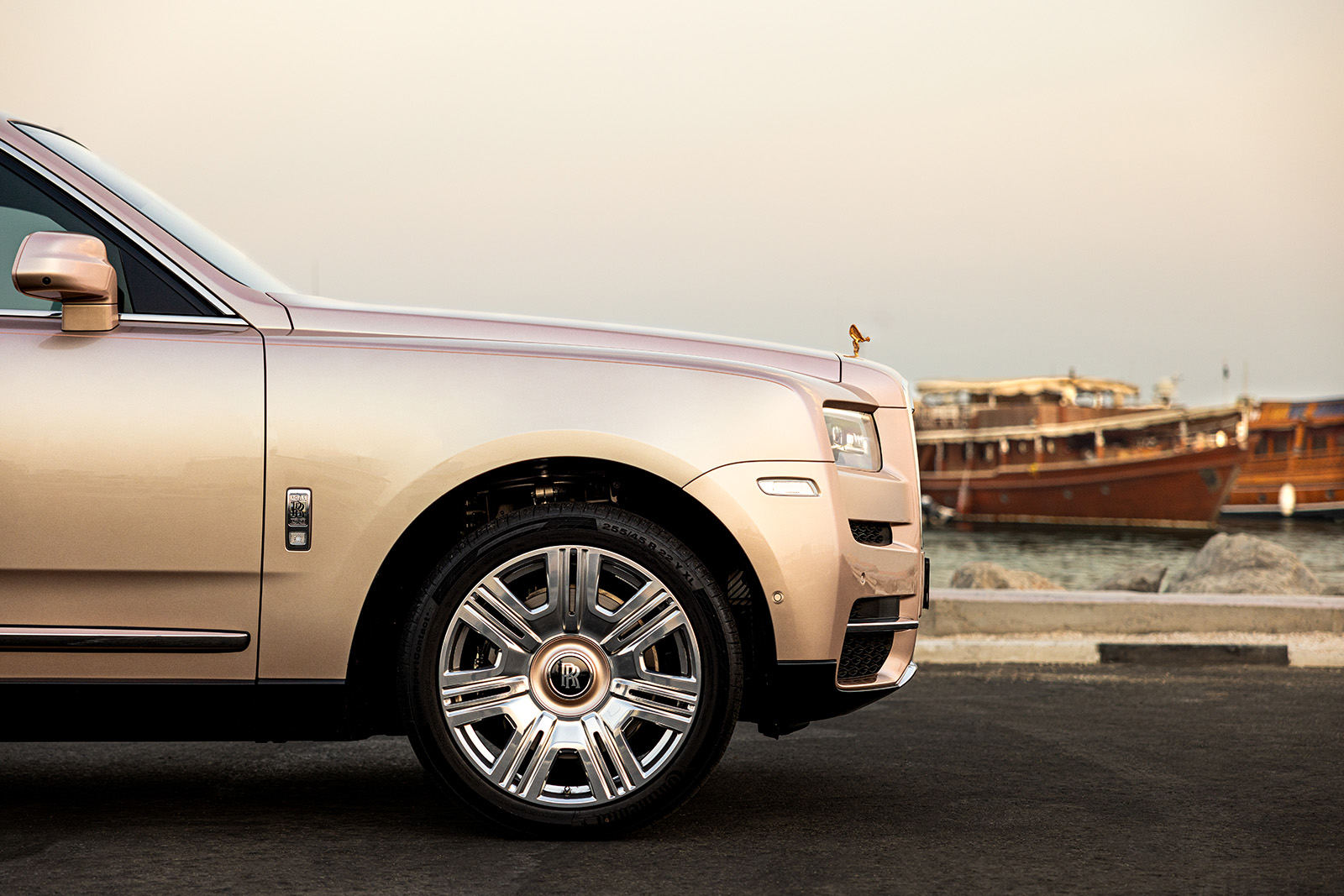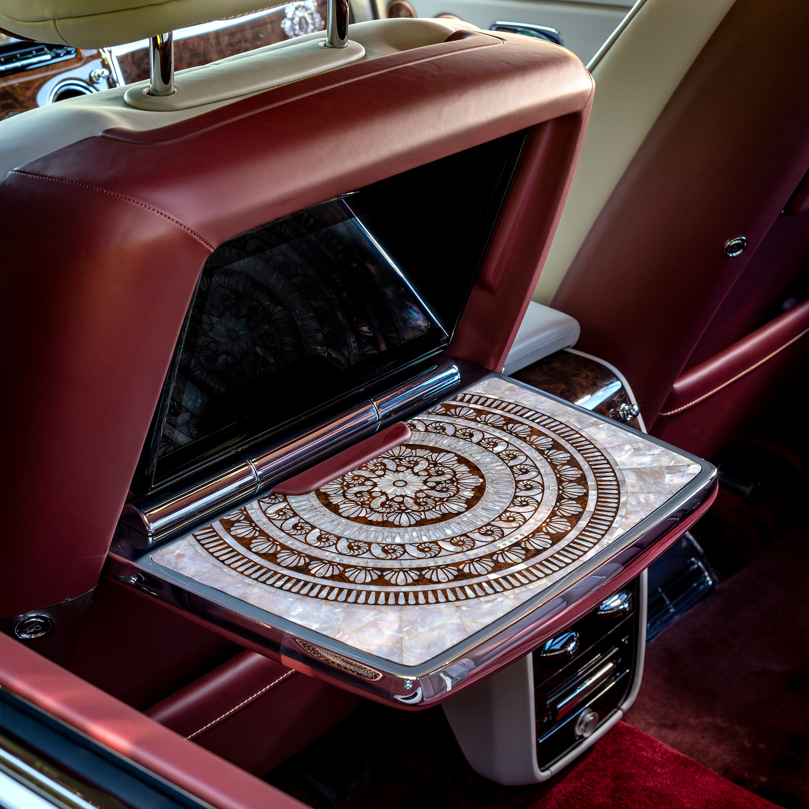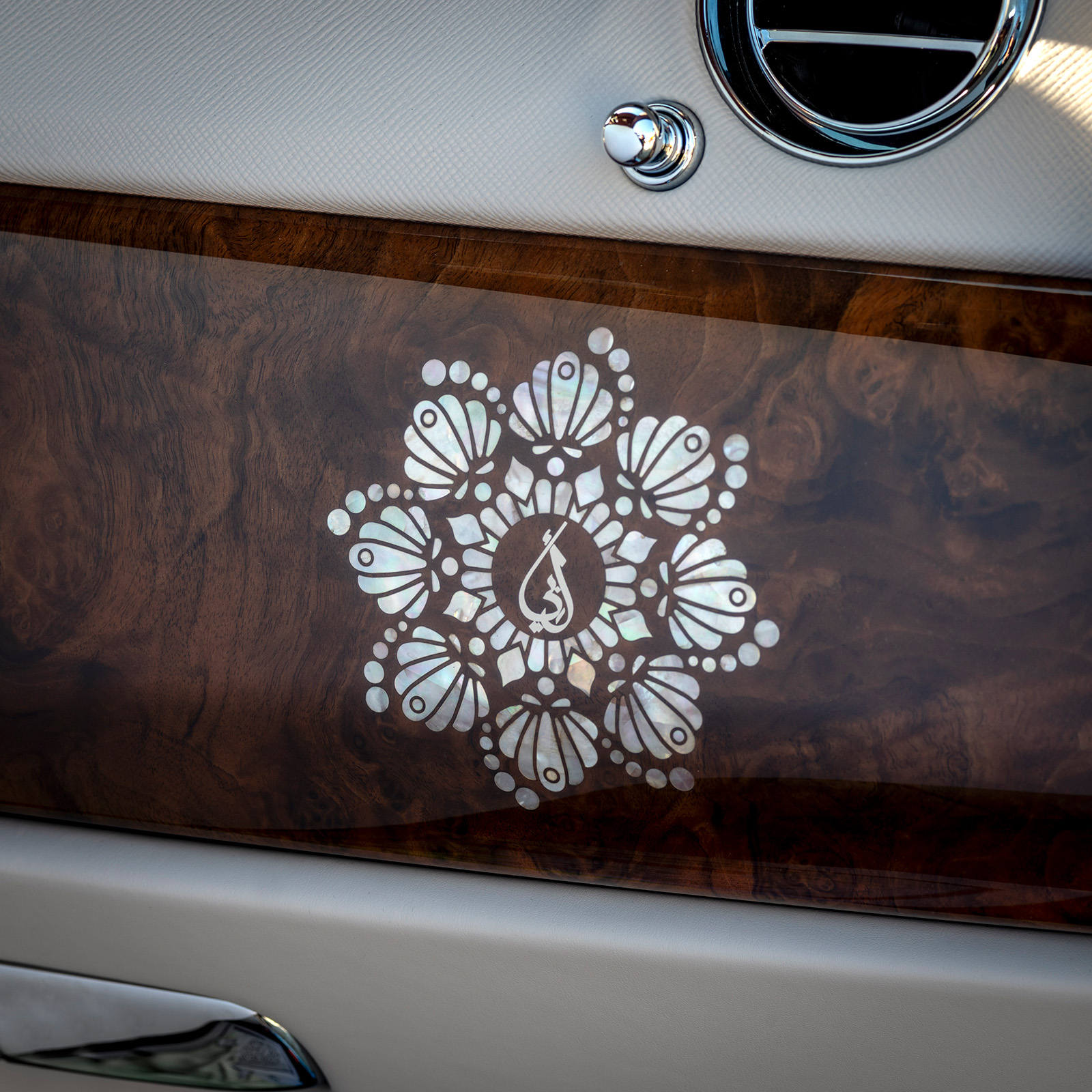 Дополнително, финишот се однесува на традиционалните арапски патенти и е најголемата употреба на бисер во историјата на Rolls-Royce Bespoke. На пример, секоја маса од „орев“ има 1.351 елемент направени од овој материјал. Се појавува и на многу други елементи, како на пример на часовникот во централната конзола. Покрај тоа, повторно се користеше розово злато.