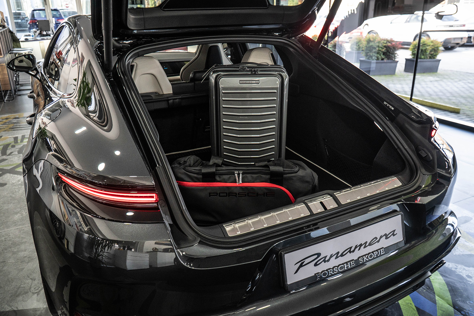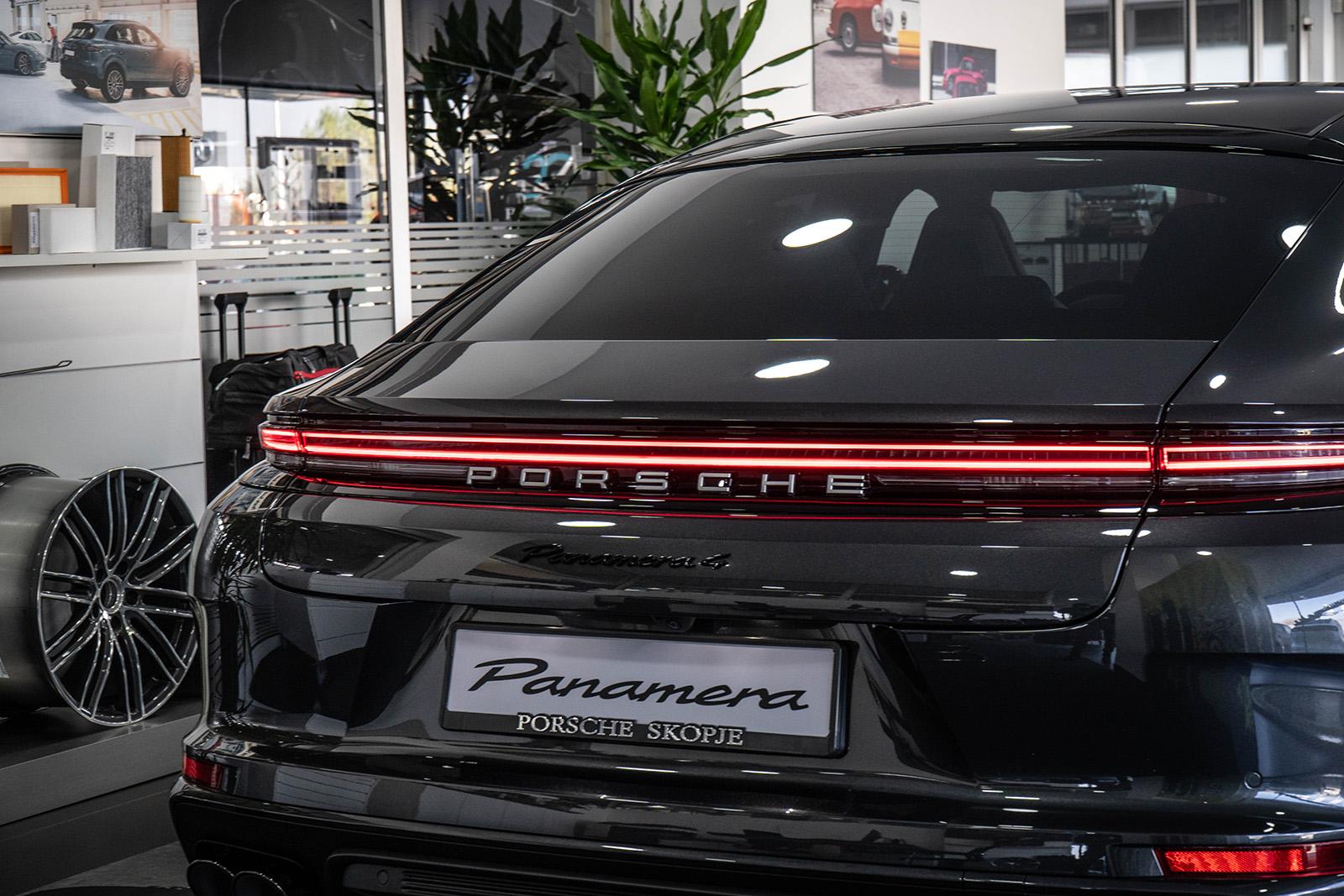 Презентираната Panamera се одликува со внимателно одбрани материјали, комбинации на бои и рафинирани детали за ентериерот, сите изработени според личната визија на клиентот. Од ексклузивни кожни завршни обработки и декоративни елементи во карбон, до препознатливи надворешни акценти, секој елемент ја одразува посветеноста на Porsche на прецизност и индивидуалност.