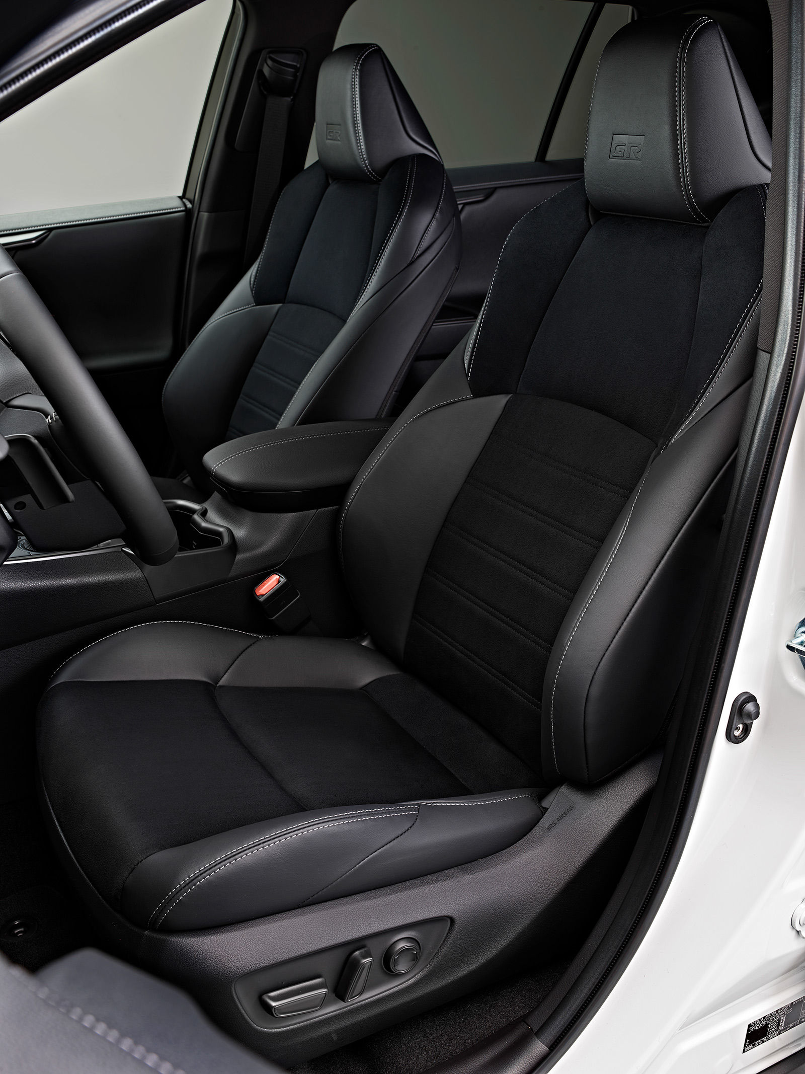 Спортскиот, но софистициран изглед се пренесува и во внатрешноста каде што спортските предни седишта се обложени со тактилен тапацир со ефект на велур со потпори од синтетичка кожа – материјали без производи од животинско потекло. Наслоните за глава се со логото GR, додека контрастите се забележани со сребрени шевови на седиштата, воланот, рачката на менувачот и металните детали на вратите и воланот. Логото GR е исто така прикажано на патосниците и на воланот.